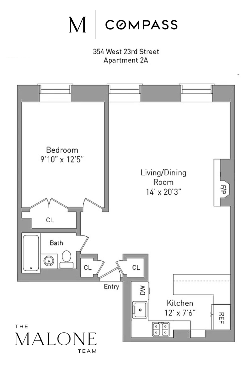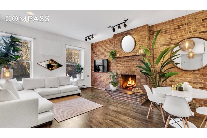 Moments from the High Line, Residence 2A at 354 West 23rd Street is a classic Chelsea one-bedroom that blends pre-war charm with thoughtful updates. Exposed brick, a wood-burning fireplace & nearly 10ft ceilings anchor the living space, while oversize north-facing windows directly overlooking a lush green park bring in consistent, natural light throughout the day. The open kitchen is designed for both functionality and flow, featuring generous counter space, ample storage, and a dishwasher, making it ideal for everyday living and entertaining alike.