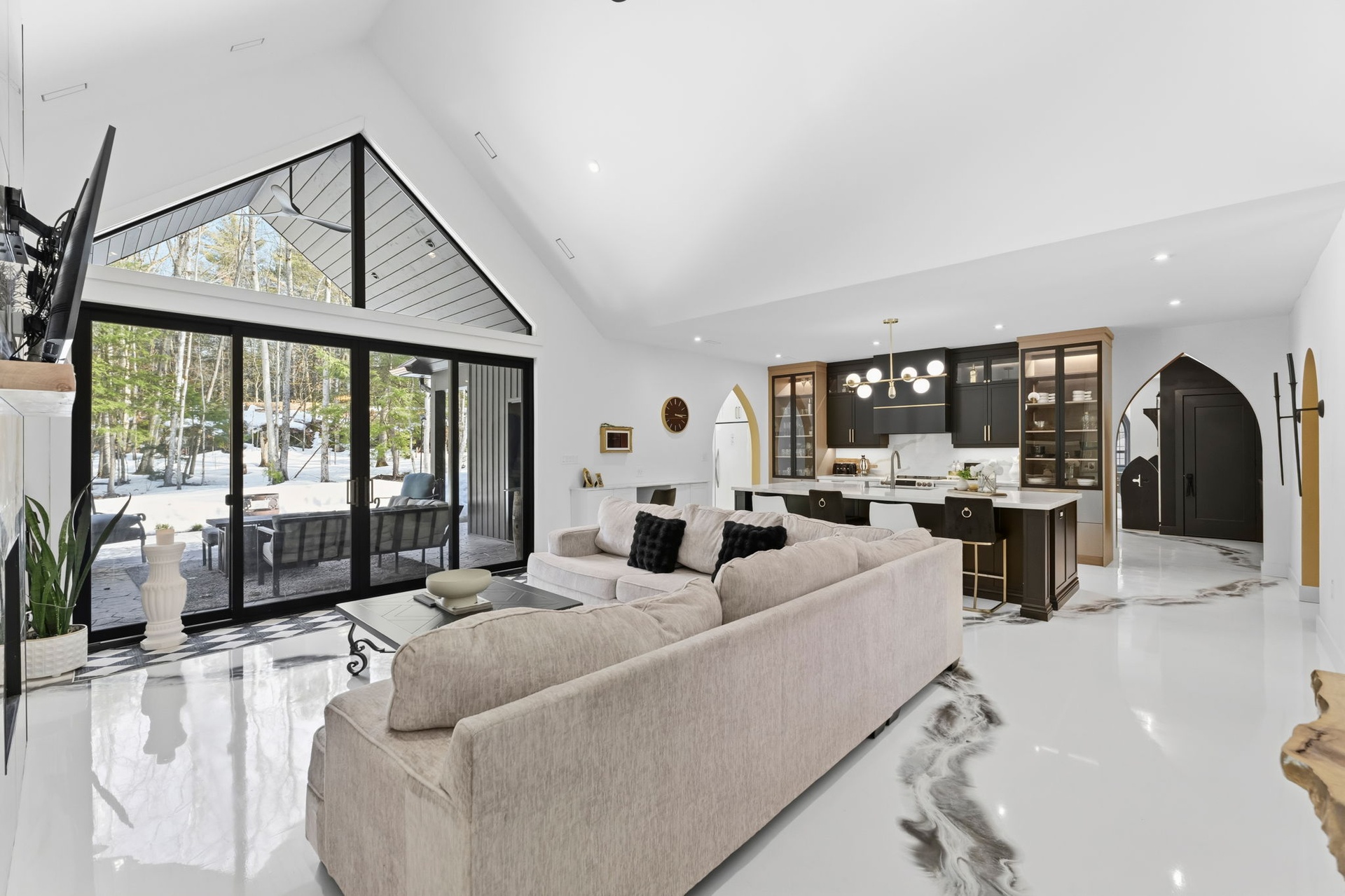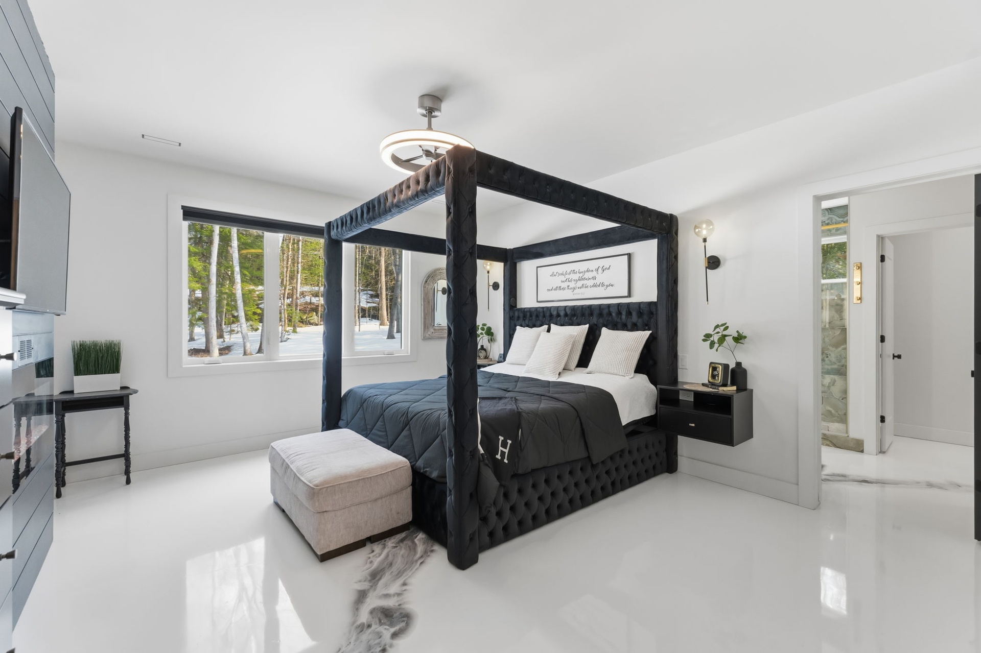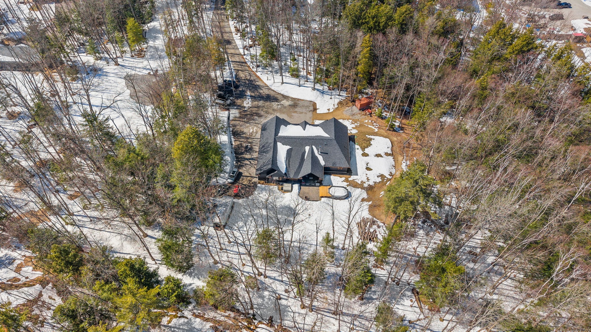 Welcome to 1017 Davis Drive in Severn Bridge, an exceptional custom-built bungalow loft estate set on 7.6 acres of private, tree-lined land with walking trails and a 600-foot driveway offering ample parking. Designed with both luxury and functionality in mind, this home features a dual primary suite layout, ideal for multigenerational living, guests, or enhanced privacy. Offering 4 spacious bedrooms, all with walk-in closets, two of the primarys with well-appointed bathrooms including a 3-piece ensuite with tub and a 4-piece with laundry in the closet, the home is finished with 9-foot ceilings and seamless epoxy flooring throughout. The custom kitchen proves a statement with its GE Cafe appliances, while boasting a 12 ft island, perfect for entertaining. The kitchen is complemented by a functional butler's pantry with a sink and commercial ice maker. Radiant in-floor heating extends throughout the main floor living space and garage via a boiler system, with central air conditioning delivered through an air handler and duct system. A flex space that you can have as a dedicated home gym or home office adds to the lifestyle offering, while water quality is enhanced with a Viqua system featuring dual filters with UV light, an iron filter, and a water softener. Exterior features include a refined blend of metal and vinyl siding, an asphalt roof, a stamped concrete covered front porch (254 sq ft), rear covered lanai (365 sq ft), additional patio (468 sq ft), and a 180 sq ft wood pool deck.The insulated garage offers 754 sq ft with 10-foot ceilings, two 9x9 doors with openers, radiant heat, and a finished 480 sq ft loft above. Spray foam insulation in walls and blown-in attic insulation ensure year-round efficiency. A unique Custom Muskoka home that delivers privacy, quality craftsmanship, and a refined country lifestyle just minutes from both Gravenhurst and Orillia amenities.