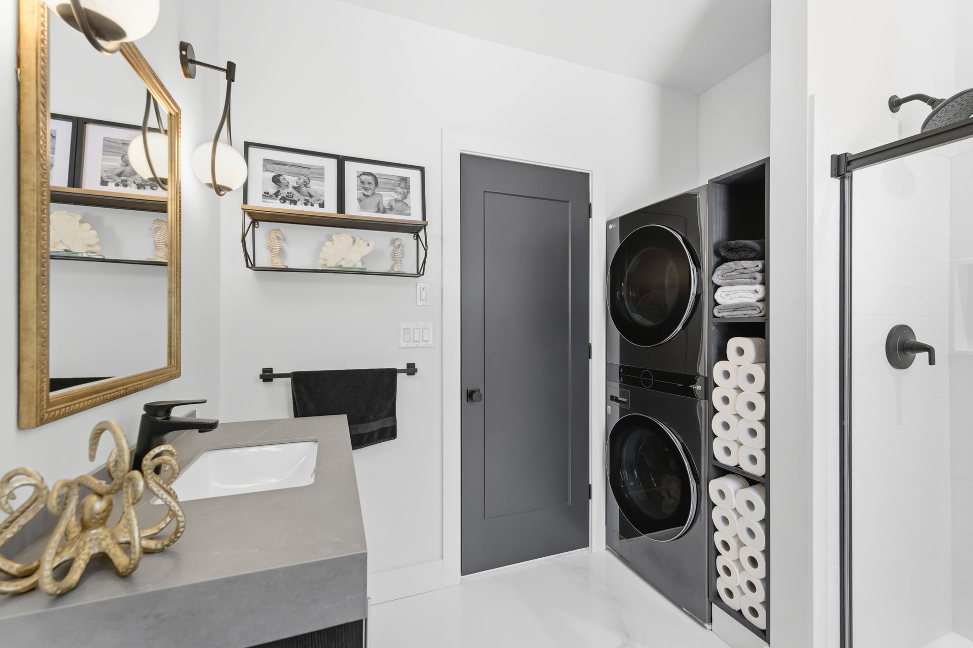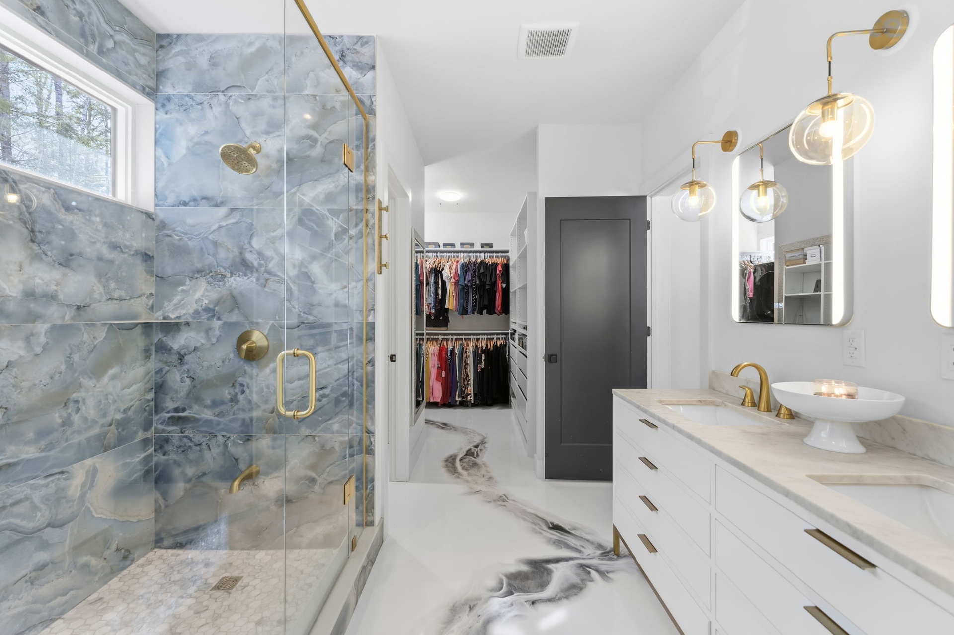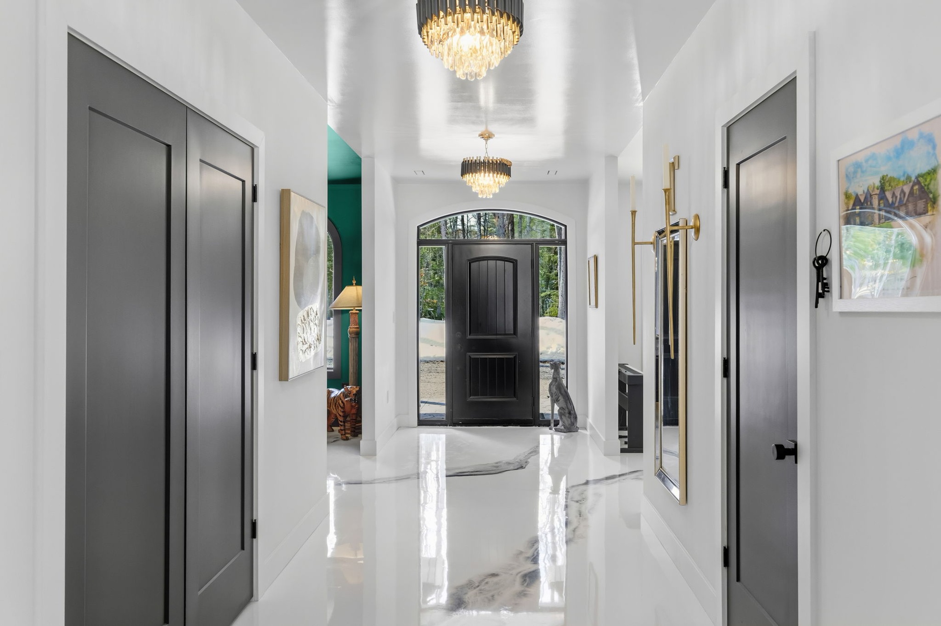 Welcome to 1017 Davis Drive in Severn Bridge, an exceptional custom-built bungalow loft estate set on 7.6 acres of private, tree-lined land with walking trails and a 600-foot driveway offering ample parking. Designed with both luxury and functionality in mind, this home features a dual primary suite layout, ideal for multigenerational living, guests, or enhanced privacy. Offering 4 spacious bedrooms, all with walk-in closets, two of the primarys with well-appointed bathrooms including a 3-piece ensuite with tub and a 4-piece with laundry in the closet, the home is finished with 9-foot ceilings and seamless epoxy flooring throughout. The custom kitchen proves a statement with its GE Cafe appliances, while boasting a 12 ft island, perfect for entertaining. The kitchen is complemented by a functional butler's pantry with a sink and commercial ice maker. Radiant in-floor heating extends throughout the main floor living space and garage via a boiler system, with central air conditioning delivered through an air handler and duct system. A flex space that you can have as a dedicated home gym or home office adds to the lifestyle offering, while water quality is enhanced with a Viqua system featuring dual filters with UV light, an iron filter, and a water softener. Exterior features include a refined blend of metal and vinyl siding, an asphalt roof, a stamped concrete covered front porch (254 sq ft), rear covered lanai (365 sq ft), additional patio (468 sq ft), and a 180 sq ft wood pool deck.The insulated garage offers 754 sq ft with 10-foot ceilings, two 9x9 doors with openers, radiant heat, and a finished 480 sq ft loft above. Spray foam insulation in walls and blown-in attic insulation ensure year-round efficiency. A unique Custom Muskoka home that delivers privacy, quality craftsmanship, and a refined country lifestyle just minutes from both Gravenhurst and Orillia amenities.