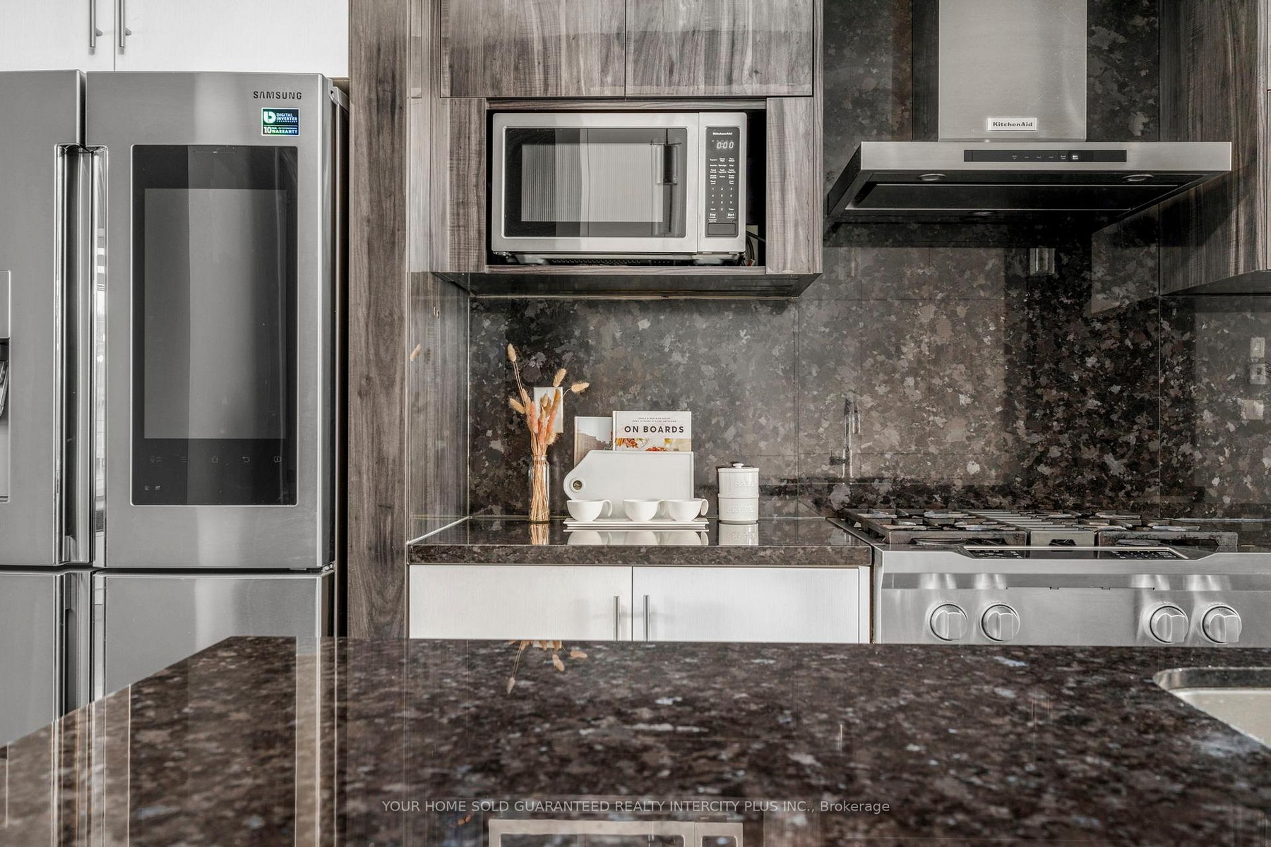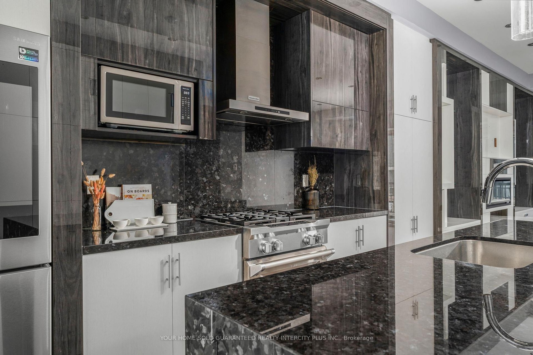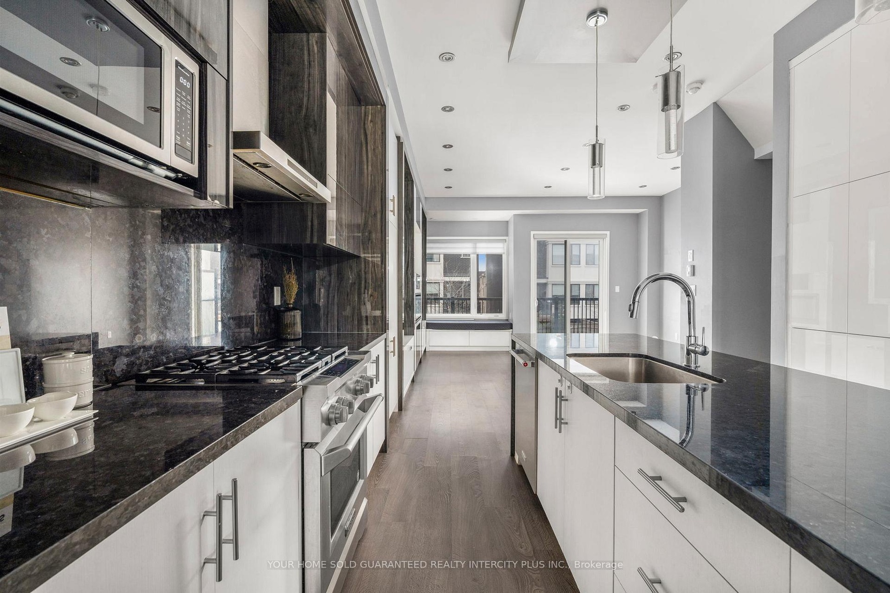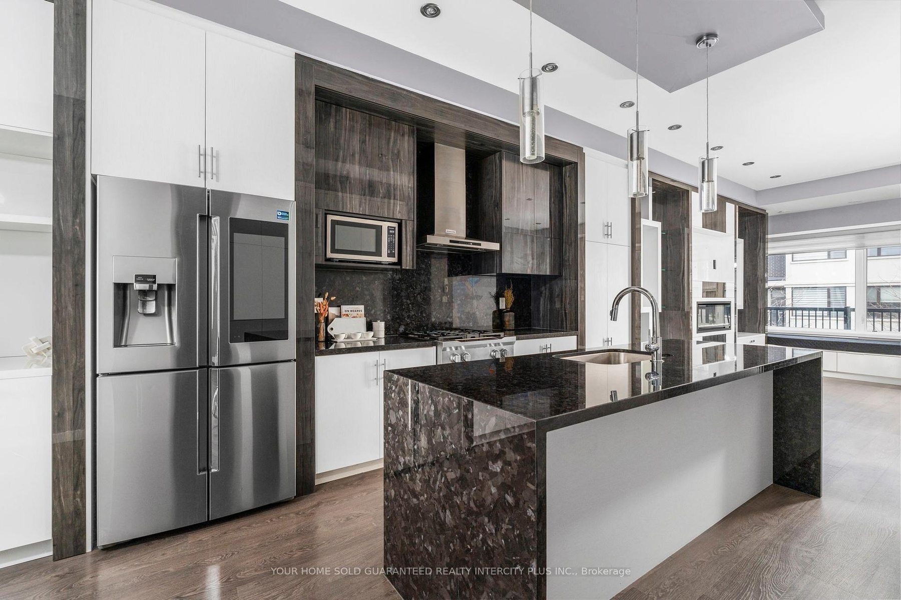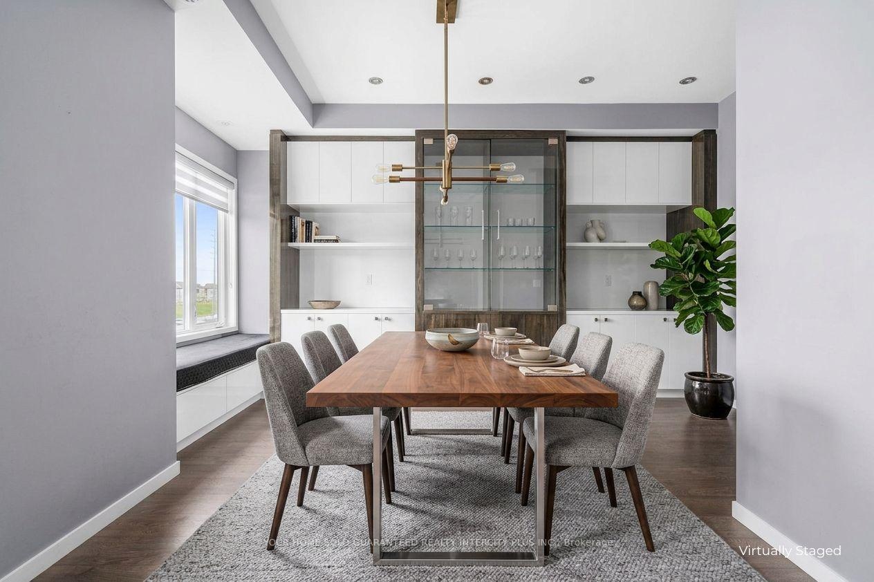Welcome to 3910 Major Mackenzie Drive! A beautifully upgraded end-unit home in the highly sought-after Vellore Village, featuring over $200K in custom upgrades. The main floor features wide-plank flooring, beautiful custom cabinetry, drop ceilings, pot lighting, and custom blinds throughout. At the heart of the home is a well-appointed kitchen with high-end appliances, including a KitchenAid gas range, 4-door Samsung Family Hub refrigerator, and stunning waterfall granite countertops, perfect for everyday living and entertaining. The living room offers a spacious setting, complete with concealed lighting, gas fireplace and sleek, tailored built-in shelving that brings warmth, elegance, and functionality to the space. A beautifully crafted dining storage cabinet featuring clean lines, generous storage, and integrated LED lighting. Four generously sized bedrooms with custom closets and upgraded bathrooms, provide flexible space for families, guests, or a home office. Thoughtfully designed for modern living, the home features a practical layout complemented by quality, upscale finishes throughout. Ideally located just minutes from major highways, top-rated schools, parks, shopping, transit, and essential amenities.
