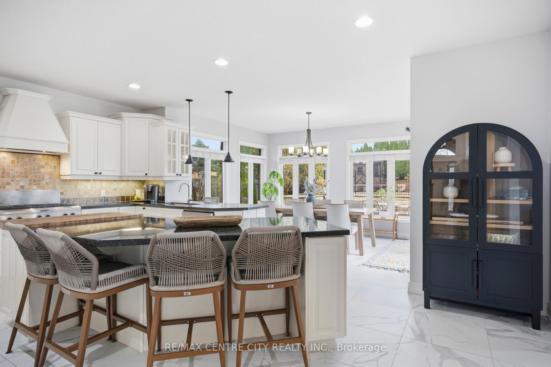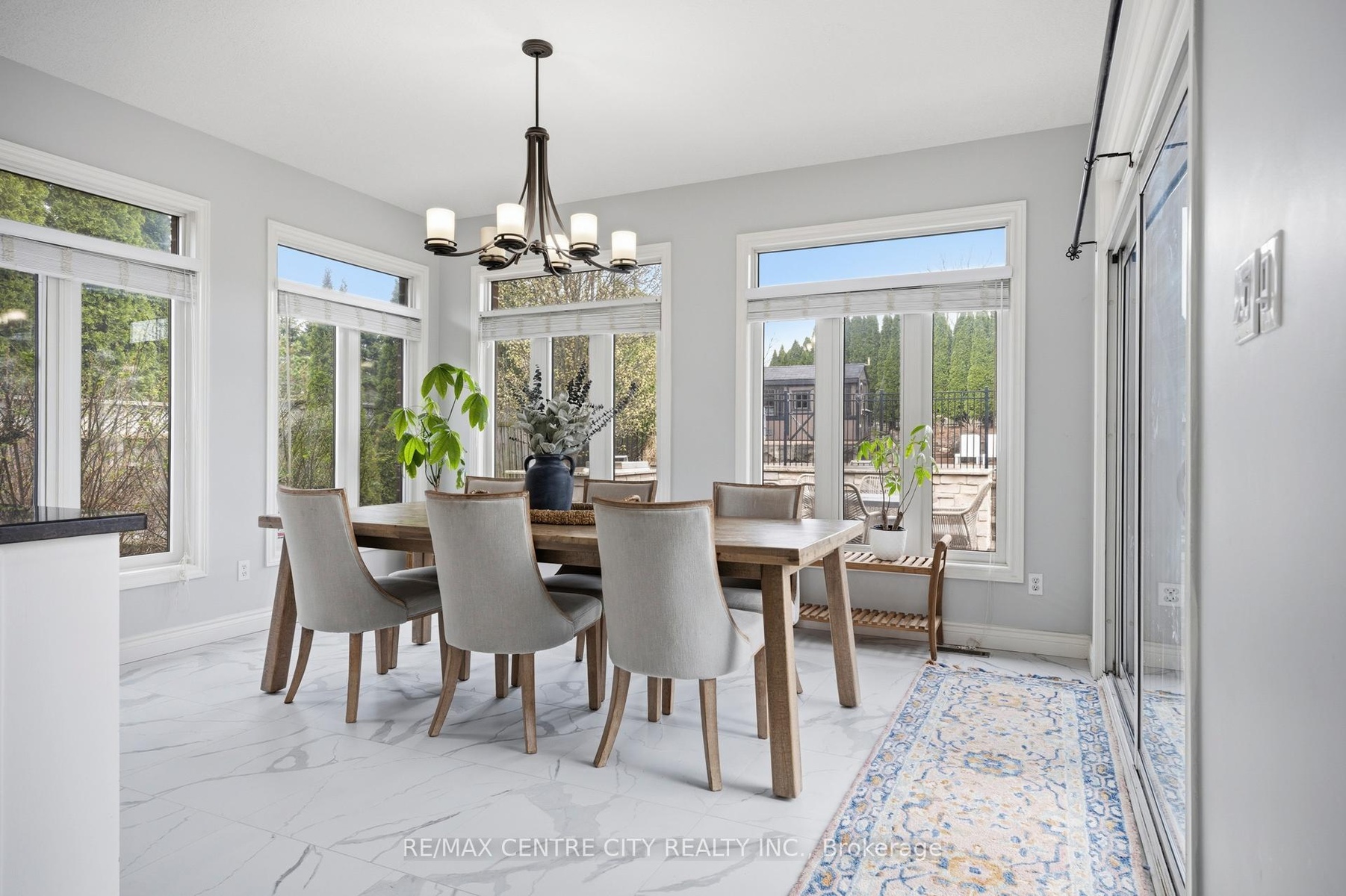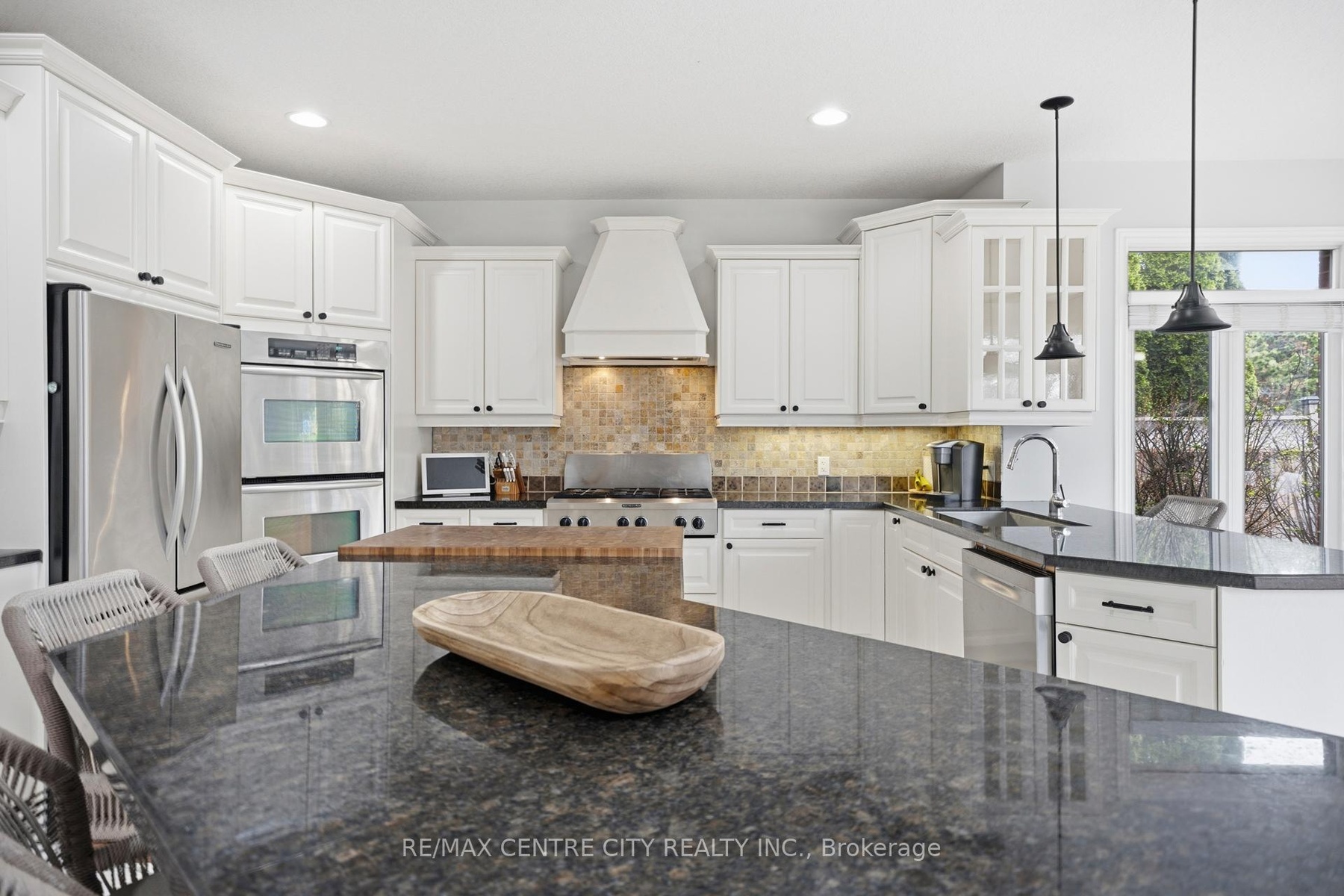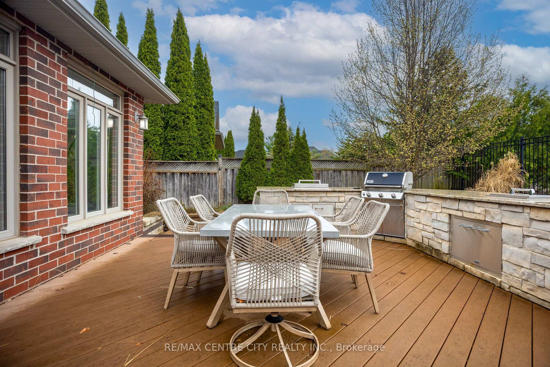 Located in one of London's most family-friendly neighbourhoods, just steps to Riverbend Park and a short walk to the vibrant West 5 district, this stunning estate home offers the perfect blend of lifestyle and convenience. Thoughtfully designed for both entertaining and everyday living, this impressive 4+1 bedroom, 3.5 bathroom home with a heated 3-car garage delivers exceptional space and functionality. Step inside to soaring 18ft ceilings and a striking new white oak staircase. The main level offers incredible versatility, featuring a custom office with built-in cabinetry and quartz countertops ideal as a workspace or formal dining room alongside a secondary office and a powder room. The oversized living room is complete with a new gas fireplace, stone surround, and custom millwork. The open-concept kitchen and dining area seamlessly combine style and function, offering ample prep space, a walk-in pantry, a professional-grade gas range, and a built-in double oven. Flooded with natural light, the dining area overlooks a private backyard oasis featuring a spacious composite deck with a custom outdoor kitchen, a heated in-ground pool, concrete lounging area, armour stone accents, and mature trees with no rear neighbours. Upstairs, the spacious primary retreat offers a private ensuite, complemented by three additional bedrooms and a beautifully updated main bathroom with double sinks and a tiled shower. The fully finished basement adds versatility with a fifth bedroom, second kitchen, 3-piece bath, and a family/games room ideal for entertaining or extended family living. Extensive updates of close to $100,000 over the past year include a new white oak staircase, custom millwork, LVP flooring throughout, second-floor bathroom, fresh paint, gas fireplace with stone surround, dishwasher, furnace, custom office cabinetry, and landscaping. Enjoy access to top-rated schools offering the best of city living, all set on a quiet, family-oriented street.