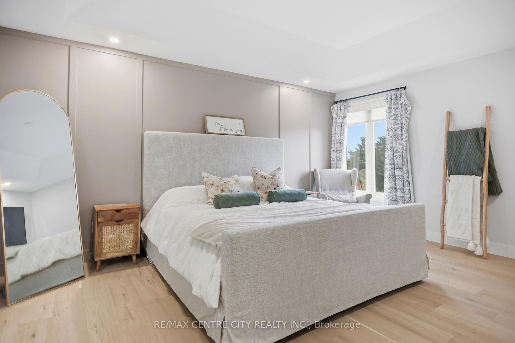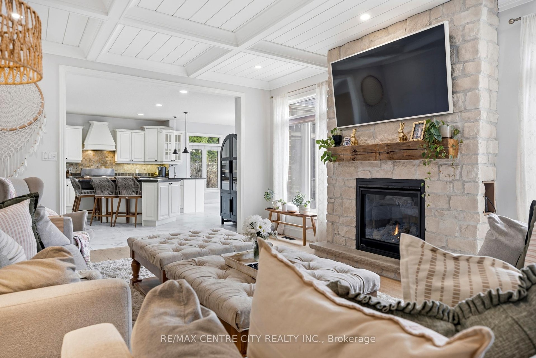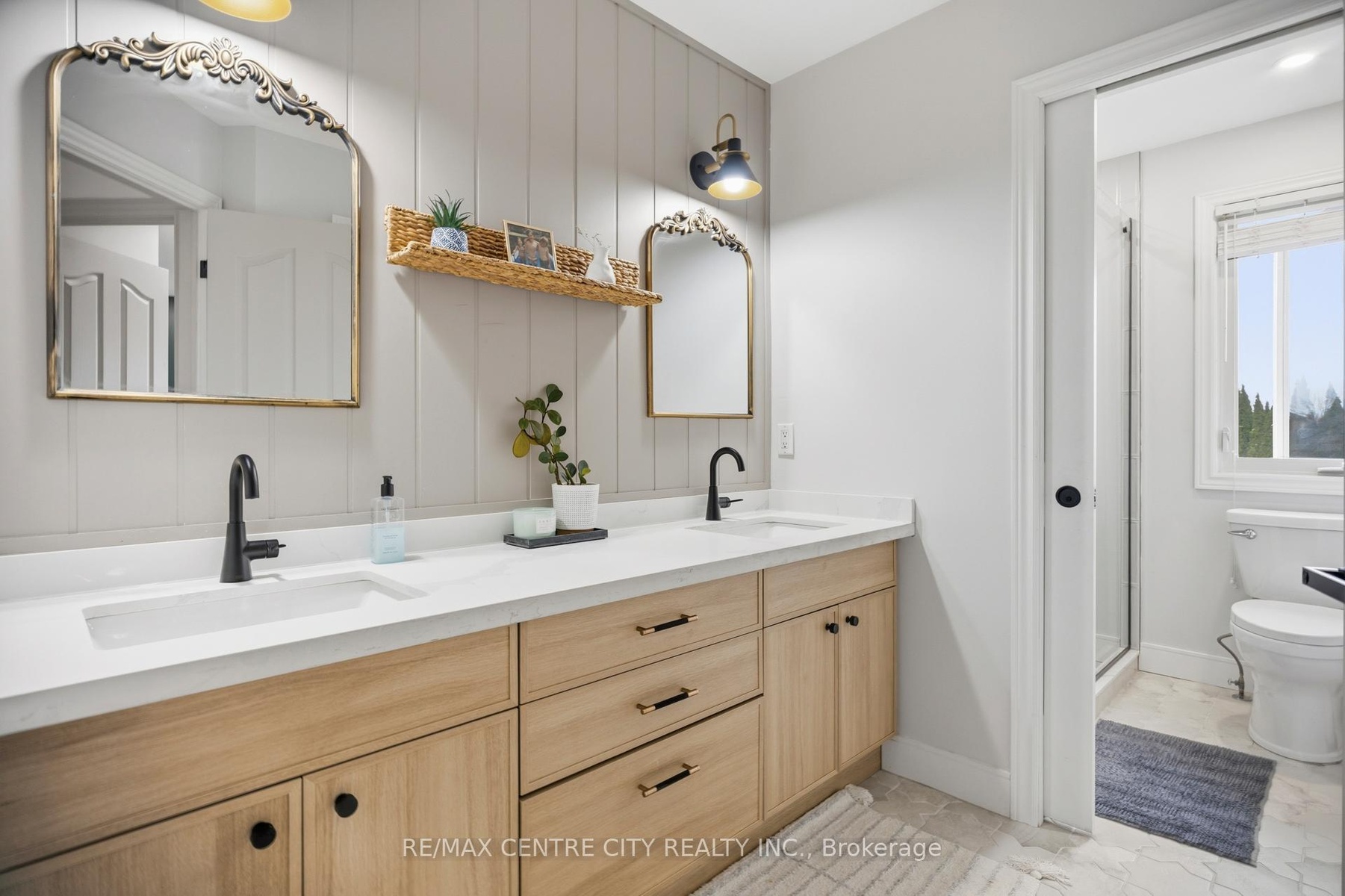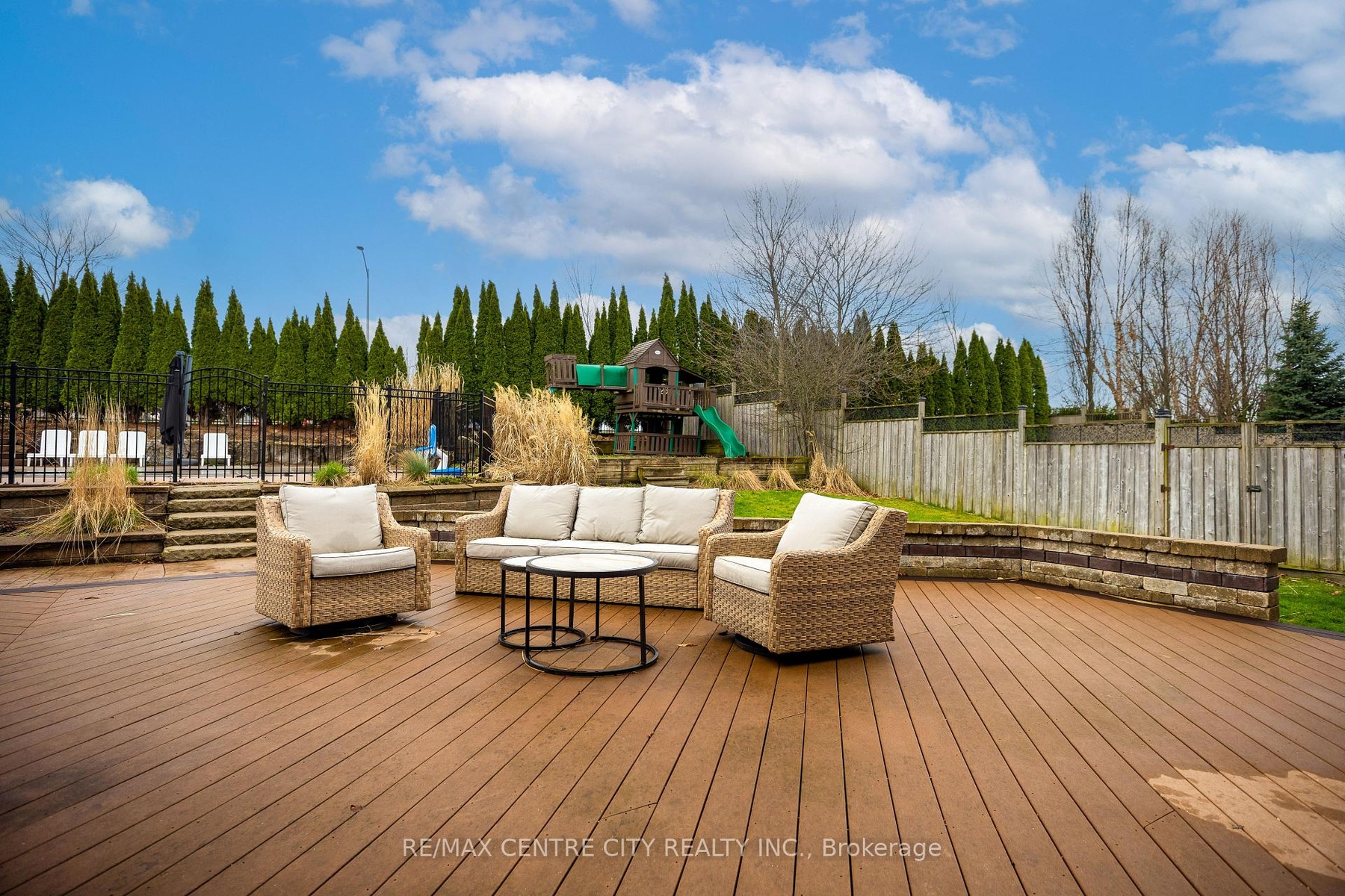Located in one of London's most family-friendly neighbourhoods, just steps to Riverbend Park and a short walk to the vibrant West 5 district, this stunning estate home offers the perfect blend of lifestyle and convenience. Thoughtfully designed for both entertaining and everyday living, this impressive 4+1 bedroom, 3.5 bathroom home with a heated 3-car garage delivers exceptional space and functionality. Step inside to soaring 18ft ceilings and a striking new white oak staircase. The main level offers incredible versatility, featuring a custom office with built-in cabinetry and quartz countertops ideal as a workspace or formal dining room alongside a secondary office and a powder room. The oversized living room is complete with a new gas fireplace, stone surround, and custom millwork. The open-concept kitchen and dining area seamlessly combine style and function, offering ample prep space, a walk-in pantry, a professional-grade gas range, and a built-in double oven. Flooded with natural light, the dining area overlooks a private backyard oasis featuring a spacious composite deck with a custom outdoor kitchen, a heated in-ground pool, concrete lounging area, armour stone accents, and mature trees with no rear neighbours. Upstairs, the spacious primary retreat offers a private ensuite, complemented by three additional bedrooms and a beautifully updated main bathroom with double sinks and a tiled shower. The fully finished basement adds versatility with a fifth bedroom, second kitchen, 3-piece bath, and a family/games room ideal for entertaining or extended family living. Extensive updates of close to $100,000 over the past year include a new white oak staircase, custom millwork, LVP flooring throughout, second-floor bathroom, fresh paint, gas fireplace with stone surround, dishwasher, furnace, custom office cabinetry, and landscaping. Enjoy access to top-rated schools offering the best of city living, all set on a quiet, family-oriented street.