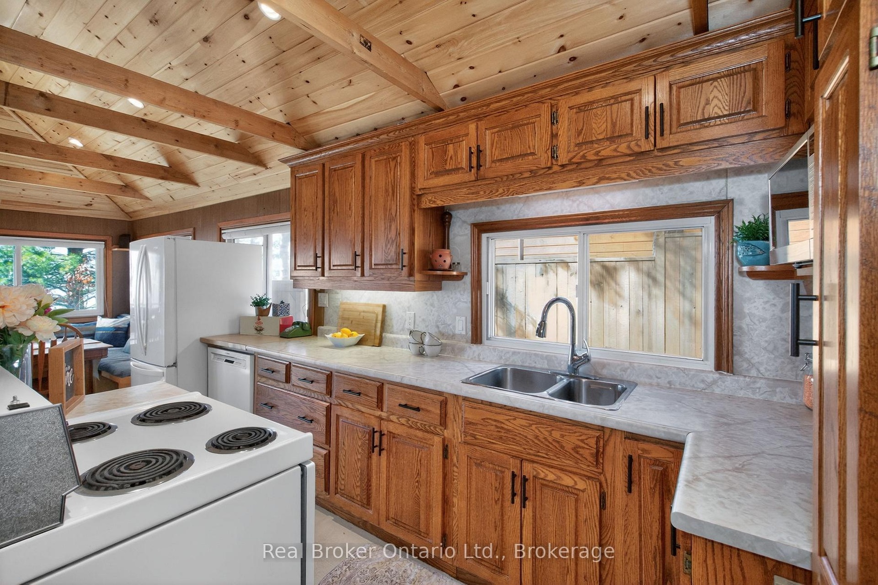 Welcome to 46 Sand Rd - a classic Georgian Bay waterfront cottage thoughtfully updated while preserving its original charm. Whether you're seeking a seasonal escape or a year-round home, this property offers comfort, character, & stunning natural beauty. The open-concept living area showcases breathtaking views, an incredible vaulted ceiling, and the original stone fireplace (now gas). The kitchen offers a wide expanse of oak cabinetry & generous counter space, while the updated bath blends modern finishes with timeless style, highlighted by a beautifully appointed shower. This home features two beds, one w/ water view, plus addn'l sleeping options in the fully reno'd basement & year-round bunkie. The bright rec rm provides the perfect place to relax after a day at the beach or nearby ski hills. The bunkie over the garage, reno'd in 2023, offers addn'l space for teens/guests & it's own deck. Enjoy panoramic views w/spectacular sunsets, sandy beach, & shallow entry ideal for kids. Spend days swimming, relaxing on the deck, or strolling along a world-class shoreline & evenings by the fire with friends & family. Take a stroll to the store at Balm Beach, or drive just 15 min. to Midland for addn'l amenities & only 90 min. from the GTA. Extensive improvements include - 2017: a full basement reno including new electrical, lights, & staircase; new high-eff gas furnace; refinished original pine floor in the living area; & converted FP to gas. In 2018, the bath was renovated w/new shower, toilet, & flooring. The septic bed was refurbished & tank lids retrofitted w/risers for easy future access (permitted & inspected by township) in 2021, along w/cleaning & treatment of the dug well. A steel roof was added in 2022 w/2 dome roof lights for enhanced natural light & the ceiling vaulted in 2023. Also featuring a water treatment system incl UV light & water softener. The important updates are complete-simply move in & add your personal touches. Waterfront living at its finest!