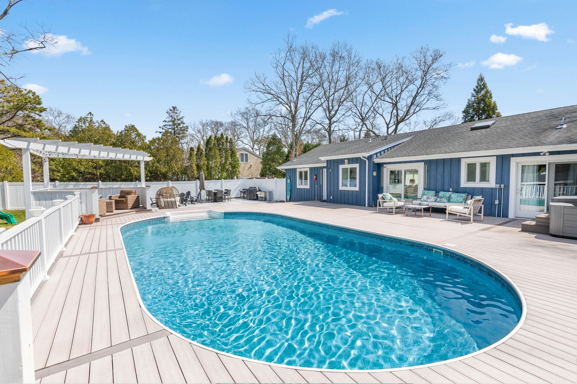 Welcome to your perfect retreat in East Quogue, where comfort, style, and location come together effortlessly. This beautifully maintained 4 bedroom, 4-bathroom home offers the ideal blend of luxury and relaxation. Step inside to discover a spacious, sun-filled layout featuring a large modern kitchen-perfect for entertaining or preparing meals after a day at the beach. Each bedroom is generously sized and thoughtfully designed, providing a peaceful escape for family and guests alike. Outside your private oasis awaits. Enjoy summer days by the in-deck pool, unwind in the hot tub under the stars, or host gatherings in a setting built for making memories. Located just minutes from the pristine beaches of the Hamptons and within easy reach of the excitement of the U.S. OPEN, this home offers the best of both worlds-tranquility and convenience. Plus, your only minutes from Westhampton Beach Main Street where you'll find charming shops and top-rated restaurants. If you're looking for a summer getaway this East Quogue gem checks every box.