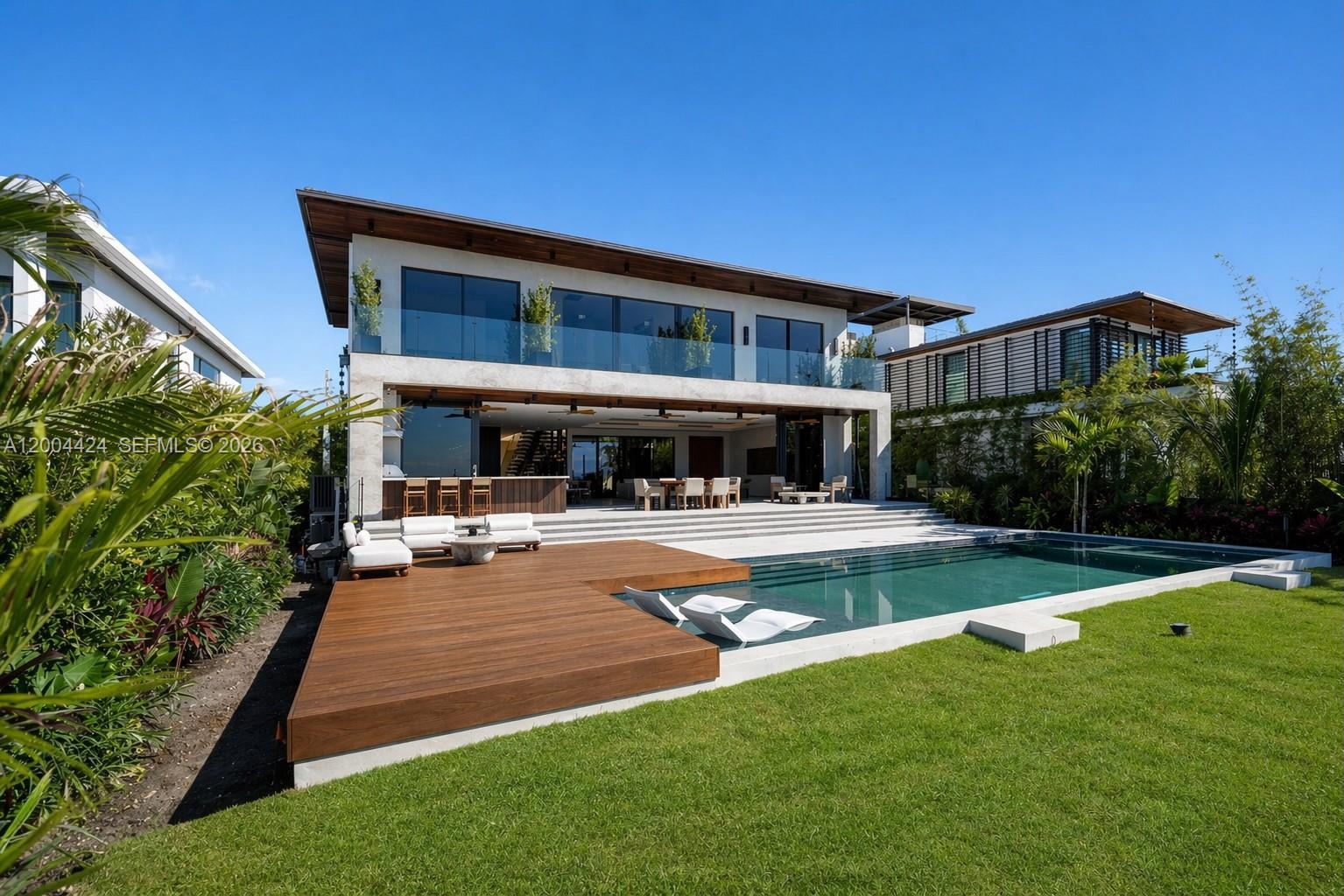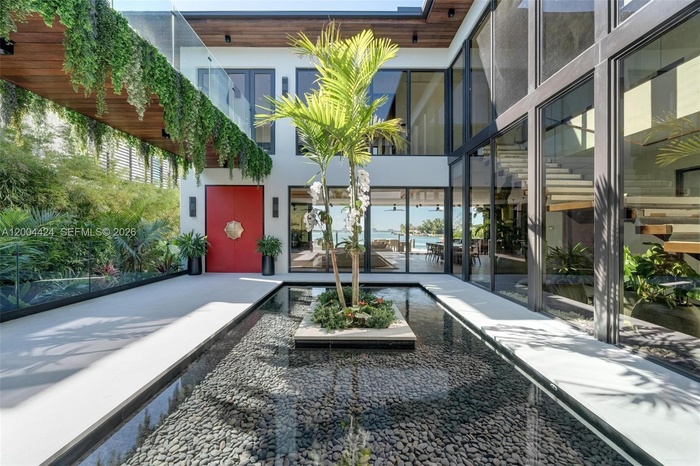 This architectural masterpiece captures a rare sense of space, light and tranquility. Situated on an oversized 12,427 SF lot with 76 feet of waterfront, the property features 7,428 SF of refined habitable space, including 6 bedrooms and 7.5 bathrooms. The architecture blends contemporary elegance with subtle Bali-inspired influences, enhanced by a subtle French art de vivre.
