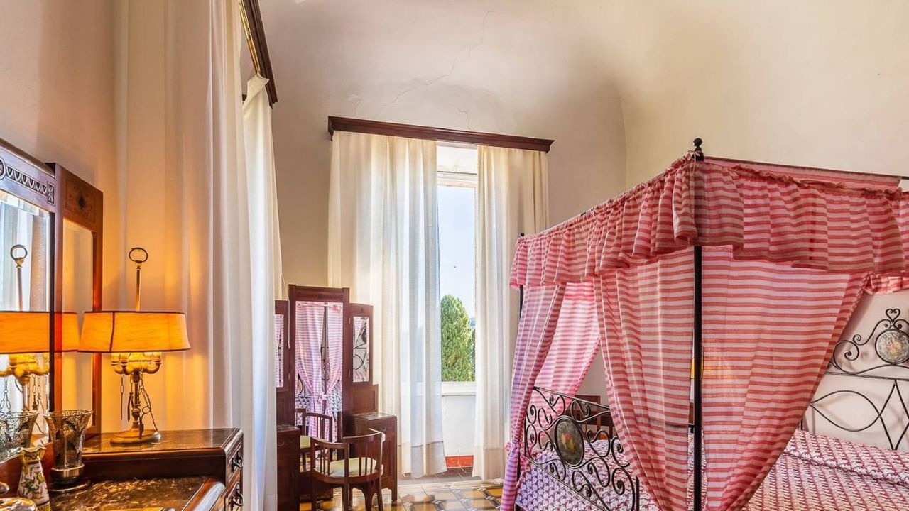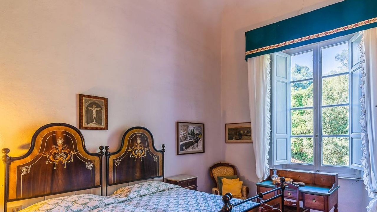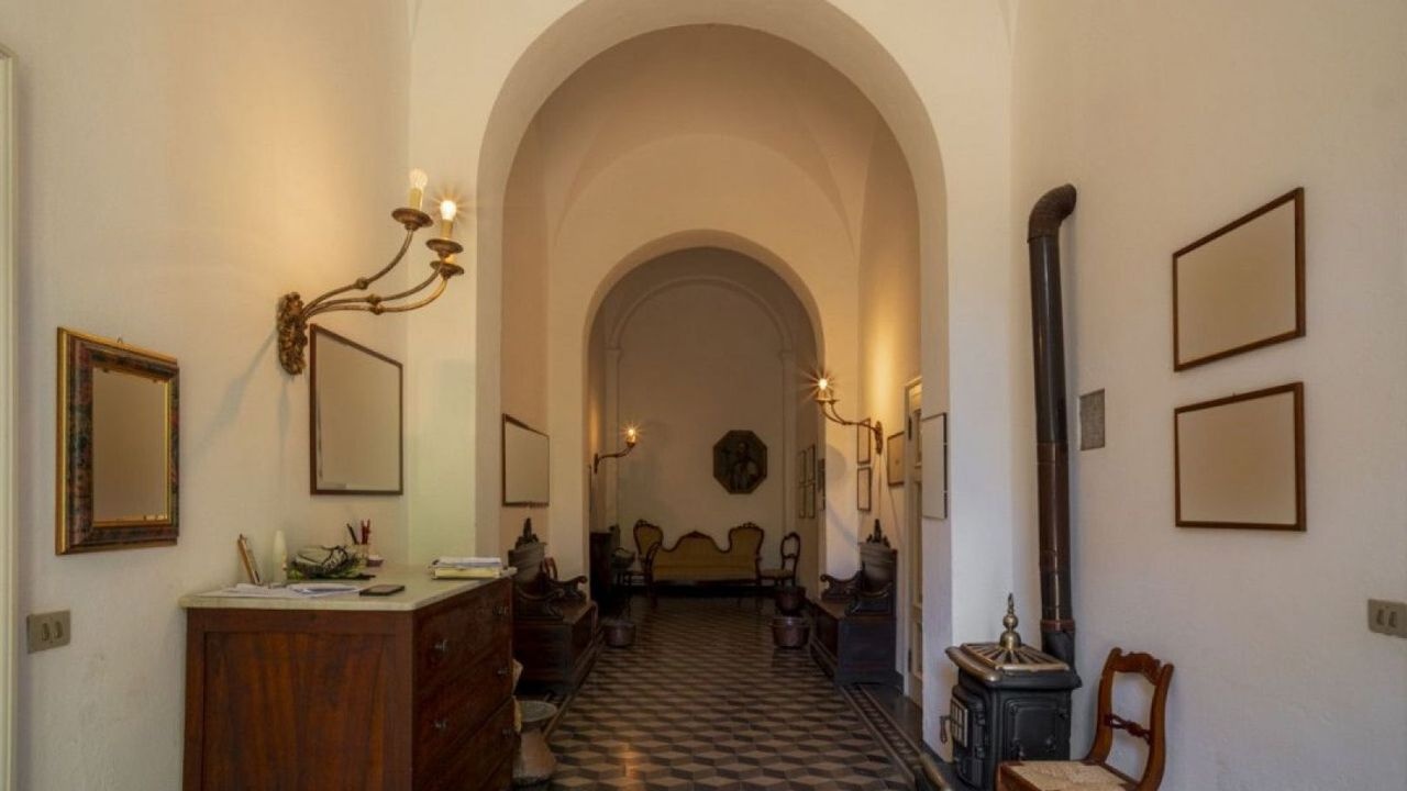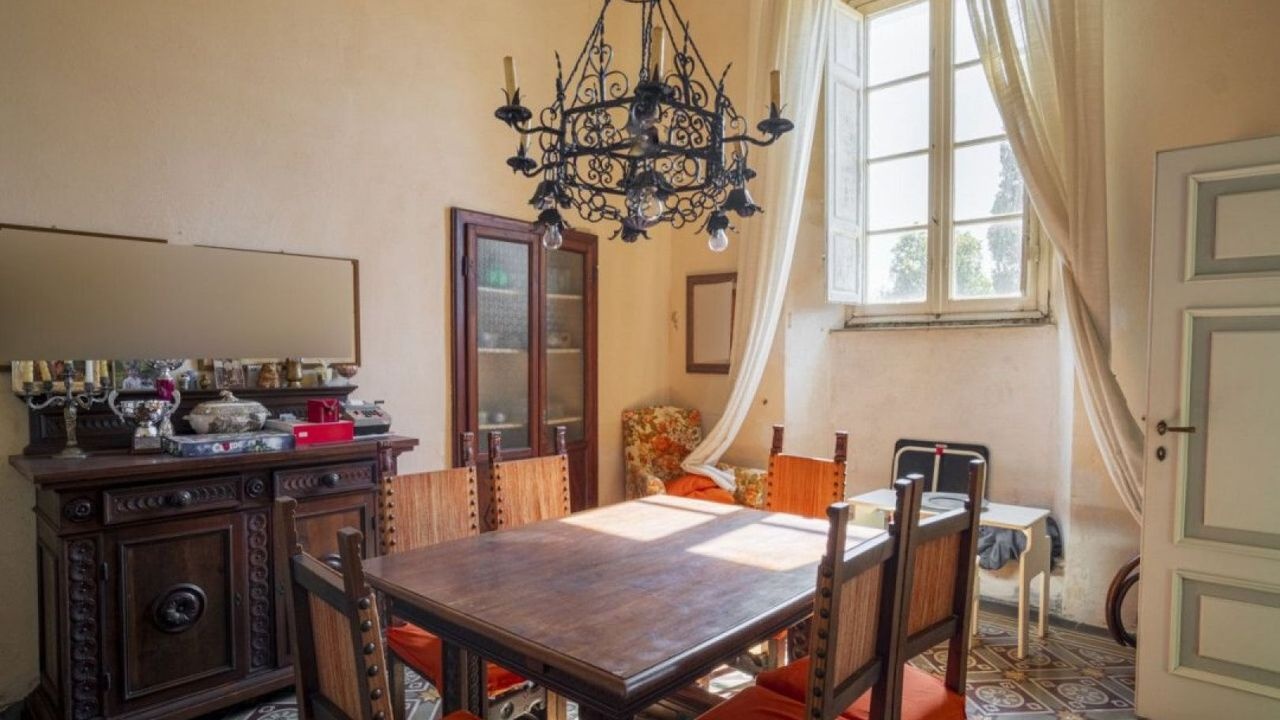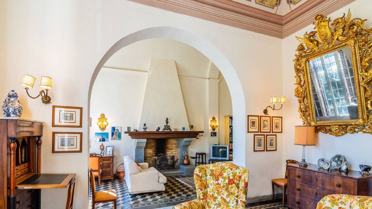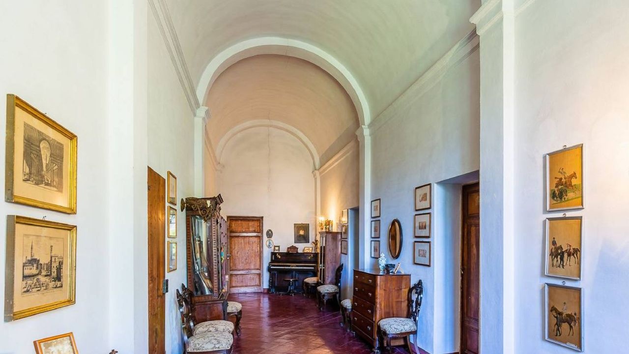 The interiors of the villa retain their original charm: on the ground floor lies a spectacular living area comprising a kitchen with an antique hearth, a pantry, a dining room and four elegant sitting rooms, one of which features a fireplace. The rooms are enhanced by frescoed vaulted ceilings and original flooring with refined geometric patterns.
