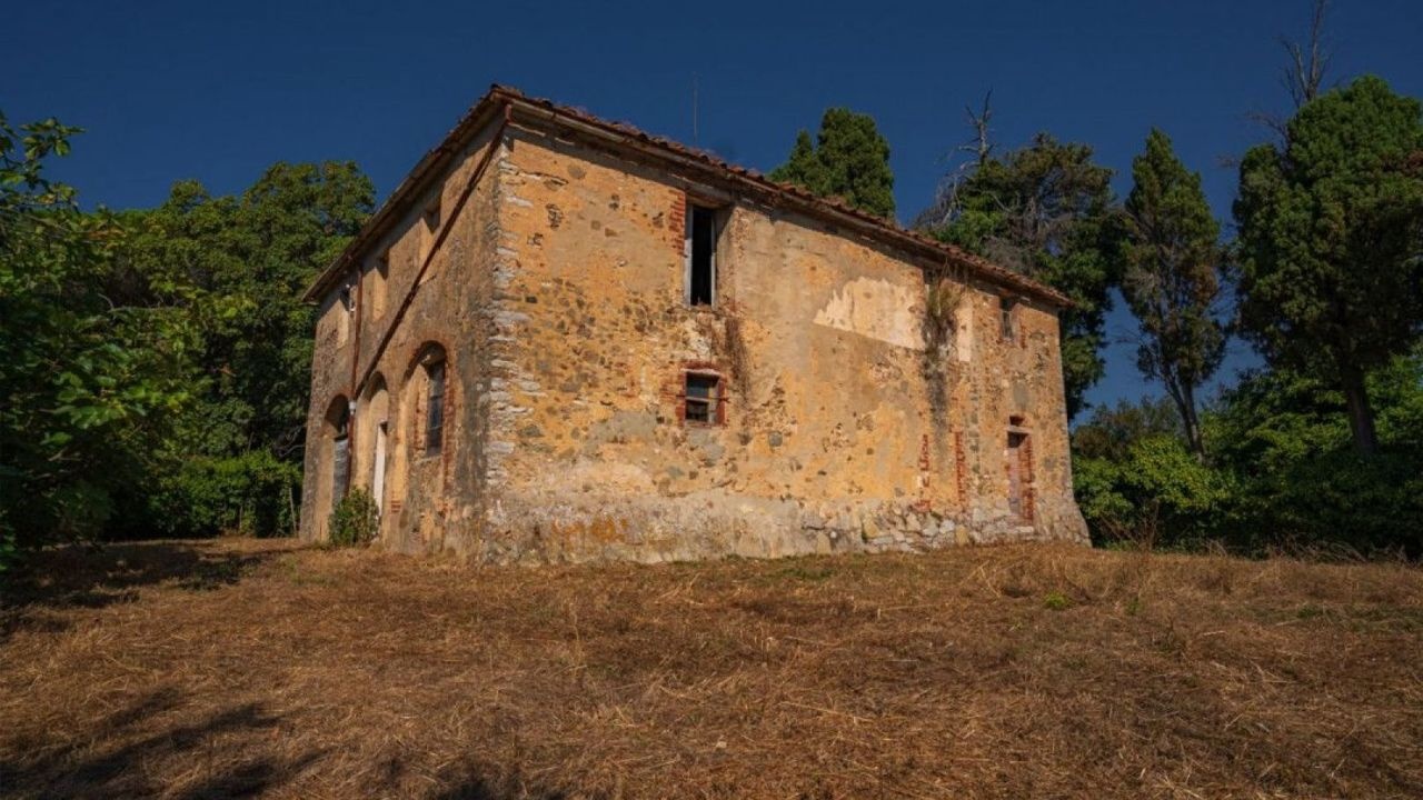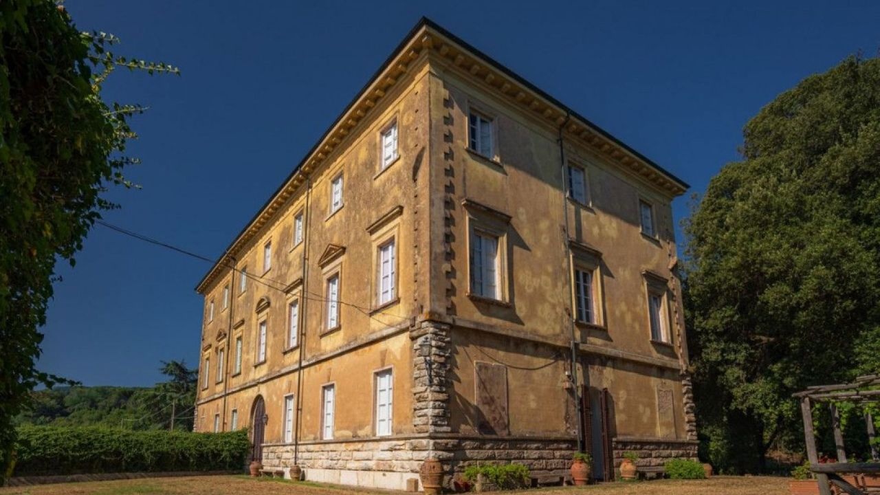 The property comprises the right-hand wing of the main villa, spread over four floors with a floor area of approximately 750 sqm, as well as a detached farmhouse in need of renovation and various outbuildings, offering ample potential for development.