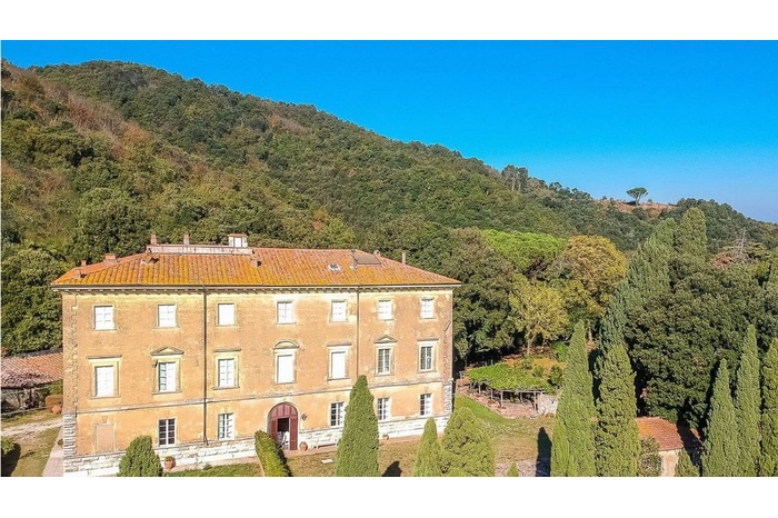 Refined section of a historic late 19th-century villa, set in a natural setting of rare beauty, for sale in a commanding and secluded location, offering enchanting views over the rolling Tuscan hills and situated a short distance from the Livorno coast.