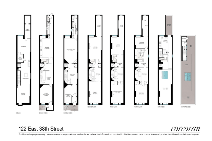 A private elevator services each level, and the scale and proportions of each floor allow for a wide range of design possibilities. The upper levels open to outdoor space, including a private terrace and rooftop retreat with views of the Chrysler Building and the Empire State Building.