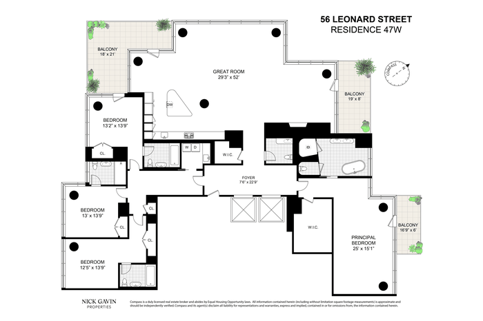 Presenting 56 Leonard Street, Residence 47W, a half-floor at the iconic downtown landmark by Herzog and de Meuron. This impressive home features 12-foot ceilings, three terraces, floor-to-ceiling windows, and 270 degrees of open views, including both rivers, the Freedom Tower, and the midtown skyline.