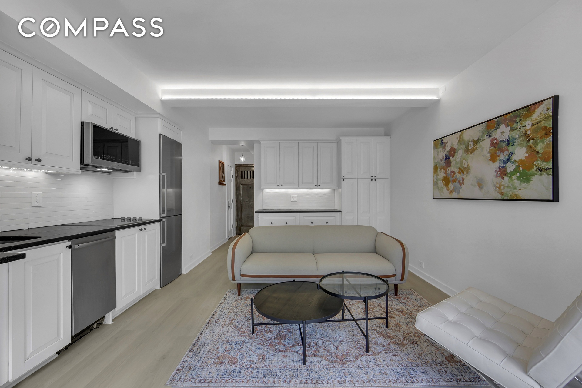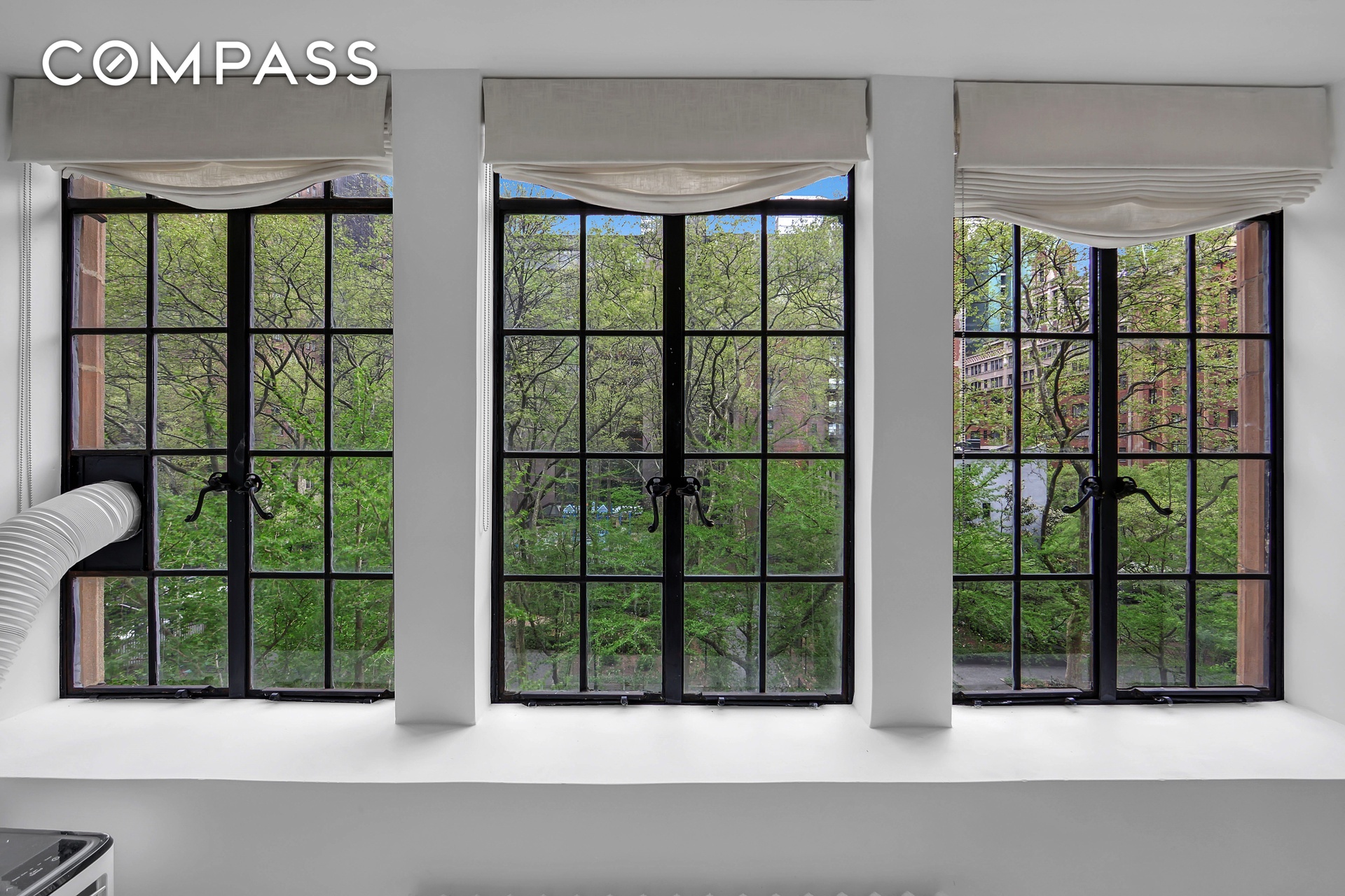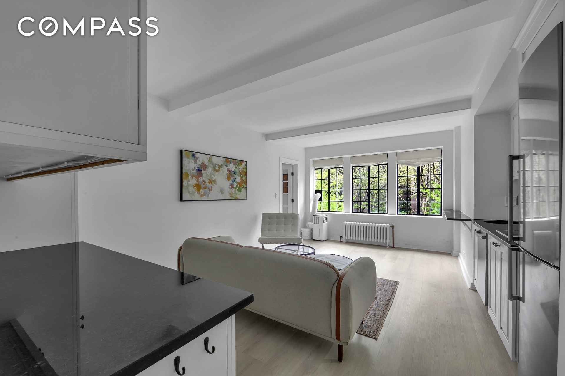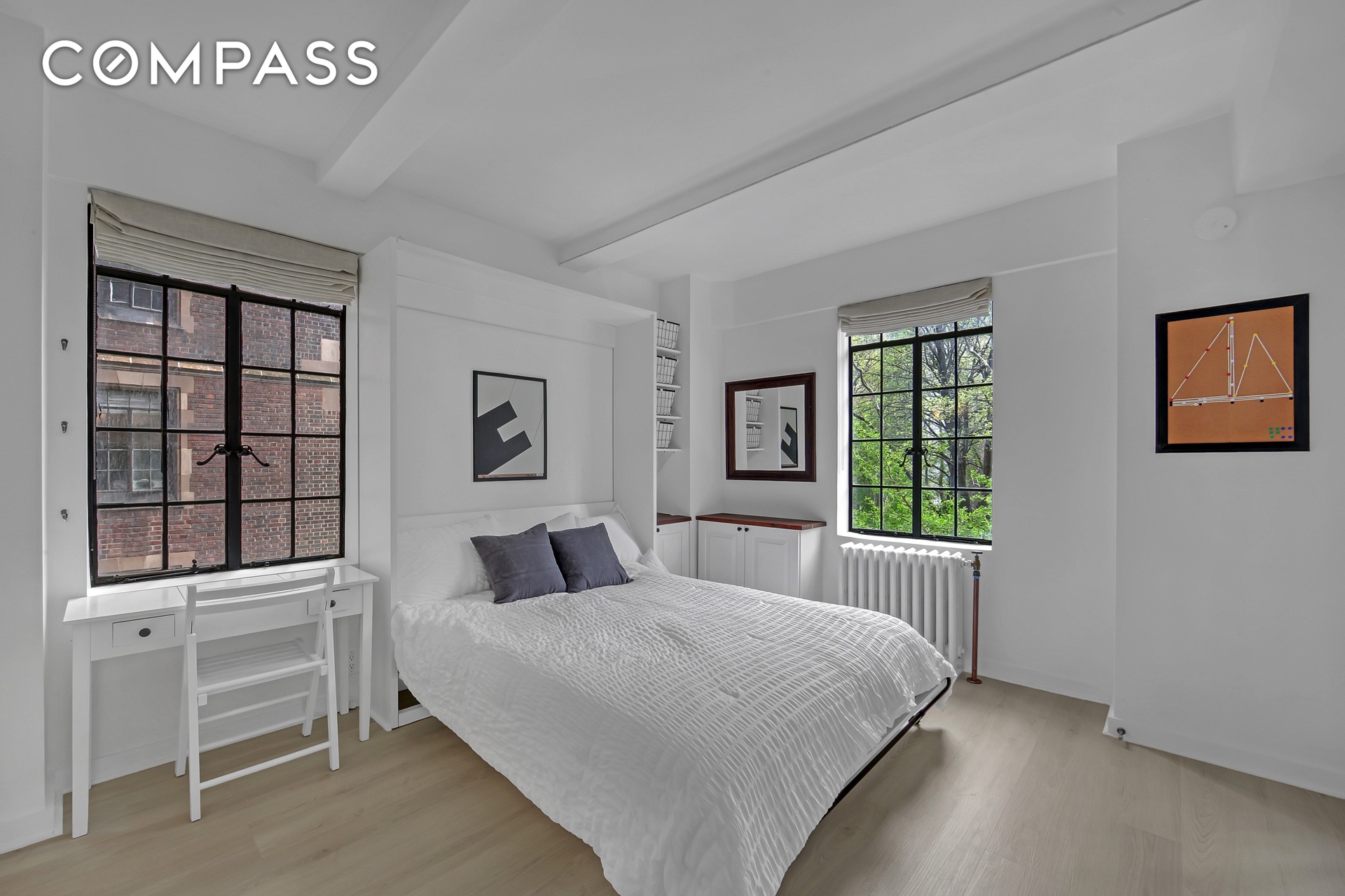 Experience the perfect blend of historic charm and modern features in this renovated one-bedroom at the iconic Prospect Tower. Perched on the fourth floor with coveted western exposure, the home is bathed in afternoon light and features three large windows framing picturesque views of the lush Tudor City Park—a rare, tranquil escape in the heart of Midtown. The apartment features brand new wide plank white oak vinyl flooring throughout the space.