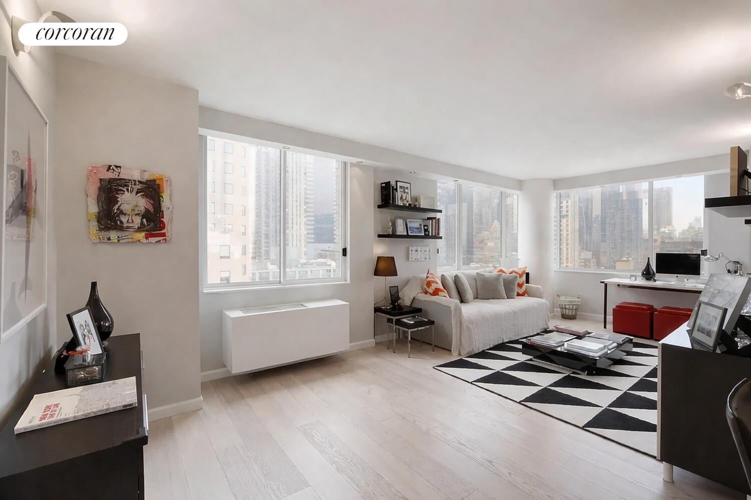 Welcome to Residence 20B at 350 West 50th Street, where luxury and convenience converge in the vibrant heart of Midtown West.