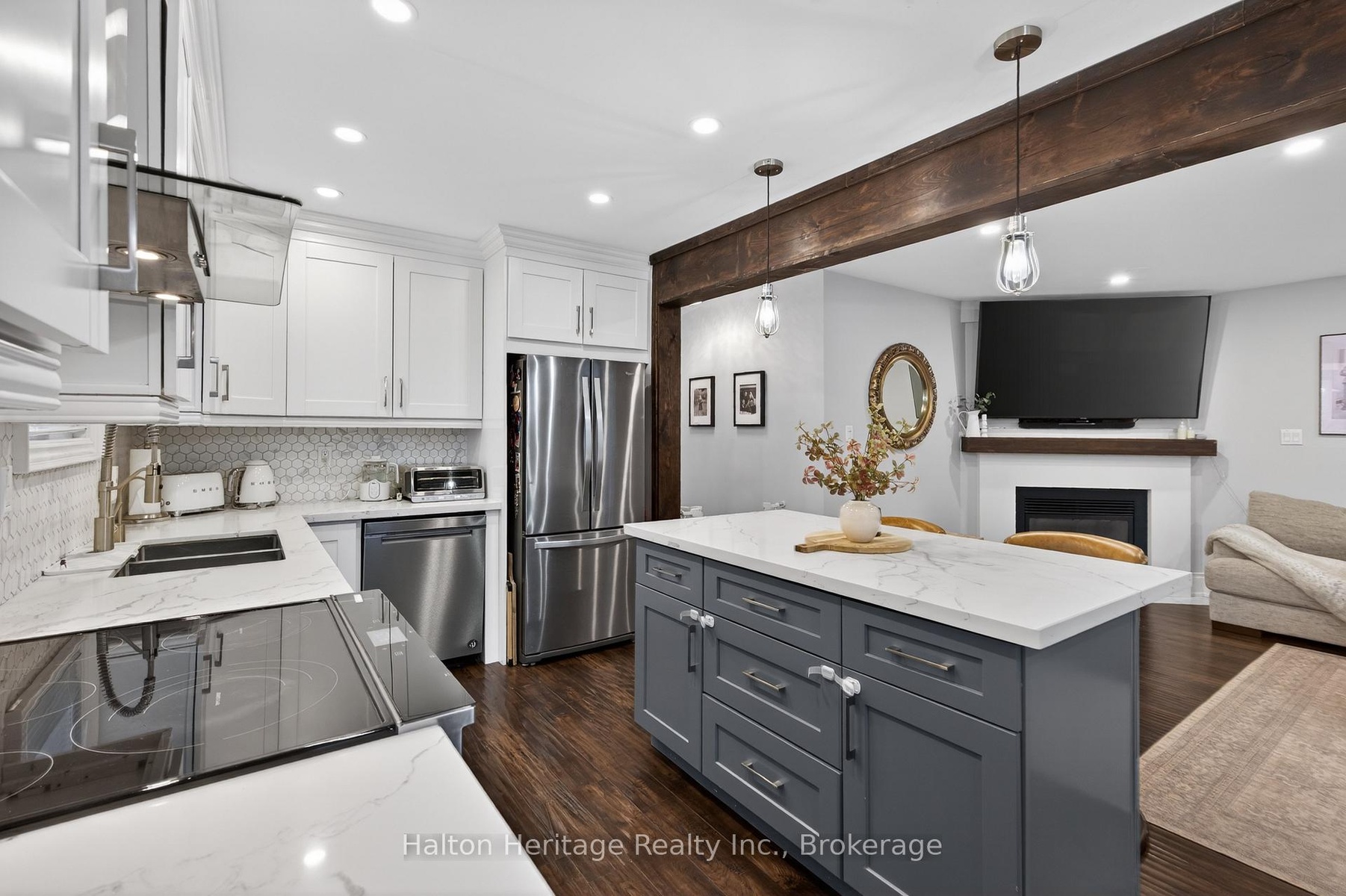 Welcome to this elegant two-story family ready home nestled in Waterdown. This home boosts a double car garage and near 1800 sq feet of total living space over 3 levels of move in ready style! As you enter, you'll be greeted by pristine porcelain tiles in the foyer, leading to an open-concept design connecting the kitchen, living room, and dining room, all adorned with beautiful hardwood flooring. Upstairs, you'll find three spacious bedrooms and main bathroom offering ample living space. Step outside to a generous rear deck, offering privacy and a perfect spot for outdoor enjoyment. The fully finished lower level features a cozy fireplace, creating an inviting space for relaxation and entertainment. This home is the epitome of comfort and style in a wonderful neighbourhood.