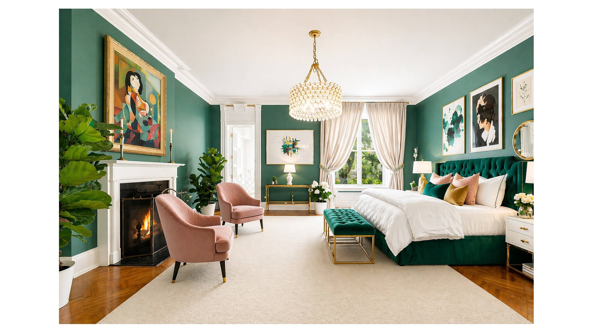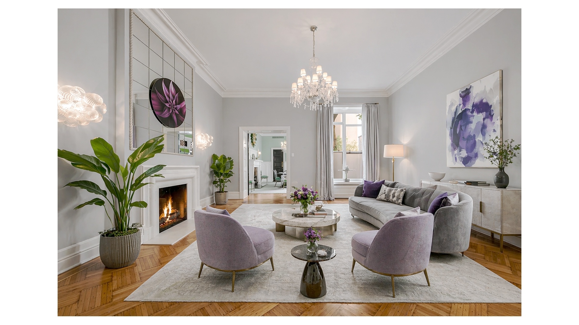 Entering the home, a grand entry gallery, adorned with marble accents, greets residents and guests. Expansive windows invite natural light that dances across the gleaming hardwood floors, creating an airy and inviting ambiance throughout. Well-proportioned rooms showcasing high ceilings, refined finishes, and custom millwork all provide an ideal canvas to create multiple gracious spaces for both living and entertaining.