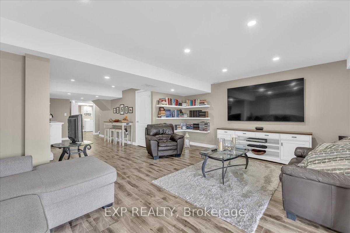 Stunning 2015 Summit model with high-end craftsmanship and thoughtful design throughout. Enter through double doors into a grand foyer with ceramic tile, coat room and a dramatic wrought-iron staircase. The open main level offers luxurious living - gleaming hardwood floors, formal dining room, separate living room with gas fireplace, and an elegant chef's kitchen with quartz countertops, center island, high-end stainless appliances, ceramic flooring, custom lighting and a bright breakfast area. Large oversized windows flood the home with brilliant natural light.Primary suite is a true retreat with rich hardwood floors, an extra-large window provides an abundance of natural light and a luxurious 5-piece ensuite with soaker tub & glass shower. Additional bedrooms feature hardwood floors, generous closets and abundant light. Three full bathrooms provide convenience for family and guests.Outdoor living is exceptional: fully fenced yard, no rear neighbors, and striking double-decker timbered deck - perfect for entertaining and serene privacy. Beautifully finished walk-out lower level adds flexible living space for relaxation or recreation.Key Features- Built 2015 by reputable builder; upgraded finishes throughout- Luxurious main-level living: hardwood & ceramic floors, formal dining, separate living room- Chef's kitchen: quartz counters, center island, high-end S/S appliances, custom lighting- Breakfast area with W/O access to a Large Sunlit Deck- Primary bedroom with large 5-pc ensuite- 3 full bathrooms- Fully finished walk-out basement- Fully fenced backyard, double-decker timbered deck, no rear neighbors- Grand foyer with ceramic tile and wrought-iron staircaseThis Summit model delivers "WOW" finishes at every turn - move-in ready and built for elegant everyday living.