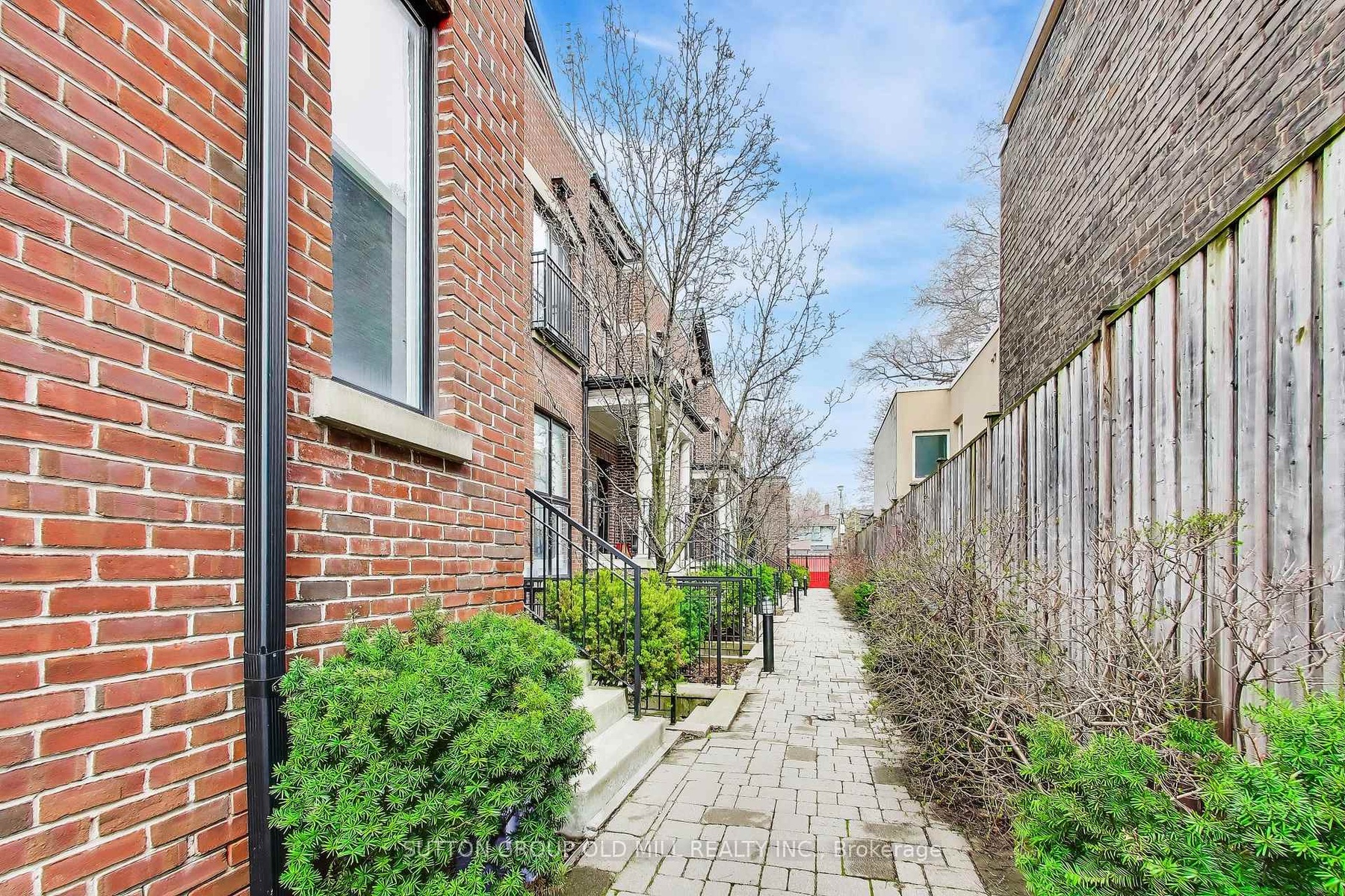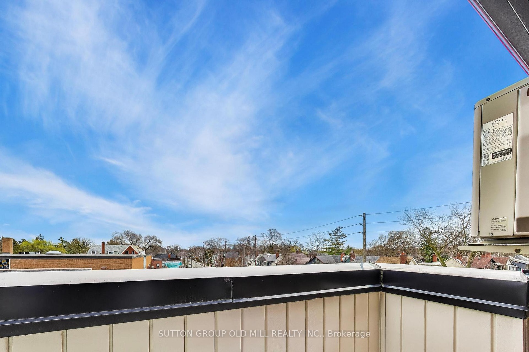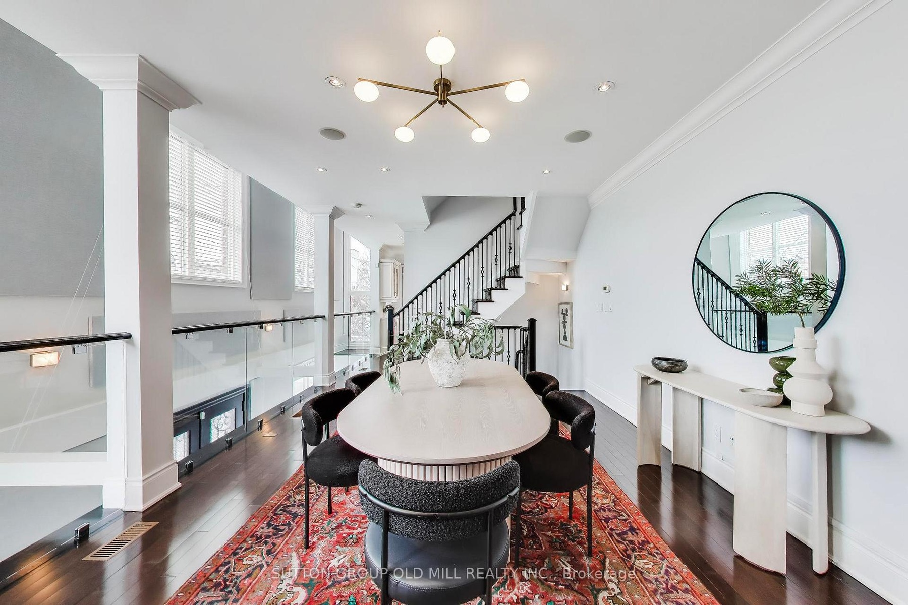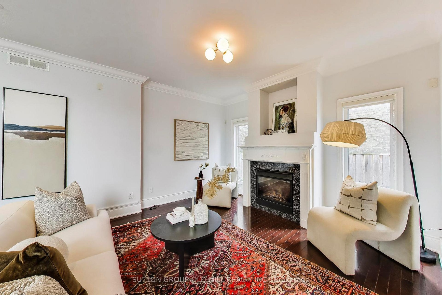 Hidden Gem at 'Annette Lanes' in Bloor West Village: Sophisticated Freehold Townhome with live/work potential! Welcome to a truly exceptional & rarely offered 2700 square foot Townhome, where timeless elegance meets modern versatility across four above-grade thoughtfully designed levels. A grand double-door entrance with wrought iron detailing opens to an impressive entry level featuring exquisite marble flooring & an airy, light-filled ambiance enhanced by expansive windows with a privacy glass option. Perfect as a dream home office, this versatile space also features a cozy gas fireplace and inviting sitting area, easily doubling as a family room or den, with a powder room and dedicated laundry for added convenience. The second level reveals a bright open-concept living and dining area enhanced by a second gas fireplace, pot lights, and dramatic two-storey windows that flood the space with natural light. An atrium-style glass railing overlooks the level below, adding architectural sophistication. The kitchen is beautifully appointed with marble countertops, stainless steel appliances, & a functional layout for entertaining, with a walkout to a stunning south-west facing brick terrace featuring three charming cut-out windows - perfect for entertaining & relaxing. The third level offers two spacious bedrooms, including one with a private balcony, along with a well-designed double-entry 4-piece bathroom with glass shower.The top level is a true retreat, showcasing a luxurious primary suite with vaulted ceiling, skylight, & a striking oversized round window. Enjoy a private third balcony & a marble 5-piece ensuite complete with water closet, dual vanities, soaker tub, & separate glass shower. With a private garage & just steps to restaurants, cafés, boutique shopping, TTC and everyday amenities, as well as the Humber River trails, this is a rare opportunity to own a distinctive property that offers luxury, flexibility, and an unbeatable location all in one.