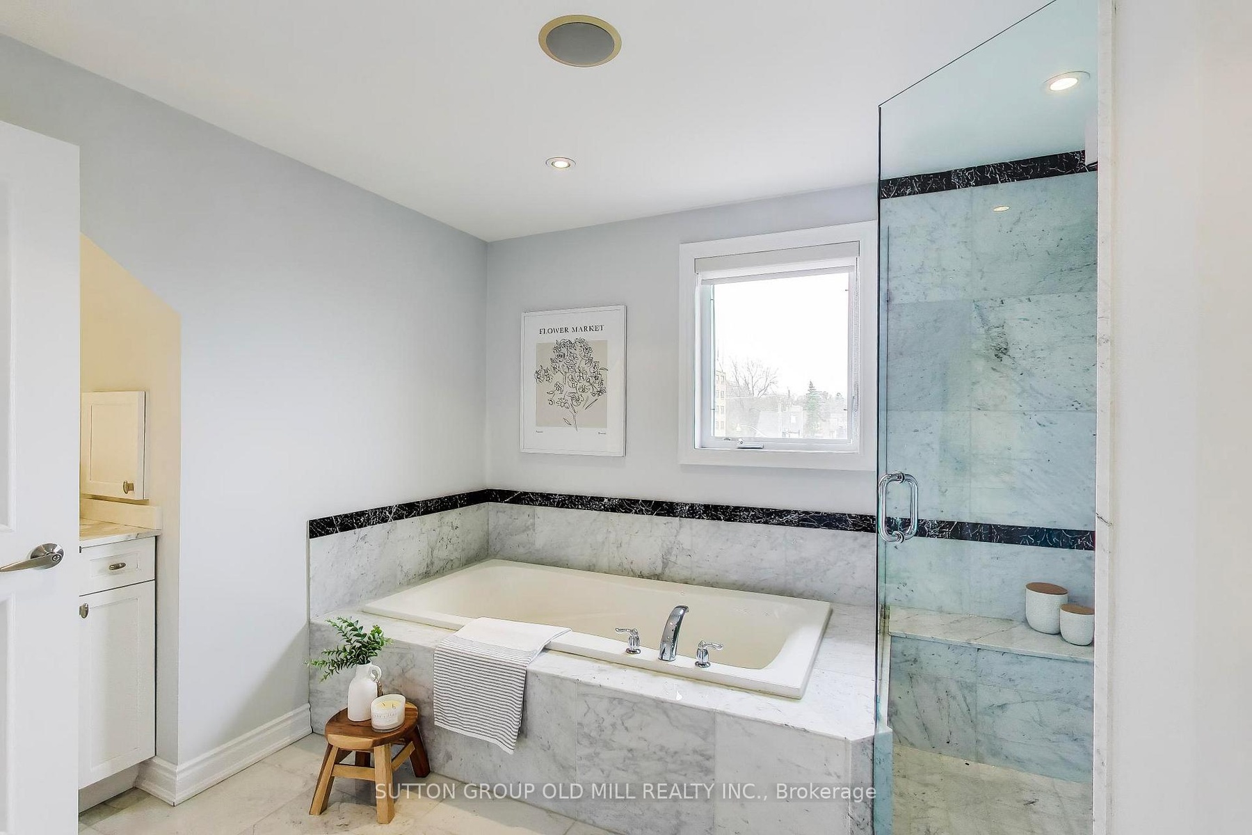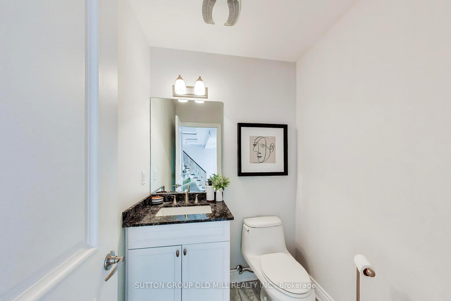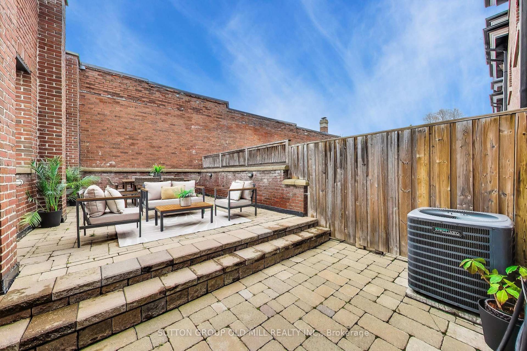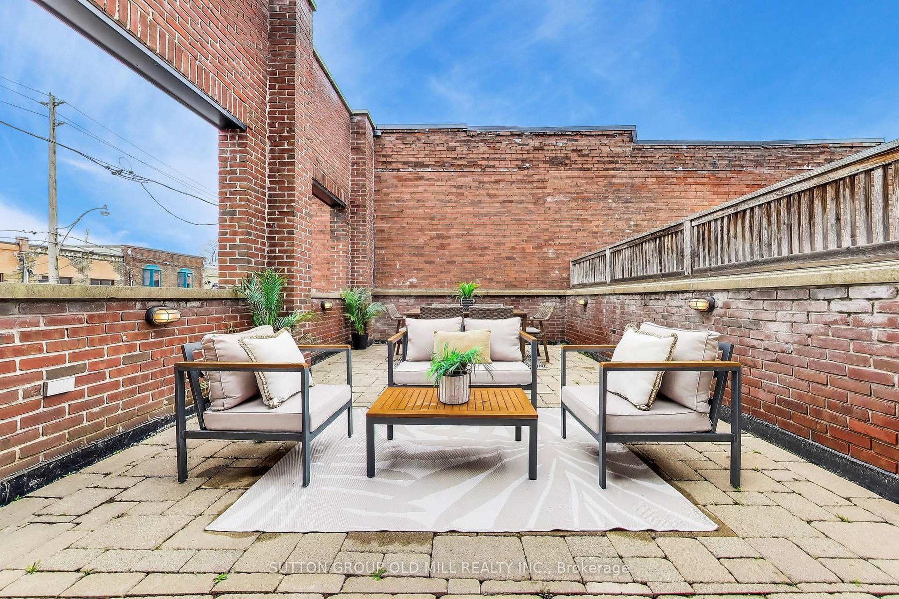 Hidden Gem at 'Annette Lanes' in Bloor West Village: Sophisticated Freehold Townhome with live/work potential! Welcome to a truly exceptional & rarely offered 2700 square foot Townhome, where timeless elegance meets modern versatility across four above-grade thoughtfully designed levels. A grand double-door entrance with wrought iron detailing opens to an impressive entry level featuring exquisite marble flooring & an airy, light-filled ambiance enhanced by expansive windows with a privacy glass option. Perfect as a dream home office, this versatile space also features a cozy gas fireplace and inviting sitting area, easily doubling as a family room or den, with a powder room and dedicated laundry for added convenience. The second level reveals a bright open-concept living and dining area enhanced by a second gas fireplace, pot lights, and dramatic two-storey windows that flood the space with natural light. An atrium-style glass railing overlooks the level below, adding architectural sophistication. The kitchen is beautifully appointed with marble countertops, stainless steel appliances, & a functional layout for entertaining, with a walkout to a stunning south-west facing brick terrace featuring three charming cut-out windows - perfect for entertaining & relaxing. The third level offers two spacious bedrooms, including one with a private balcony, along with a well-designed double-entry 4-piece bathroom with glass shower.The top level is a true retreat, showcasing a luxurious primary suite with vaulted ceiling, skylight, & a striking oversized round window. Enjoy a private third balcony & a marble 5-piece ensuite complete with water closet, dual vanities, soaker tub, & separate glass shower. With a private garage & just steps to restaurants, cafés, boutique shopping, TTC and everyday amenities, as well as the Humber River trails, this is a rare opportunity to own a distinctive property that offers luxury, flexibility, and an unbeatable location all in one.