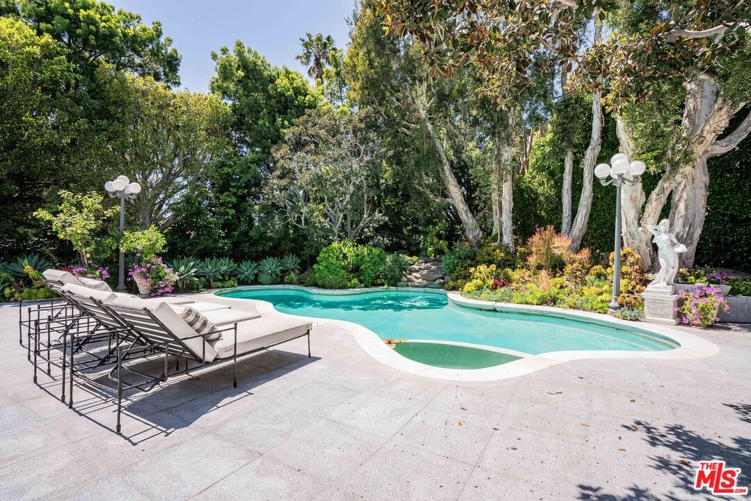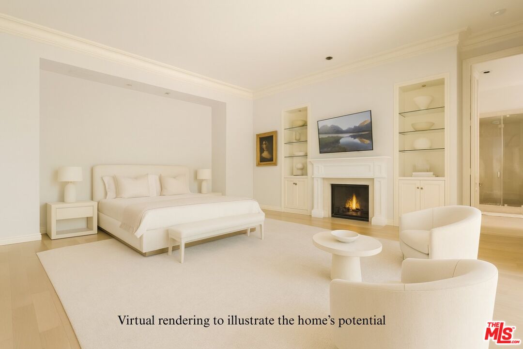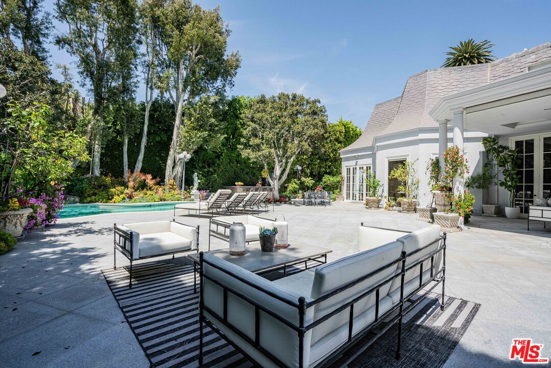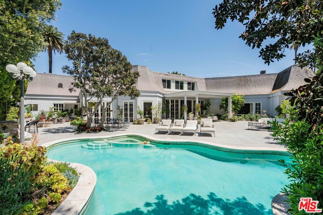 Introducing 915 Hartford Way, a timeless French Regency estate nestled behind private gates in prime Beverly Hills, just moments from the iconic Beverly Hills Hotel. This architectural gem blends elegance, sophistication, and serenity across beautifully landscaped grounds. Step through grand double doors into a dramatic two-story foyer. The formal living room showcases a stately fireplace and walls of glass framing lush surroundings. An open floor plan connects refined living spaces, including a formal dining room with soaring ceilings and tranquil views, and a charming breakfast room with direct outdoor access. The gourmet kitchen is a chef's dream, featuring a central island, top-tier appliances, and seamless design. A cozy family room/den boasts rich wood floors, custom built-ins, a fireplace, and an adjoining office. The luxurious primary suite offers a peaceful retreat with fireplace, dual walk-in closets, and a spa-like bath with soaking tub and walk-in shower. Two additional guest suites on the main level feature custom finishes and garden views. Upstairs, find a spacious guest room with its own bath and an expansive bonus room ideal for entertainment or play. Outdoors, enjoy a resort-style oasis with lush gardens, a covered terrace, pool, fire pit, bar, and multiple dining areas and lounge spaces. Additional amenities include maid's quarters, a wine cellar, and a 3-car garage. A rare offering of privacy, luxury, and proximity to world-class shopping, dining, and entertainment. Shown to prequalified buyers only. (Virtual renderings to illustrate the home's potential.)