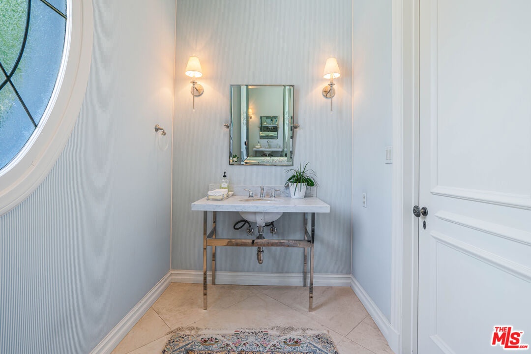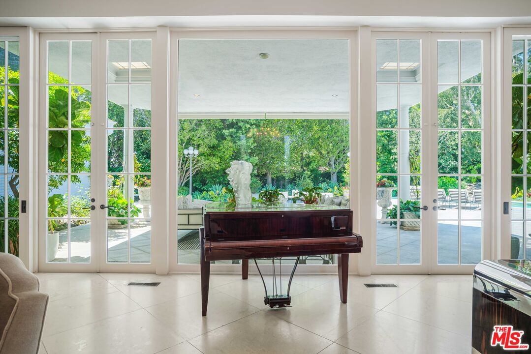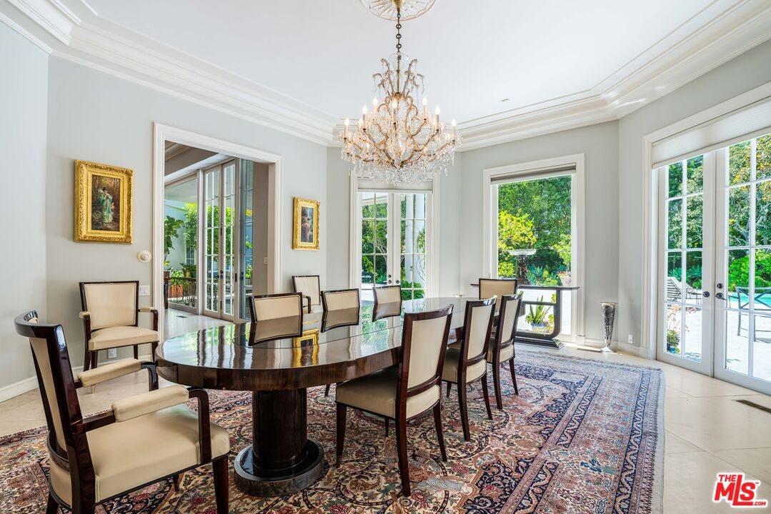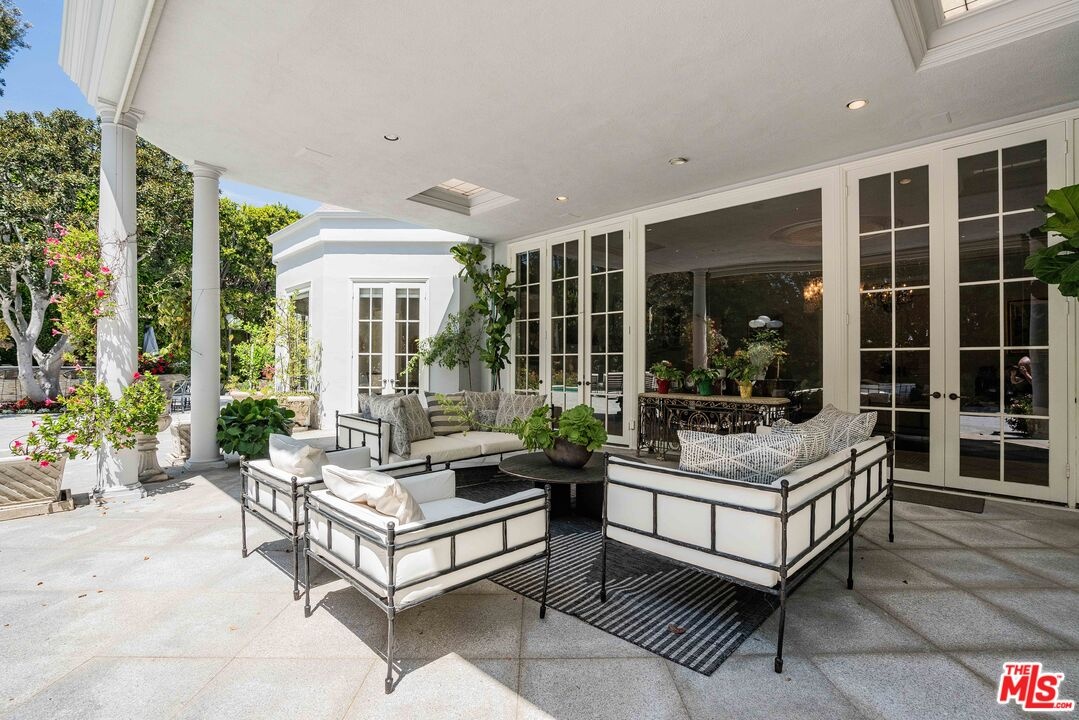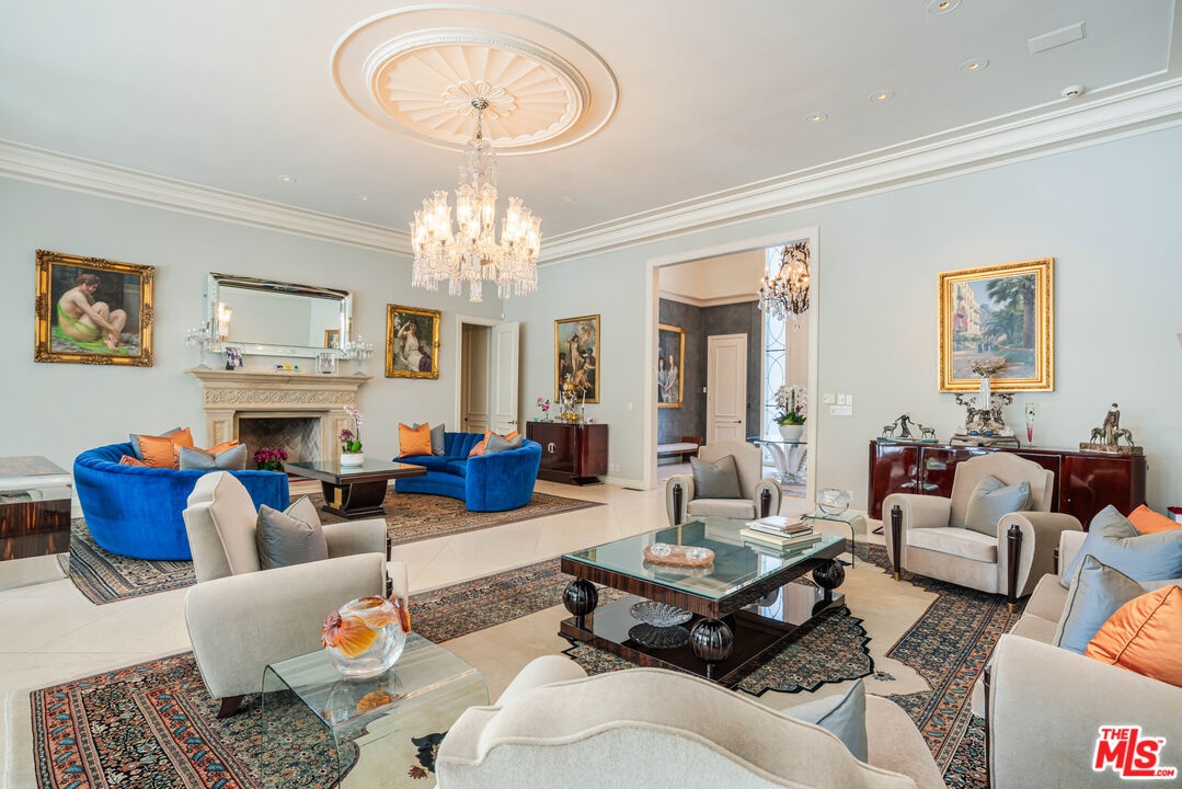 Introducing 915 Hartford Way, a timeless French Regency estate nestled behind private gates in prime Beverly Hills, just moments from the iconic Beverly Hills Hotel. This architectural gem blends elegance, sophistication, and serenity across beautifully landscaped grounds. Step through grand double doors into a dramatic two-story foyer. The formal living room showcases a stately fireplace and walls of glass framing lush surroundings. An open floor plan connects refined living spaces, including a formal dining room with soaring ceilings and tranquil views, and a charming breakfast room with direct outdoor access. The gourmet kitchen is a chef's dream, featuring a central island, top-tier appliances, and seamless design. A cozy family room/den boasts rich wood floors, custom built-ins, a fireplace, and an adjoining office. The luxurious primary suite offers a peaceful retreat with fireplace, dual walk-in closets, and a spa-like bath with soaking tub and walk-in shower. Two additional guest suites on the main level feature custom finishes and garden views. Upstairs, find a spacious guest room with its own bath and an expansive bonus room ideal for entertainment or play. Outdoors, enjoy a resort-style oasis with lush gardens, a covered terrace, pool, fire pit, bar, and multiple dining areas and lounge spaces. Additional amenities include maid's quarters, a wine cellar, and a 3-car garage. A rare offering of privacy, luxury, and proximity to world-class shopping, dining, and entertainment. Shown to prequalified buyers only. (Virtual renderings to illustrate the home's potential.)