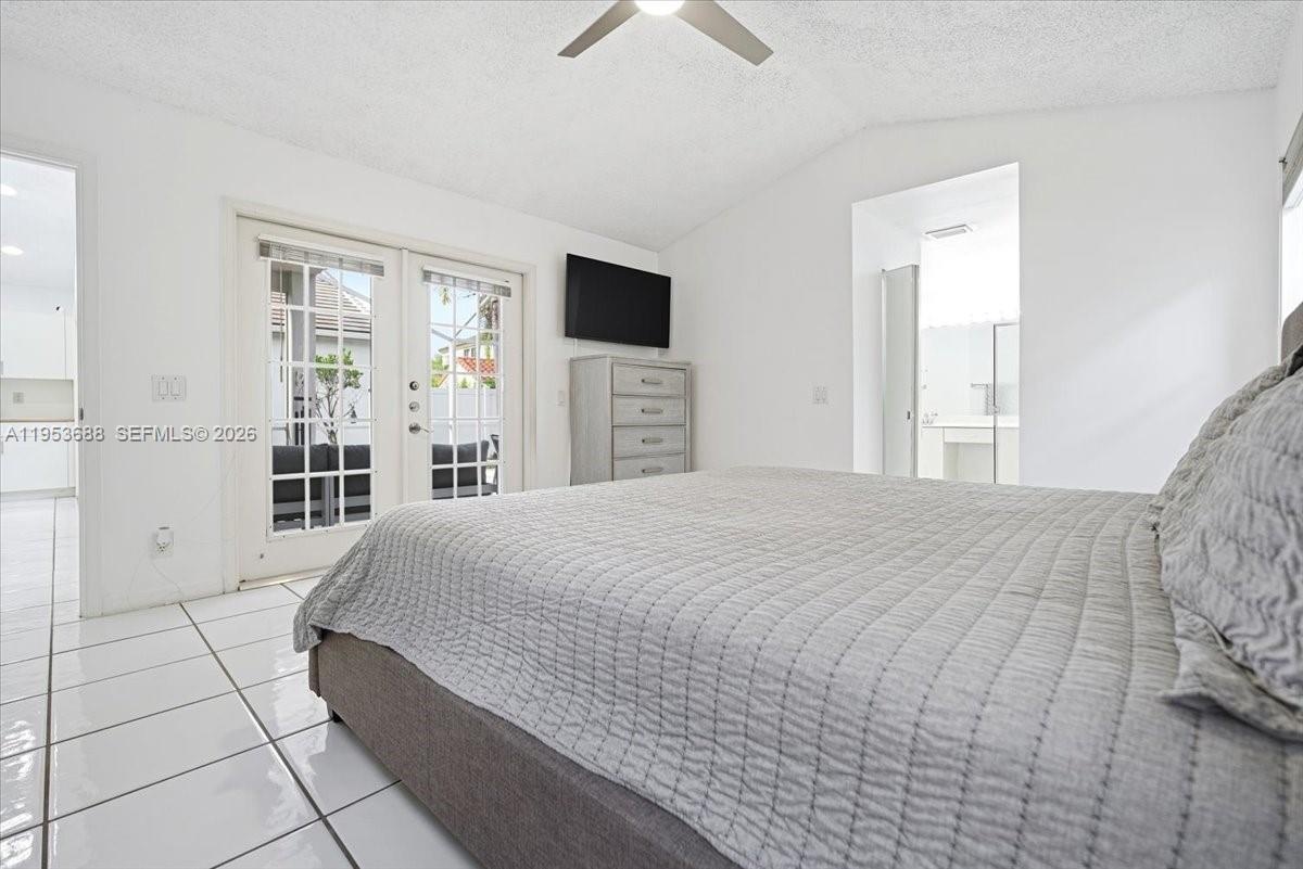 Open and bright floor plan featuring high ceilings throughout the living areas. Freshly painted interior with ceramic tile flooring throughout the entire home. French doors open to an oversized screened patio, perfect for relaxing or entertaining. The spacious en-suite primary bedroom offers vaulted ceilings, walk-in closets, a separate shower, Roman tub, and dual sinks. Updated second bathroom. The kitchen includes a sunny breakfast area. Accordion shutters throughout. Original roof in excellent condition.