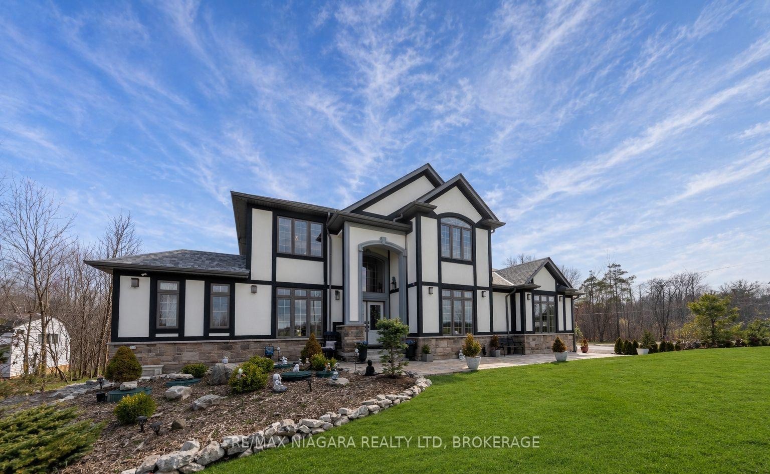 Welcome to this stunning 2022 custom-built home in the charming community of Ridgeway; just a short 7-minute drive to the sandy shores of Crystal Beach. Thoughtfully designed with exceptional craftsmanship and timeless finishes, this home offers the perfect blend of luxury and comfort. Step inside to a breathtaking foyer featuring 18-foot ceilings and a crystal chandelier, setting the tone for the elegance found throughout. The main level showcases 9-foot ceilings, detailed wainscotting and crown moulding, and a bright, open-concept great room with walkout to the backyard-perfect for entertaining and everyday living. The heart of the home is a chef-inspired kitchen complete with a 9-foot island, stunning Calacatta quartz countertops, high-end cabinetry, stainless steel appliances, a 5-burner gas stove, and beautiful live-edge wood shelving. Natural wood barn doors and oak tread stairs add warmth and character throughout the space. This home features 4 spacious bedrooms and 4 lovely bathrooms, including ensuites and walk-in closets in both the main level and primary bedrooms. The luxurious primary ensuite offers a spa-like experience with a 4-piece layout. Step outside to your private backyard retreat, featuring a large interlock patio, cozy firepit, and a serene koi pond with waterfall-an ideal setting to relax or entertain. A 130 sq ft shed, 2-car garage, and 6-car driveway provide ample storage and parking. Additional features include a hardwired security system, well water with iron filter & water softener, owned tankless water heater and 200 amp electrical service. This is a rare opportunity to own a beautifully crafted home in a prime location close to beaches, amenities, and small-town charm. Enjoy the peace and privacy of a quiet rural setting while still being just minutes from Crystal Beach and all that Fort Erie has to offer.