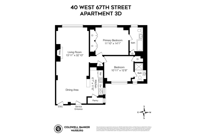 Both bedrooms are generously proportioned with en-suite baths. The apartment also features central air conditioning and thoughtfully restored prewar details throughout.