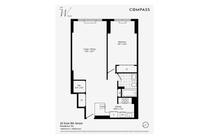 Perched on a high floor in the heart of Greenwich Village, Residence 14L is an oversized one-bedroom, one-bath condop offering open Eastern exposures and beautiful natural light throughout. This meticulously renovated home features approximately 9-foot ceilings, recessed lighting, a gracious separate dining area, and exceptional closet space — creating a layout that is both functional and refined.