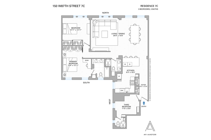 Residence 7C at 150 West 87th Street is a beautifully renovated 3 bedroom, 3 bathroom sanctuary with open views and incredible light in the heart of the Upper West Side.