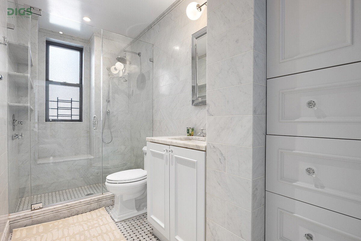 This incredible home has it all: a timeless renovation, high ceilings, large windows, abundant southern light streaming in over the brownstones across the street, treetop views, a full-size vented in-unit washer/dryer, centrally-controlled through-the-wall A/C discreetly hidden behind tasteful millwork, endless storage, gorgeous custom built-ins, and exquisite new herringbone floors with an inlaid border throughout this home.