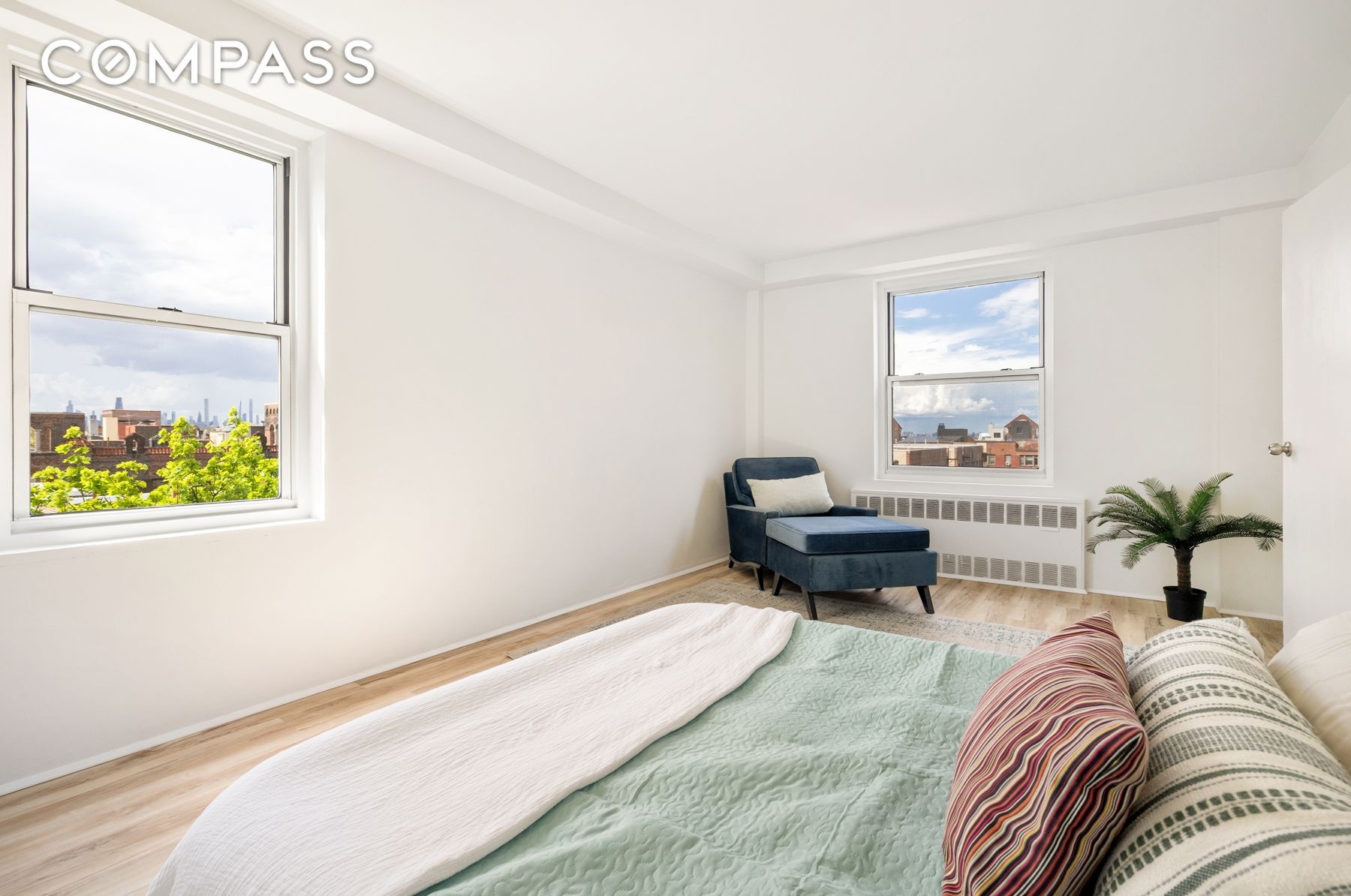 If you’re looking to create a fabulous midcentury modern spot for yourself in Jackson Heights, this is it! Come for the layout and space, stay for the views and light. Spanning over 1,000 square feet, this home has three exposures - West, South and North. Manhattan skyline views bring your attention outward as the sun beams inward, and you can sit on your private terrace to enjoy both. A separate windowed, large kitchen has a classic feel with incredible potential for re-imagination. There is a generous primary and sizable second bedroom with the option of a third - this apartment is ready to grow with you.