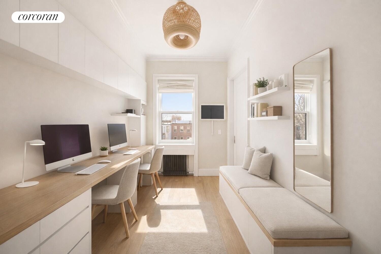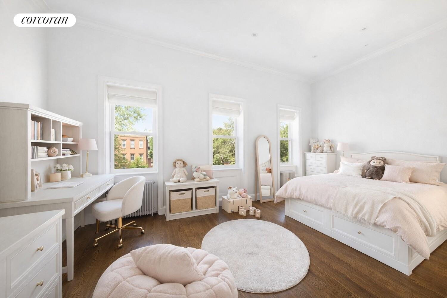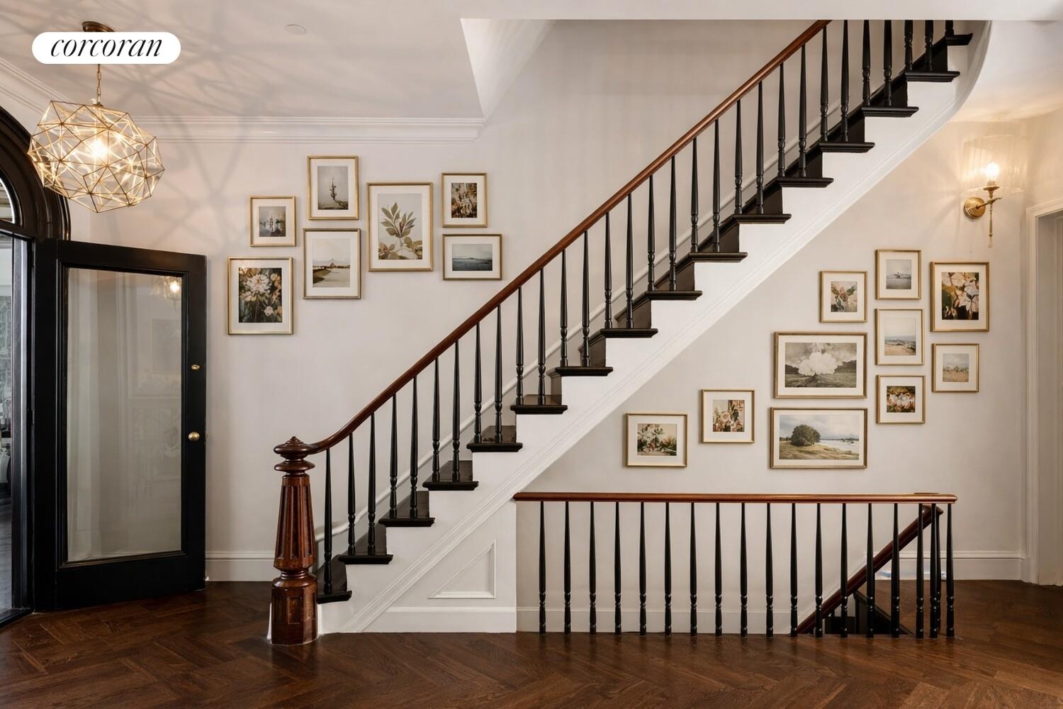 Designed by acclaimed architect Elizabeth Roberts, the residence achieves a remarkable balance between contemporary sophistication and the enduring character of a classic Brooklyn townhouse. Original architectural elements-including elegant moldings, a striking staircase, and a beautifully preserved marble fireplace mantle-anchor the home with a sense of history, seamlessly integrated within a refined, design-forward aesthetic.