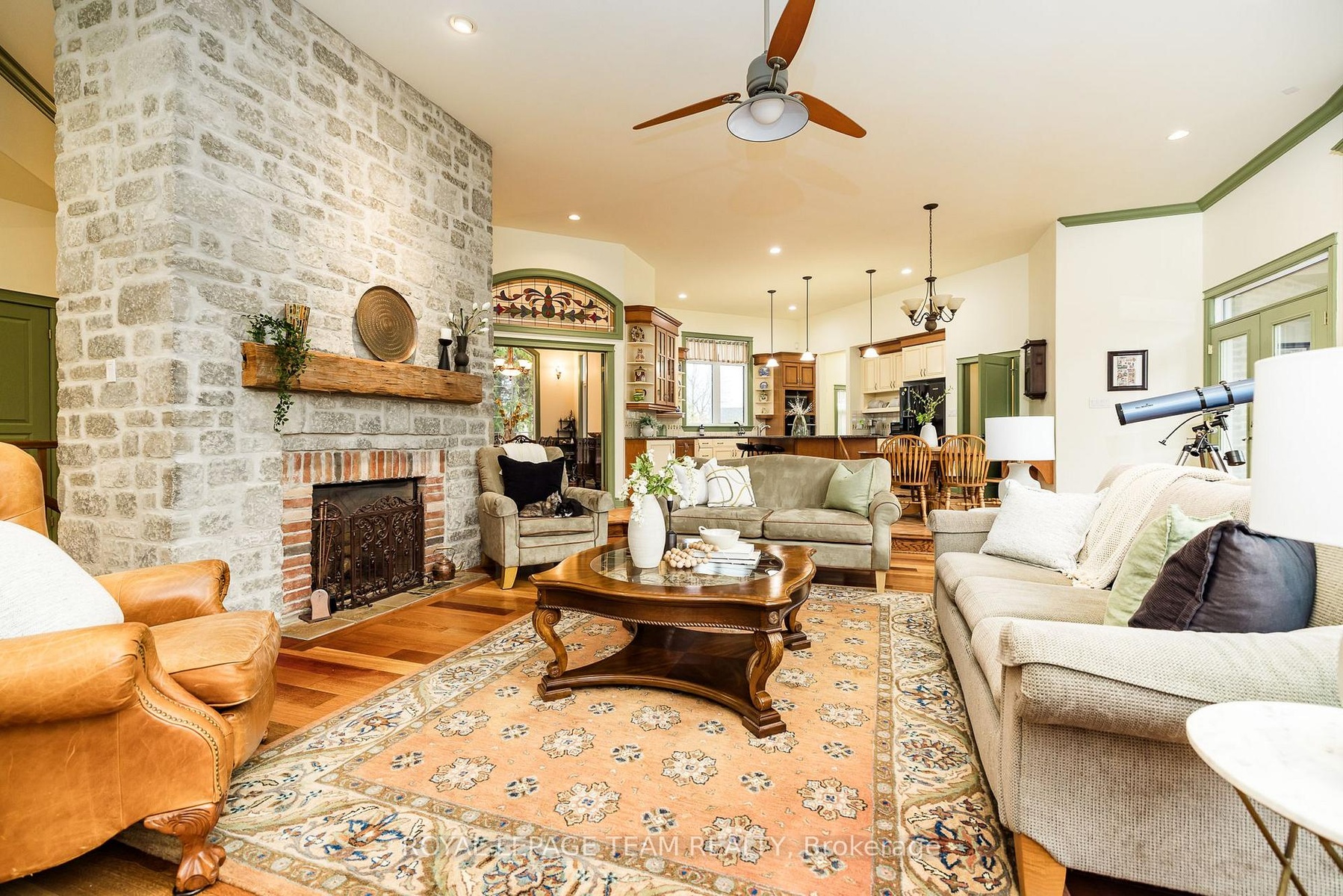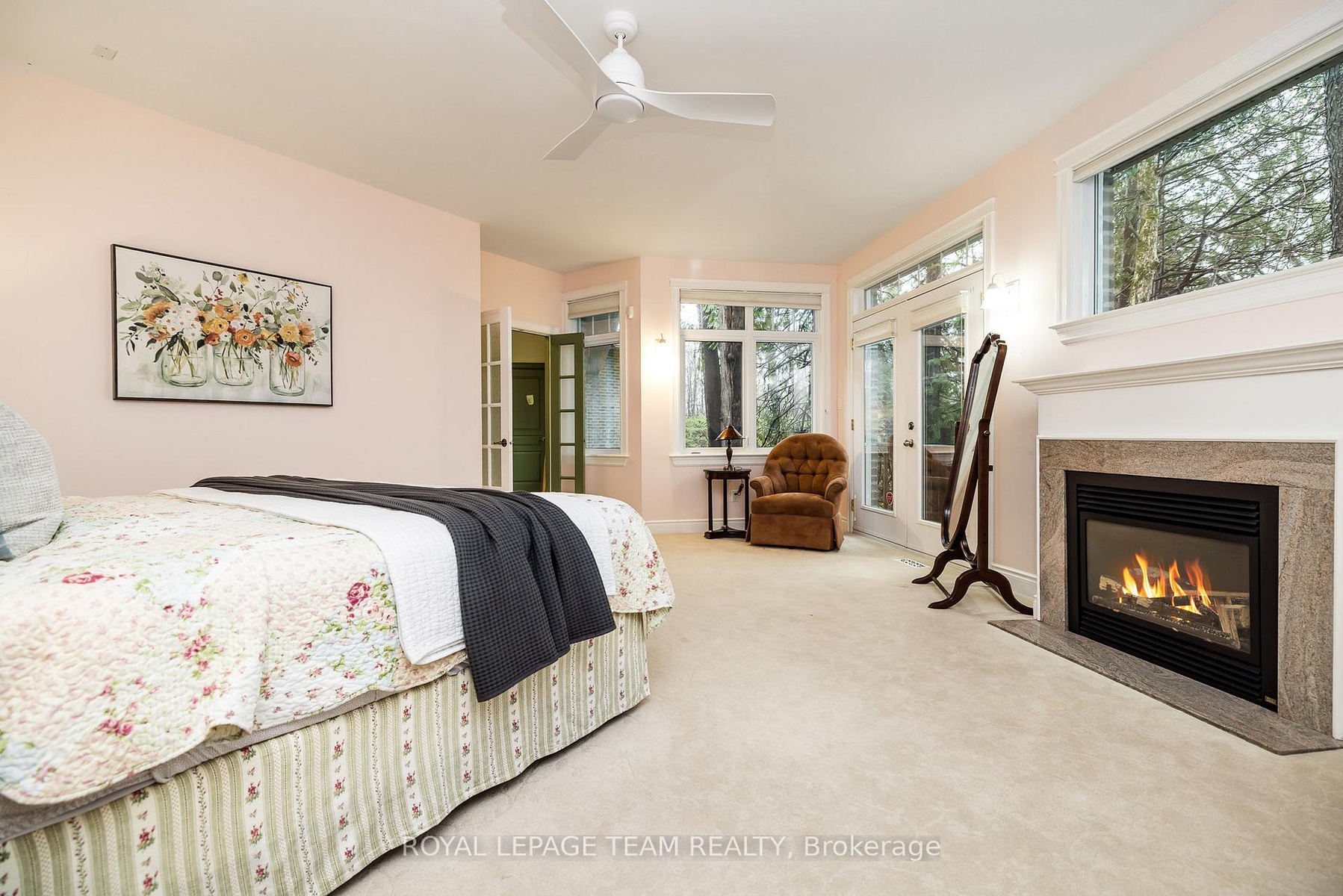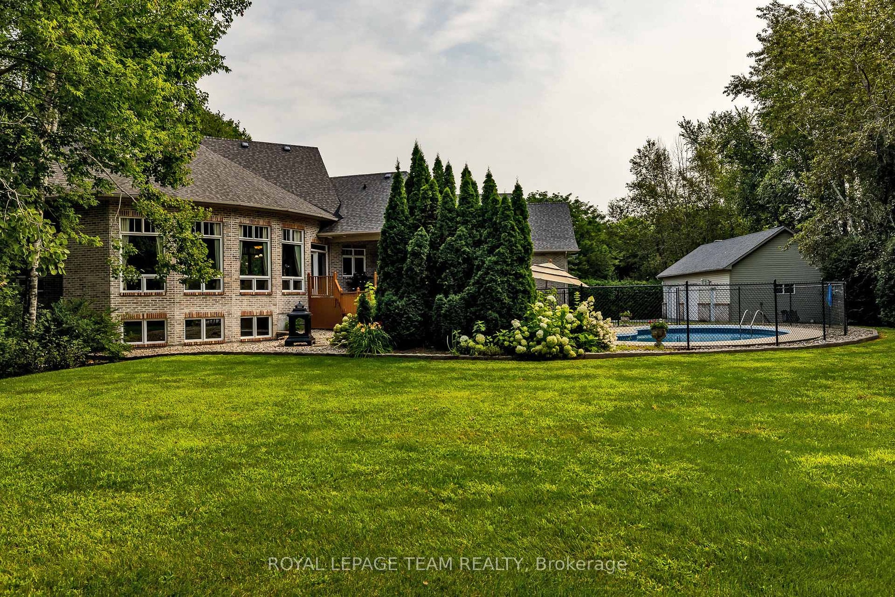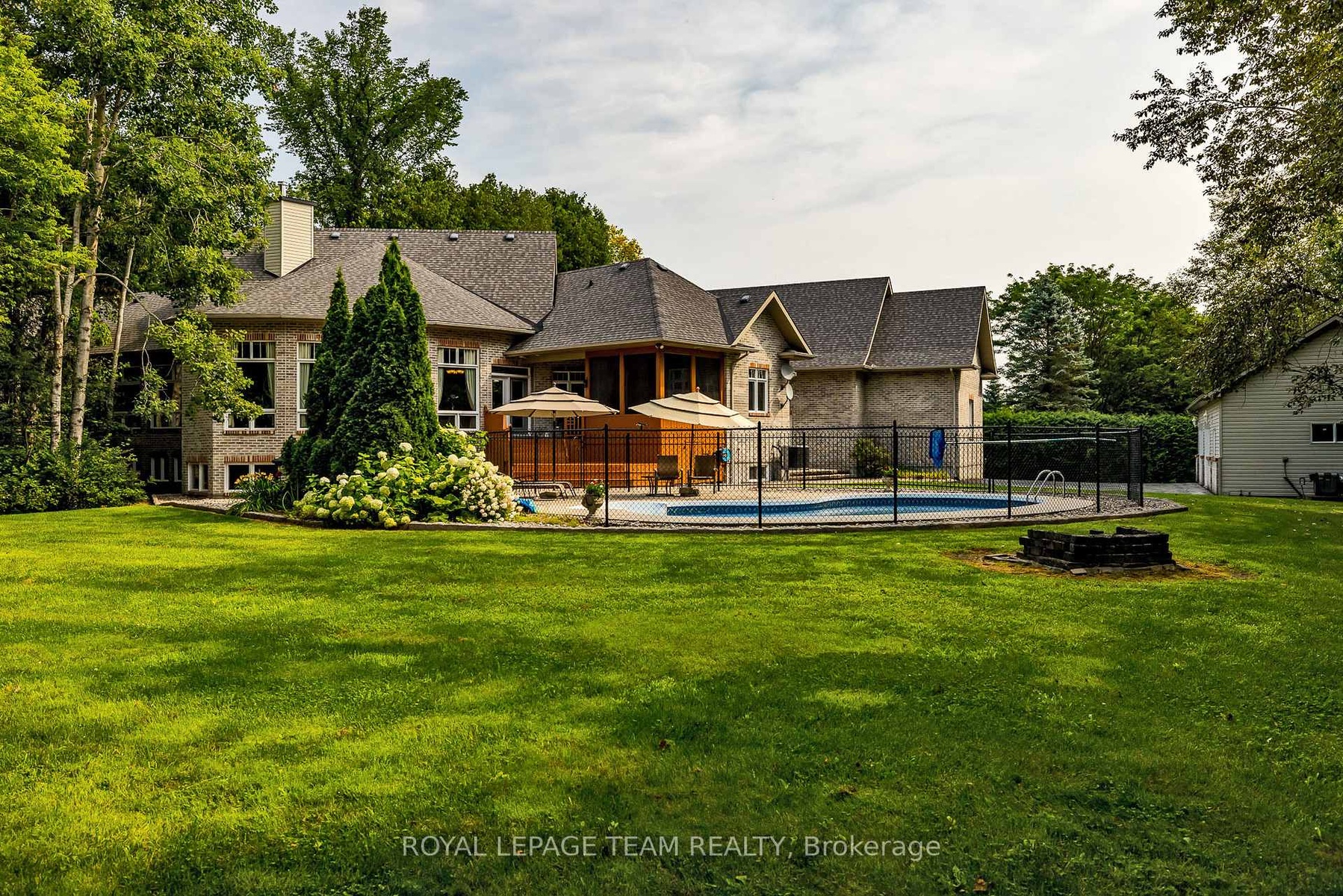 Perched majestically atop a gentle hill and secluded by a lush canopy of mature trees, this magnificent family home offers unparalleled privacy and a lifestyle defined by elegance. A private paved drive winds through the verdant landscape, leading you to a residence designed for both grand entertaining and quiet reflection. The heart of the home is the expansive living room, where soaring high ceilings and a massive wall of windows frame breathtaking views of the backyard oasis. At the center of it all sits a large gas fireplace, serving as a centerpiece that radiates warmth throughout the open-plan space. The gourmet kitchen is a chef's dream, boasting abundant cabinetry, a spacious layout, and a dedicated pantry area for seamless organization of all your culinary essentials. Bedrooms are masterfully set off to one wing of the home for privacy. The primary suite is a true sanctuary, complete with its own private porch, a cozy fireplace, and a spa-like ensuite featuring a walk-in shower and a large corner tub positioned to soak in tranquil views of the surrounding forest. A second upstairs bedroom also enjoys the luxury of a private ensuite, ensuring comfort for family and guests. For those who value transitions, a thoughtfully designed all-season entryway connects the house to the attached double-car garage, which includes a separate insulated workshop and a loft area above.The lower level expands the living space significantly, offering three generous bedrooms, a large professional office, and an expansive storage area. Stepping outside, the backyard is an entertainer's paradise, centered around a sparkling inground pool and a screened-in porch that provides a bug-free vantage point for summer evenings. A detached two-car garage with an extra work area provides ample space for the hobbyist or car enthusiast. More than just a house, this is a legacy property-a magnificent family home destined to create cherished memories for generations to come.