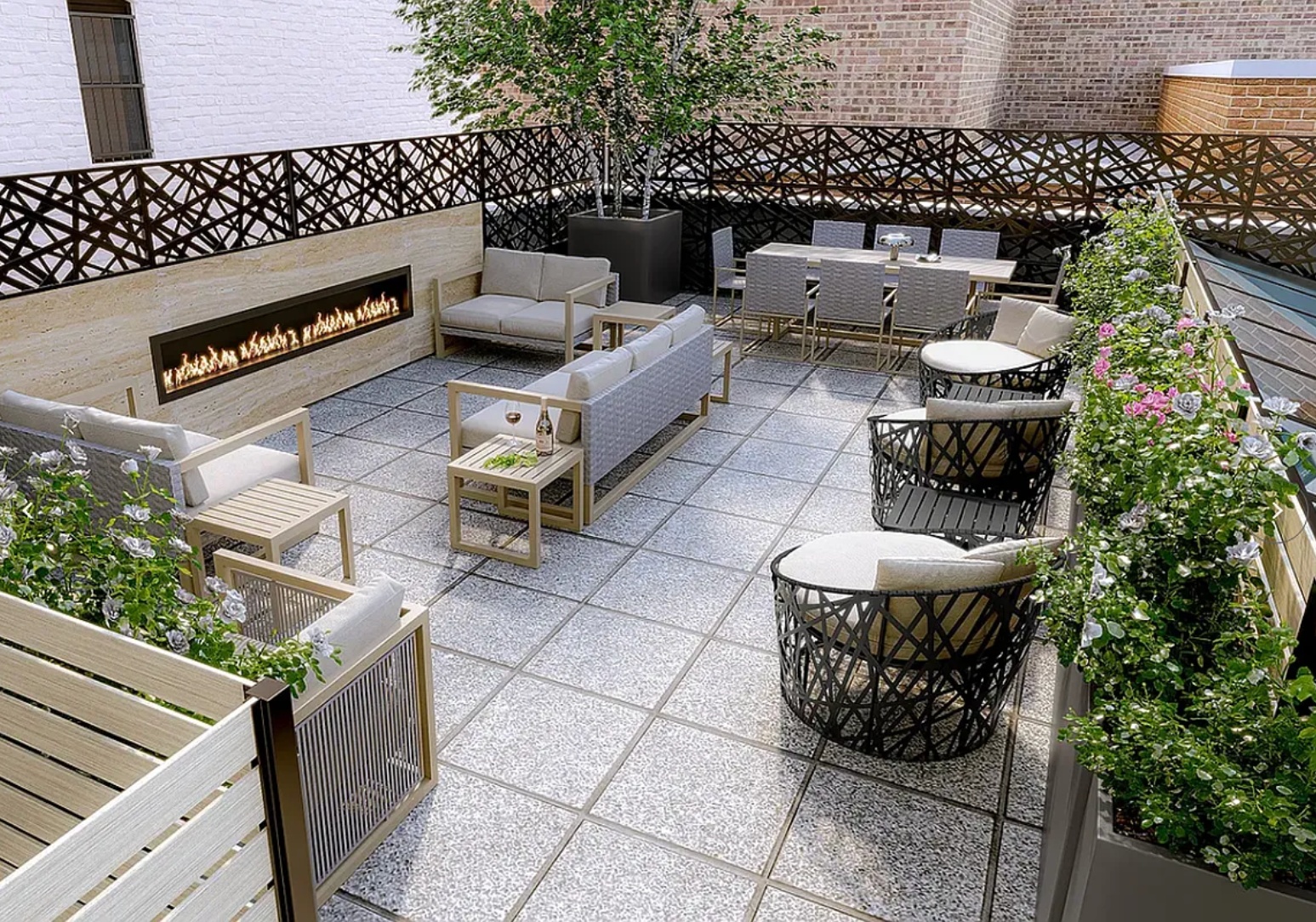 Residents of Huxley enjoy boutique amenities including a part-time attended lobby, fitness lounge, landscaped garden with outdoor fireplace, and a rooftop terrace with BBQ and sweeping open views.