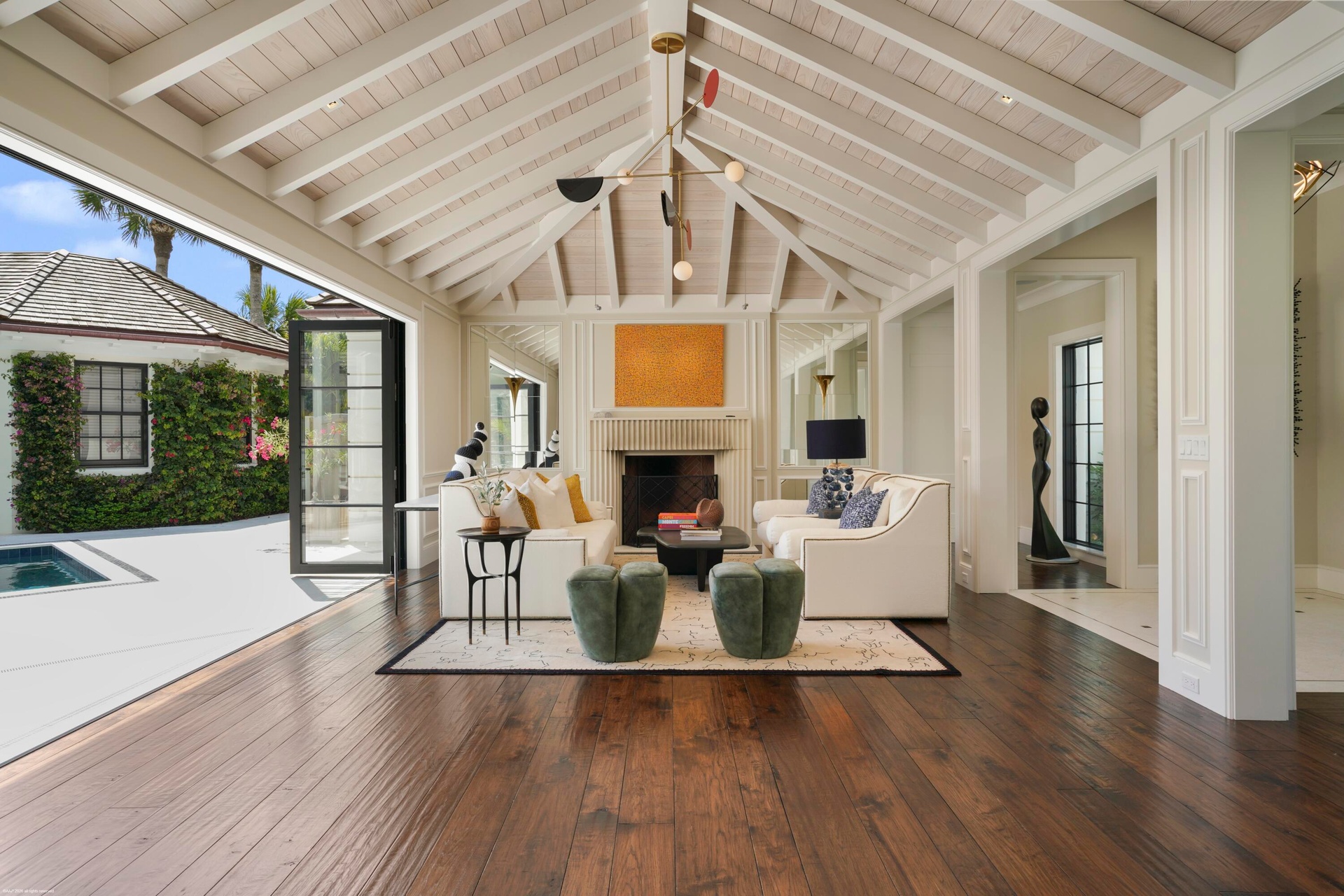Move right into this beautiful home! Situated in the exclusive enclave of Jupiter Island, 55 Links Road presents a rare opportunity to own a renovated (2024) residence with golf course views. Set on .48 acres, the property features a 2-bedroom, 2.1-bath main home with light-filled interiors and well-proportioned living spaces designed for effortless entertaining. A separate 2-bedroom guest house offers ideal accommodations for visitors. Surrounded by lush tropical landscaping, this private retreat is just moments from pristine beaches and the Intracoastal. Property has designated beach access. A refined offering capturing the essence of Jupiter Island living.