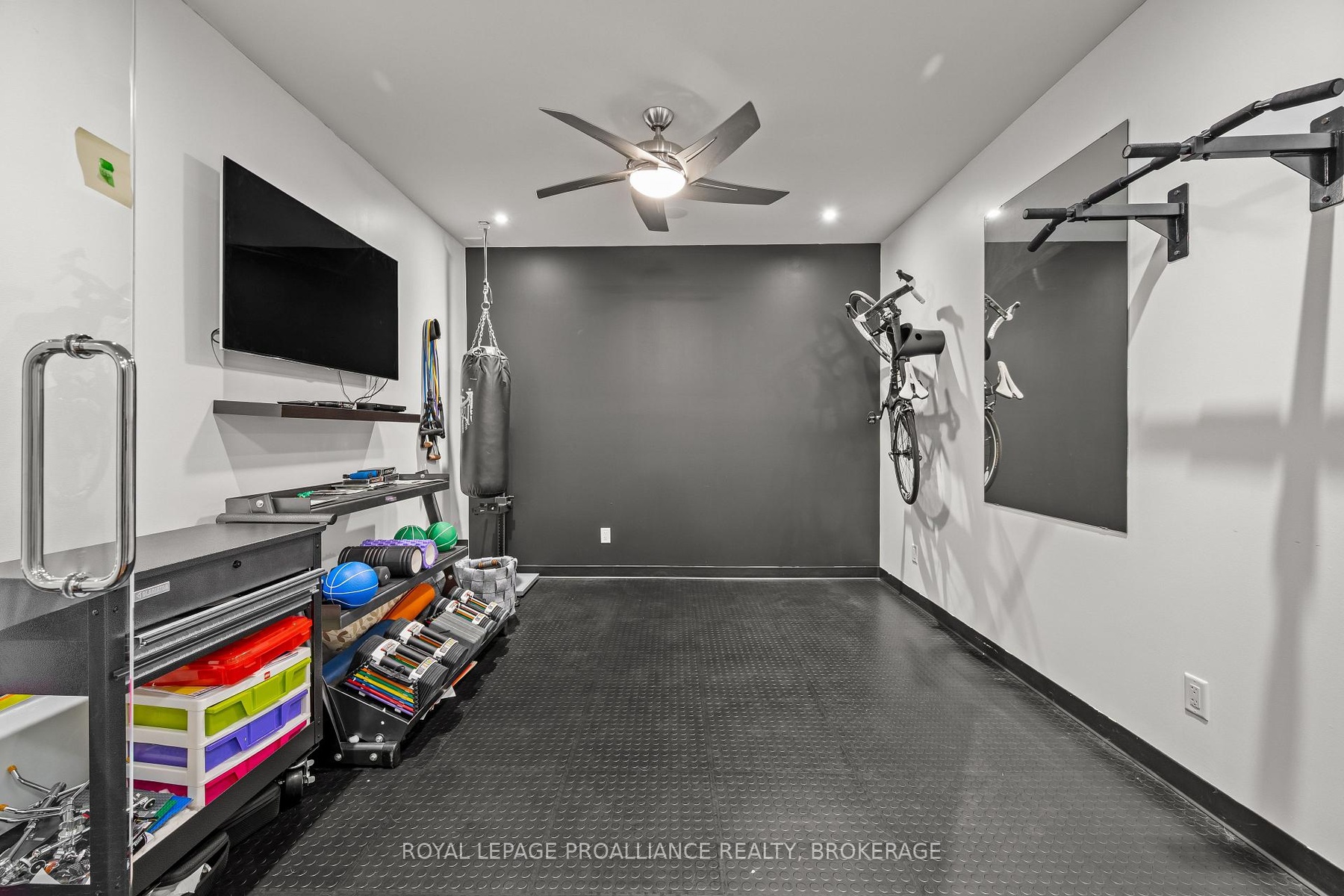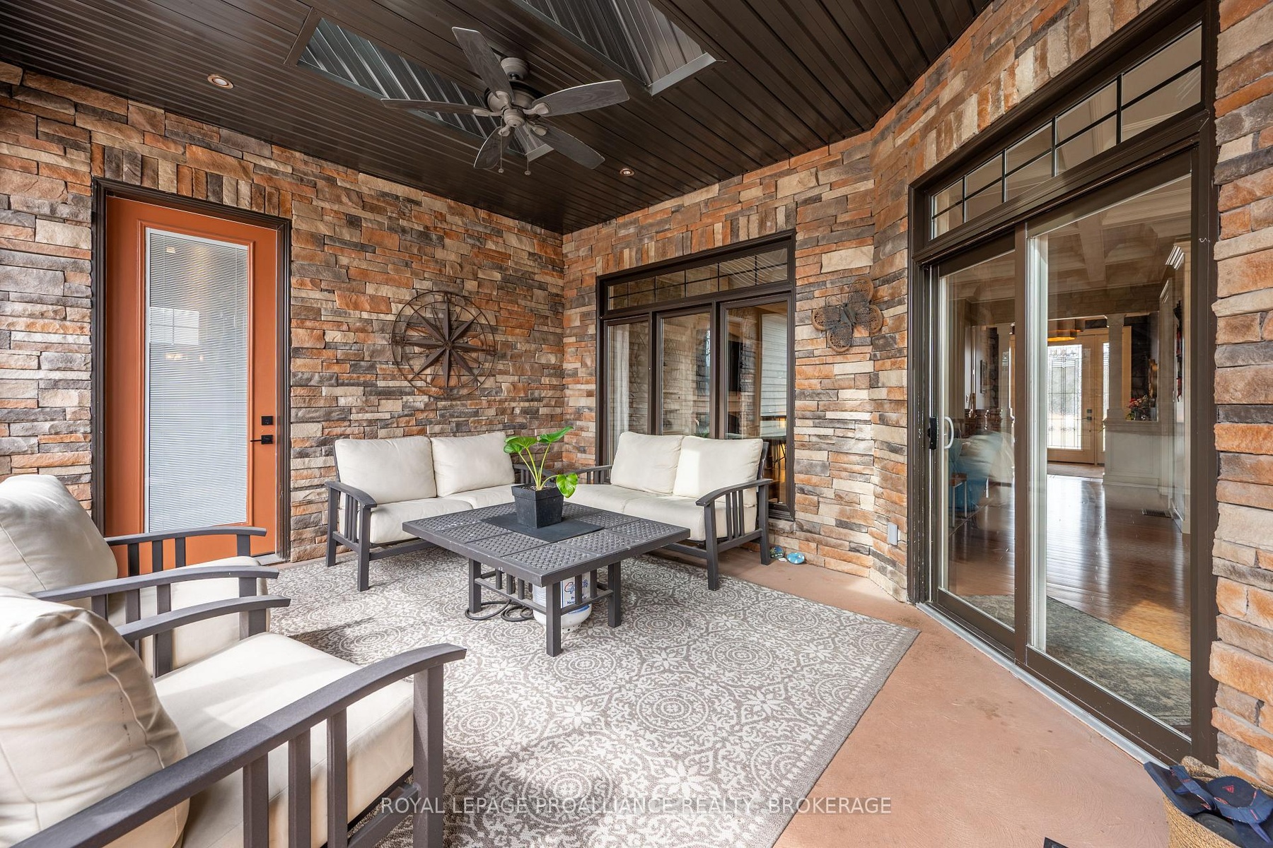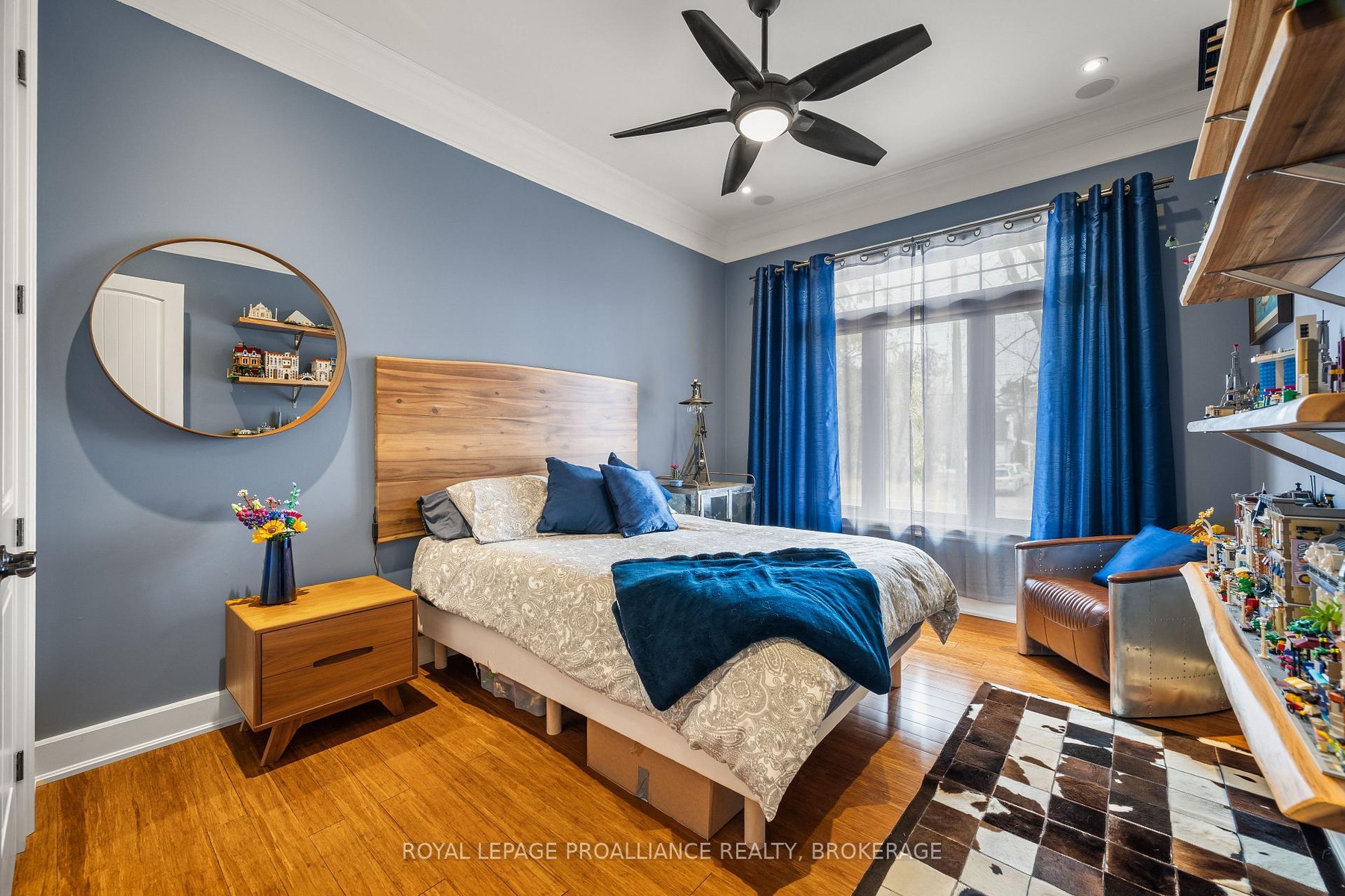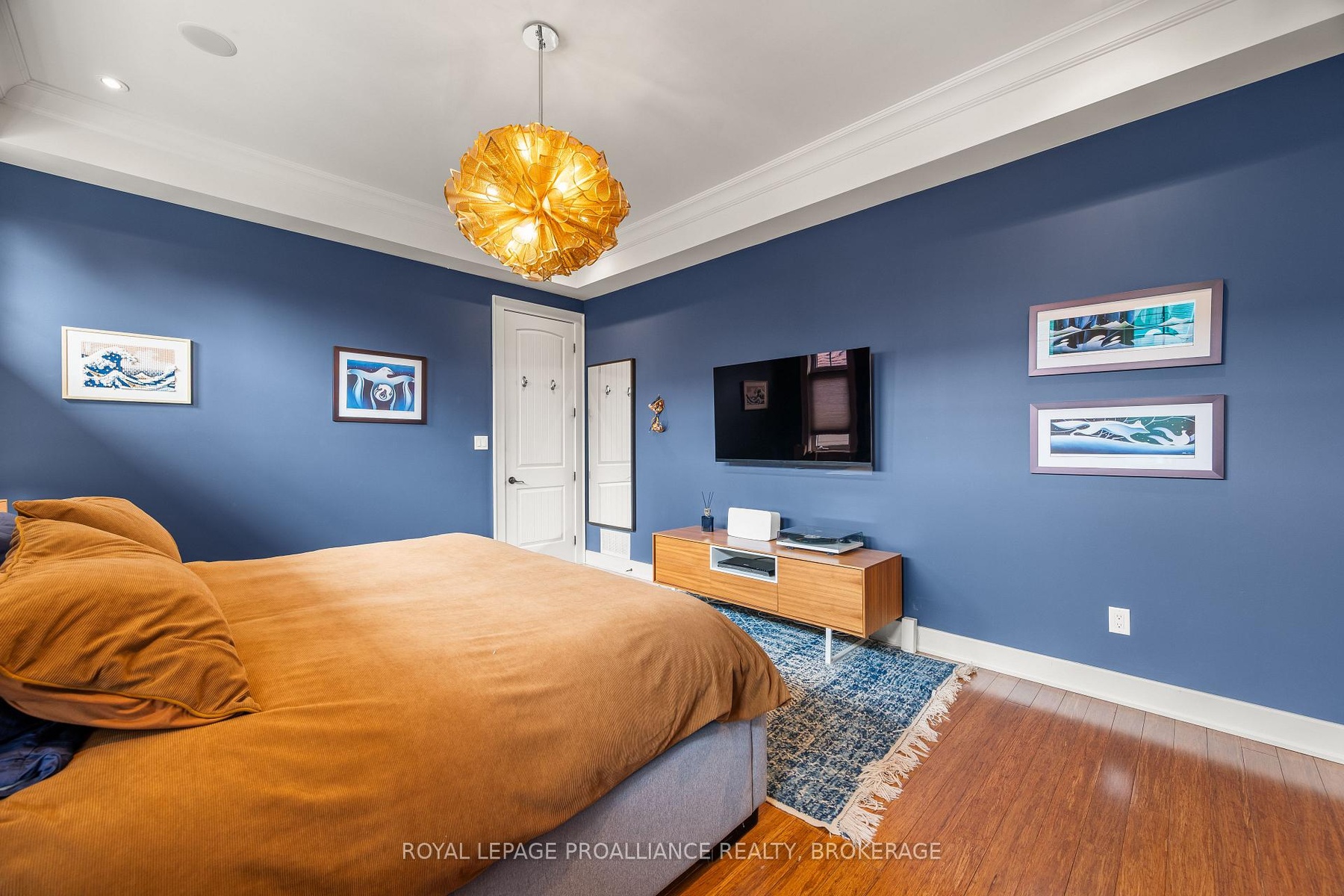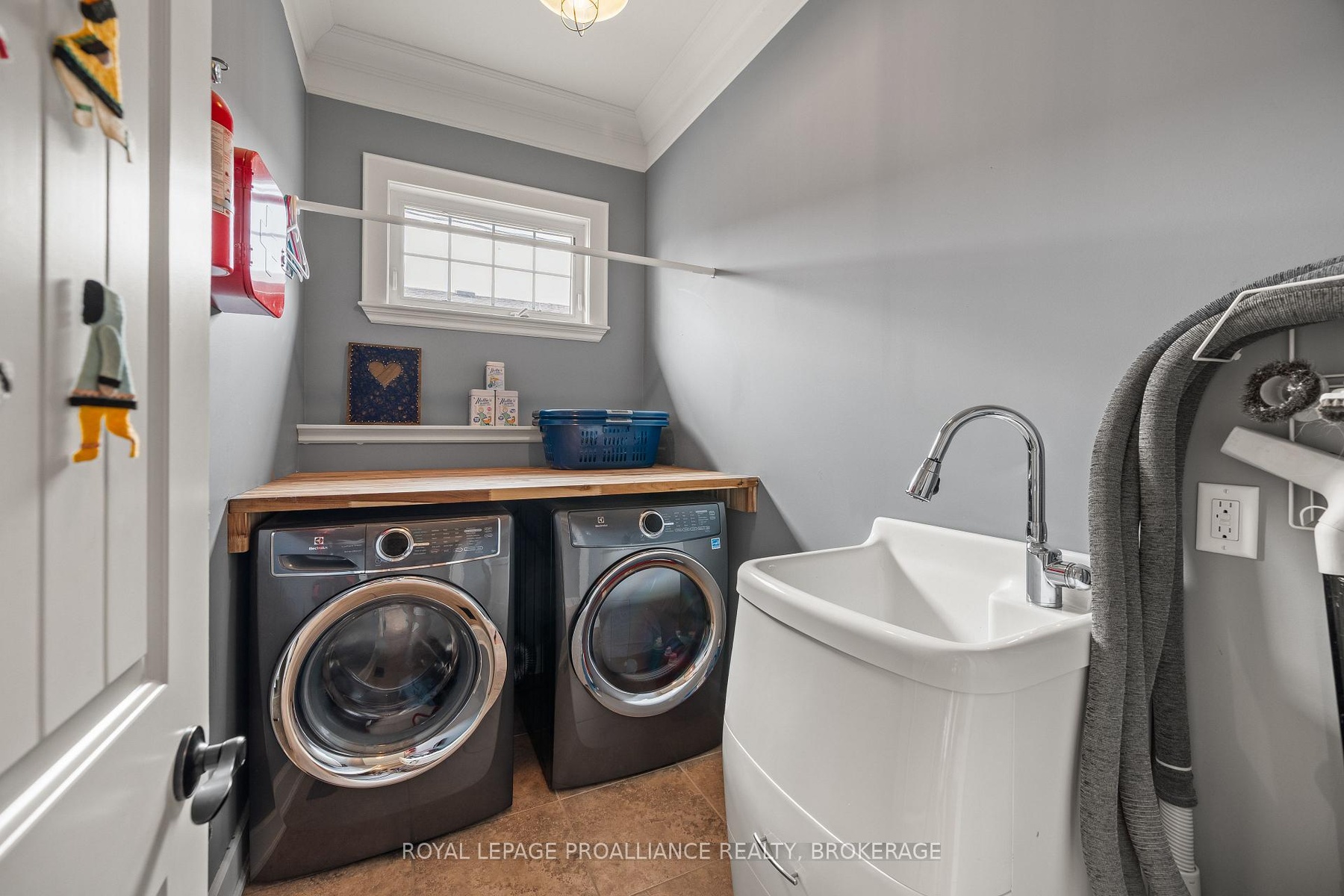 Executive custom-built elevated bungalow in the highly sought-after Westwoods neighbourhood, known for its excellent school district & established surroundings. This meticulously maintained home showcases jaw-dropping finishes throughout, including coffered ceilings, wainscotting, crown moulding, soaring ceilings, custom built-in detailed trimwork, & upgraded light fixtures throughout. The heart of the home is a stunning chef's kitchen featuring a massive granite island with breakfast bar, premium appliances (Thermador gas stove, Jennair built-in oven) & eat-in area, seamlessly flowing into a spacious & elegant living area with a gas fireplace. A stunning Lanai with skylights & multiple access points offers the perfect place to unwind, while built-in ceiling speakers on both levels of the home elevate everyday living & entertaining. The primary suite is a retreat of its own host to a massive walk-in closet with built-ins, & spa-like ensuite. The main floor is finished off with 2 additional generously sized bedrooms, a full bathroom, a main floor laundry room & a 2pc powder room. The fully finished basement adds incredible versatility with 3 additional bedrooms, a full bathroom, a dry sauna, custom gym, & a wet bar within the spacious recreation area. The backyard is a private oasis, complete with an inground heated saltwater pool & hot tub (2021), while the front yard benefits from an inground irrigation system. Car enthusiasts & hobbyists will appreciate the monstrous custom attached garage that accommodates 3 cars (2 in tandem & 1 on the side), featuring a commercial-grade door, epoxy flooring, metal-clad walls & ceiling, storage loft, & a rear roll-up door providing direct backyard access, truly a rare & impressive space that must be seen to be appreciated. A standout offering combining craftsmanship, functionality, & lifestyle in one of Kingston's most desirable communities.