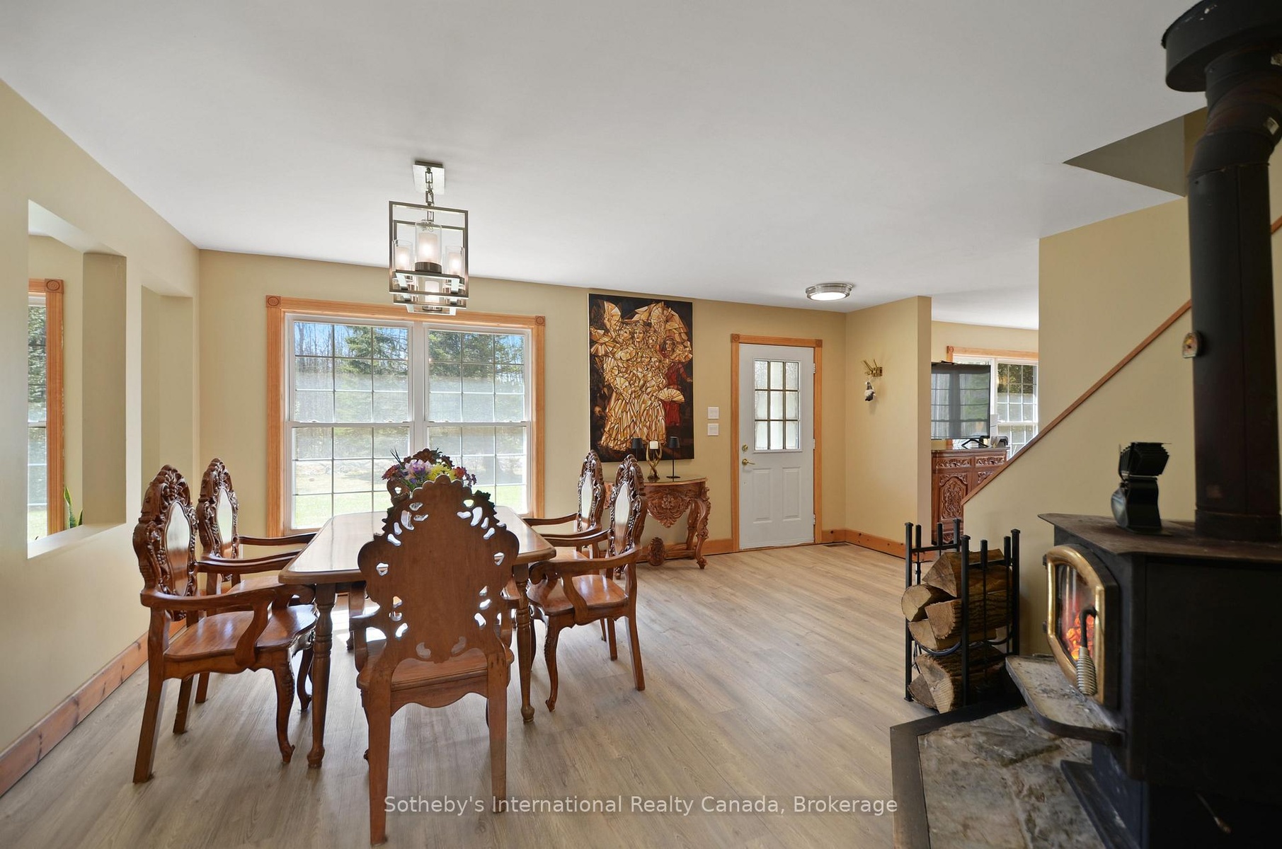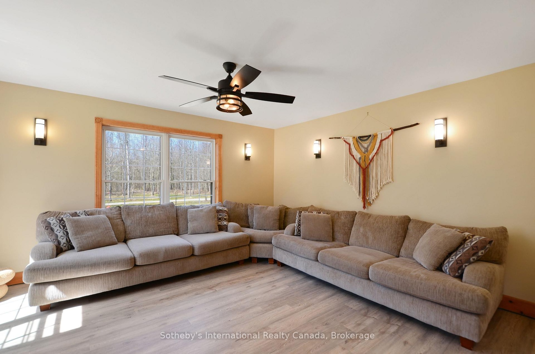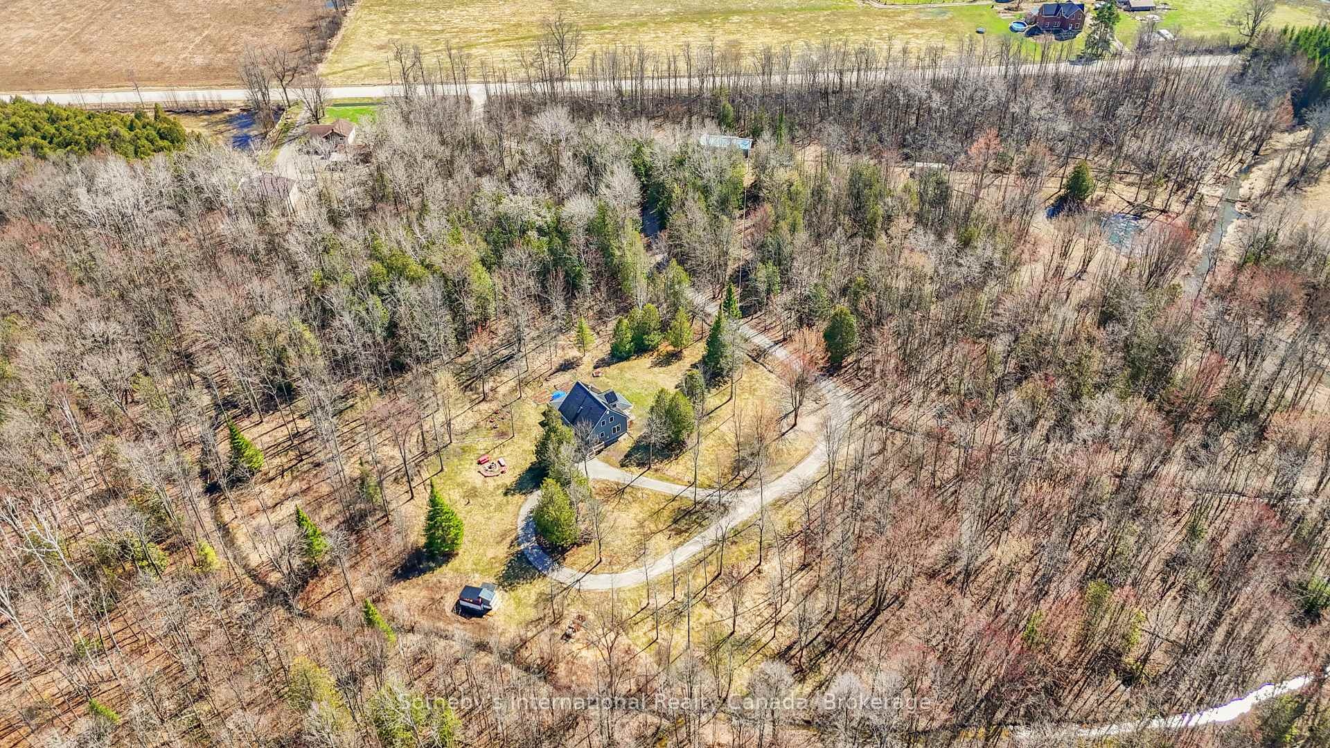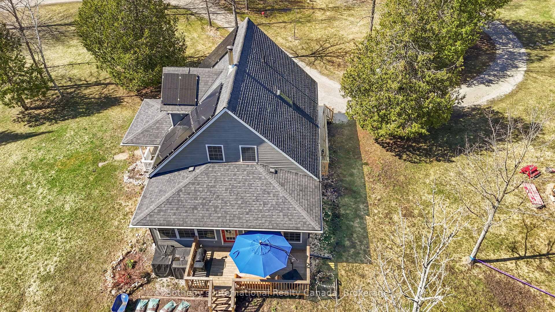 Encompassing 93 pristine acres of absolute privacy, this exceptional country estate offers a rare blend of refined living and natural splendor just minutes from the fairways of Cobble Beach and the conveniences of Owen Sound. A scenic, winding drive through a mature treed canopy leads to a meticulously renovated three-bedroom, two-bathroom residence where modern elegance meets rustic warmth. The heart of the home features a designer kitchen showcased by a stunning live-edge countertop, while the sun-soaked living areas are anchored by a cozy woodstove and offer seamless access to an expansive deck through convenient walk-outs. Additional versatility is found in the substantial heated outbuilding, a multi-purpose space ideal for a studio, workshop, or garage (with EV Tesla Charger), complete with a secondary room offering bunkie potential and its own walk-out. The diverse landscape is a sanctuary for the outdoor enthusiast, featuring an extensive trail network through ancient forests, approximately 18 workable acres for agricultural or equestrian pursuits, and a tranquil spring-fed pond alongside a creek that flows directly into nearby Lake. This is more than just a home; it is a sprawling nature lover's paradise designed for those seeking peace and prestige in one of the region's most sought-after locations. Recent upgrades include 22 solar panels , water heater, water softener, UV filter.