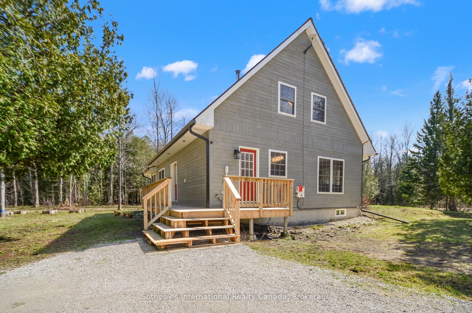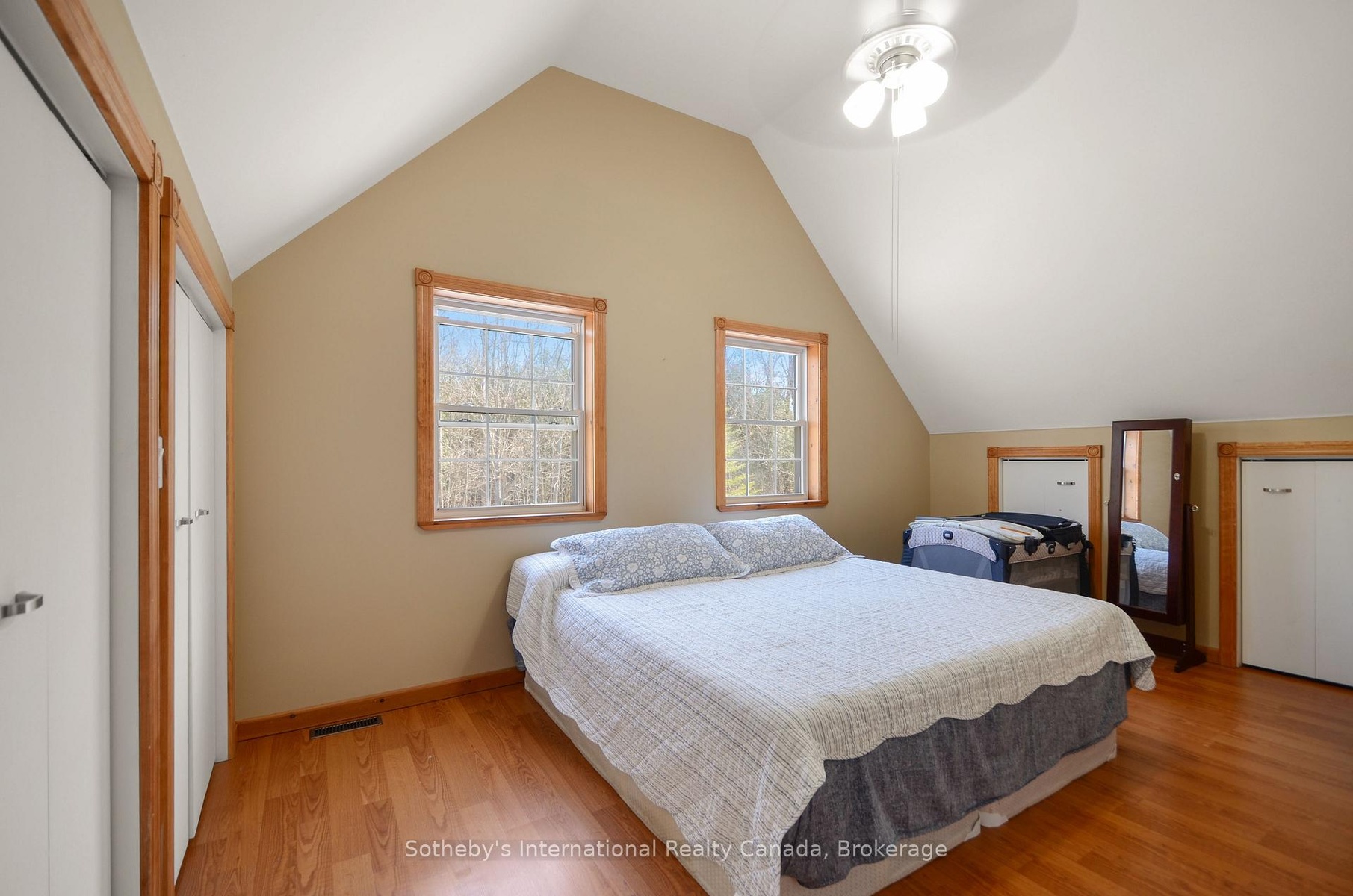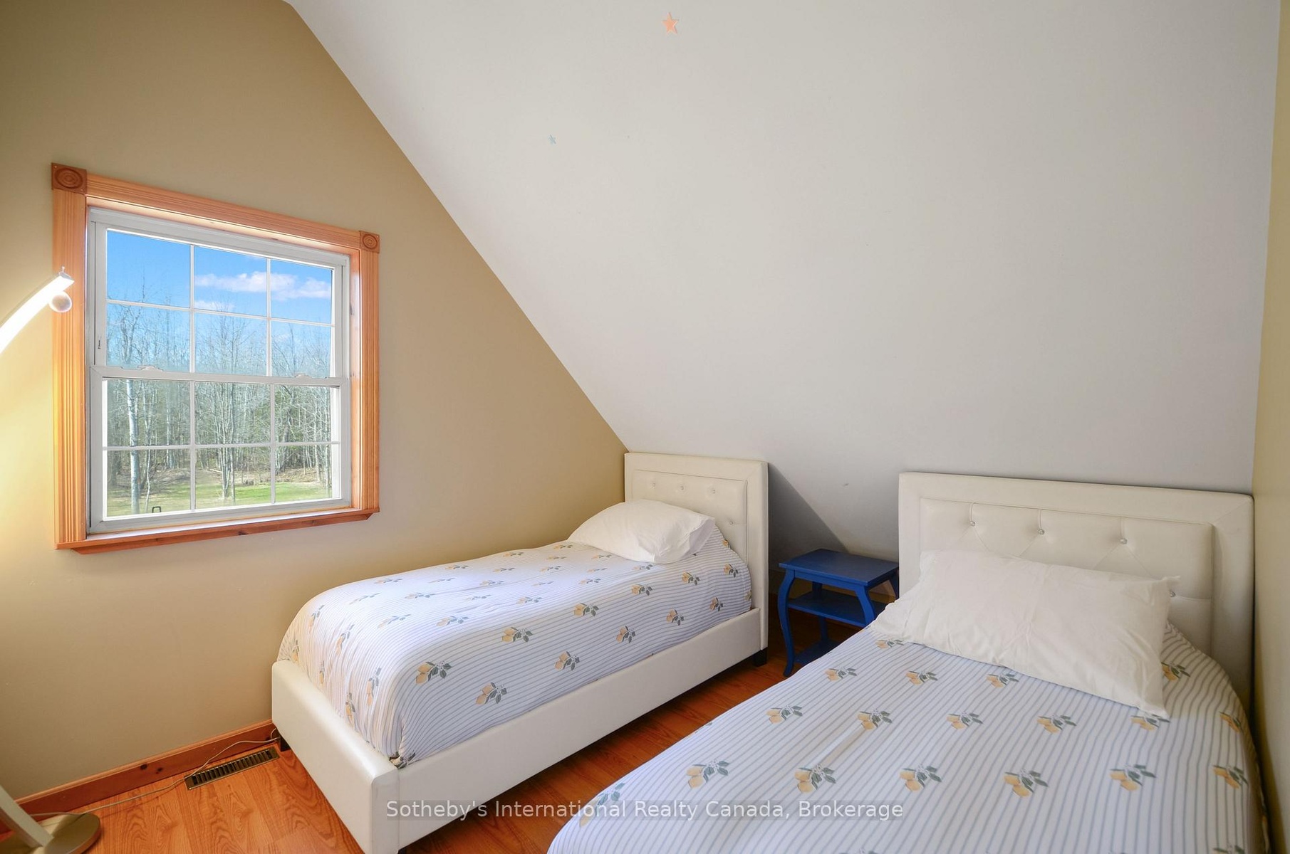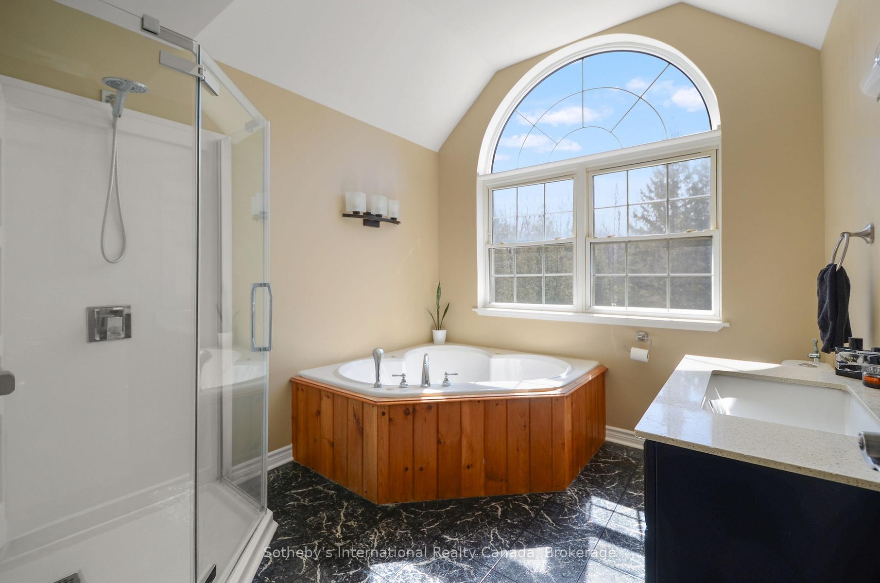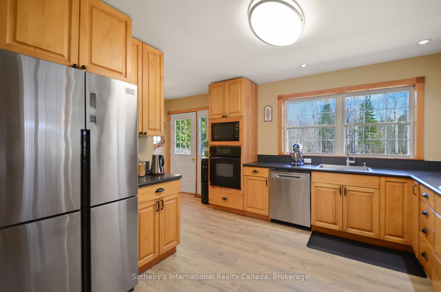 Encompassing 93 pristine acres of absolute privacy, this exceptional country estate offers a rare blend of refined living and natural splendor just minutes from the fairways of Cobble Beach and the conveniences of Owen Sound. A scenic, winding drive through a mature treed canopy leads to a meticulously renovated three-bedroom, two-bathroom residence where modern elegance meets rustic warmth. The heart of the home features a designer kitchen showcased by a stunning live-edge countertop, while the sun-soaked living areas are anchored by a cozy woodstove and offer seamless access to an expansive deck through convenient walk-outs. Additional versatility is found in the substantial heated outbuilding, a multi-purpose space ideal for a studio, workshop, or garage (with EV Tesla Charger), complete with a secondary room offering bunkie potential and its own walk-out. The diverse landscape is a sanctuary for the outdoor enthusiast, featuring an extensive trail network through ancient forests, approximately 18 workable acres for agricultural or equestrian pursuits, and a tranquil spring-fed pond alongside a creek that flows directly into nearby Lake. This is more than just a home; it is a sprawling nature lover's paradise designed for those seeking peace and prestige in one of the region's most sought-after locations. Recent upgrades include 22 solar panels , water heater, water softener, UV filter.