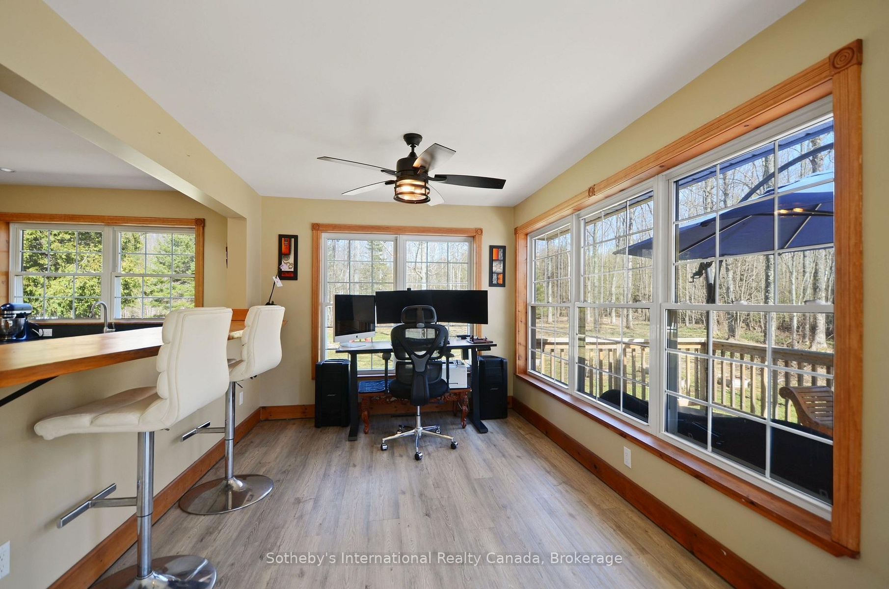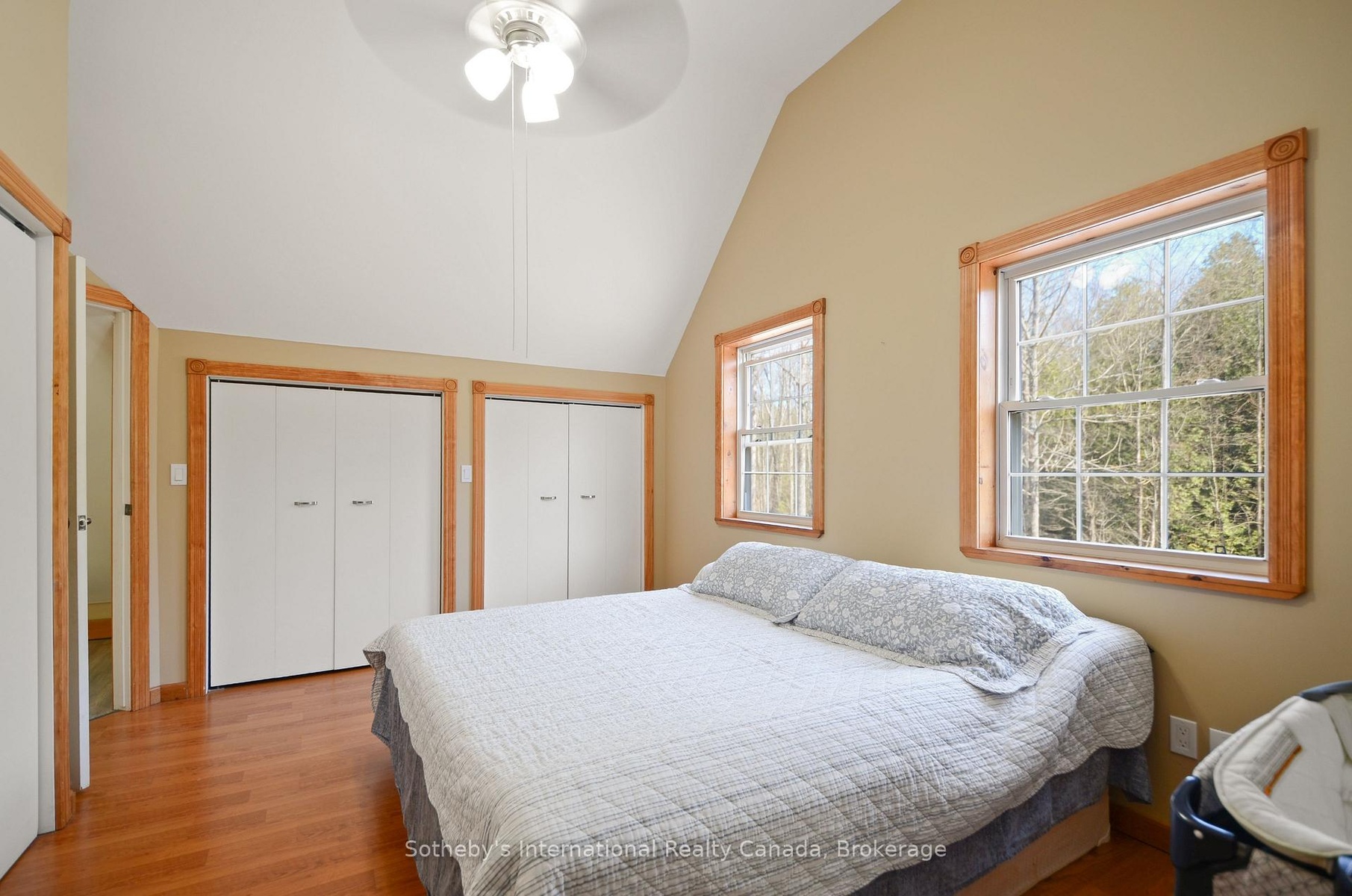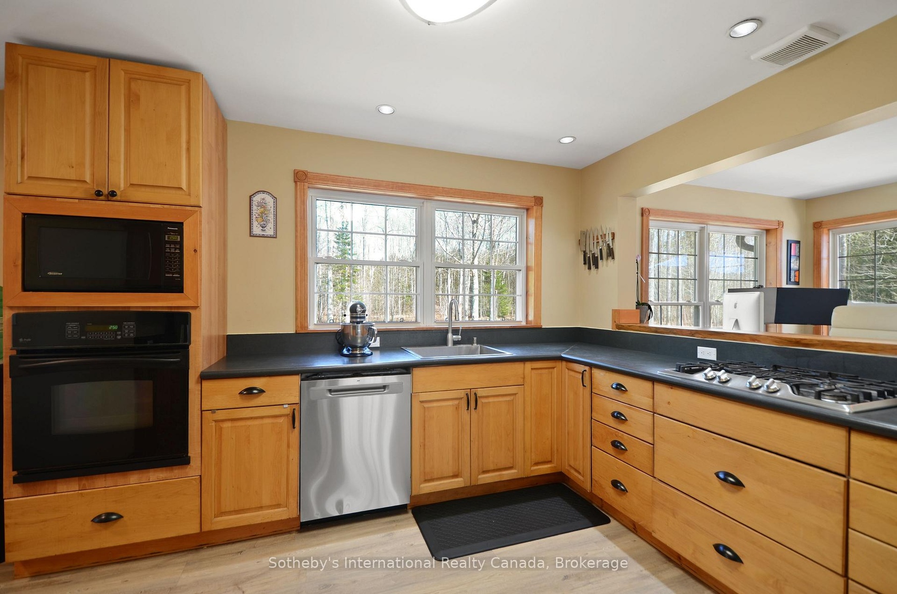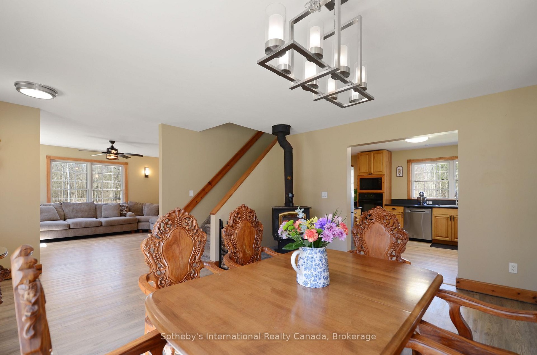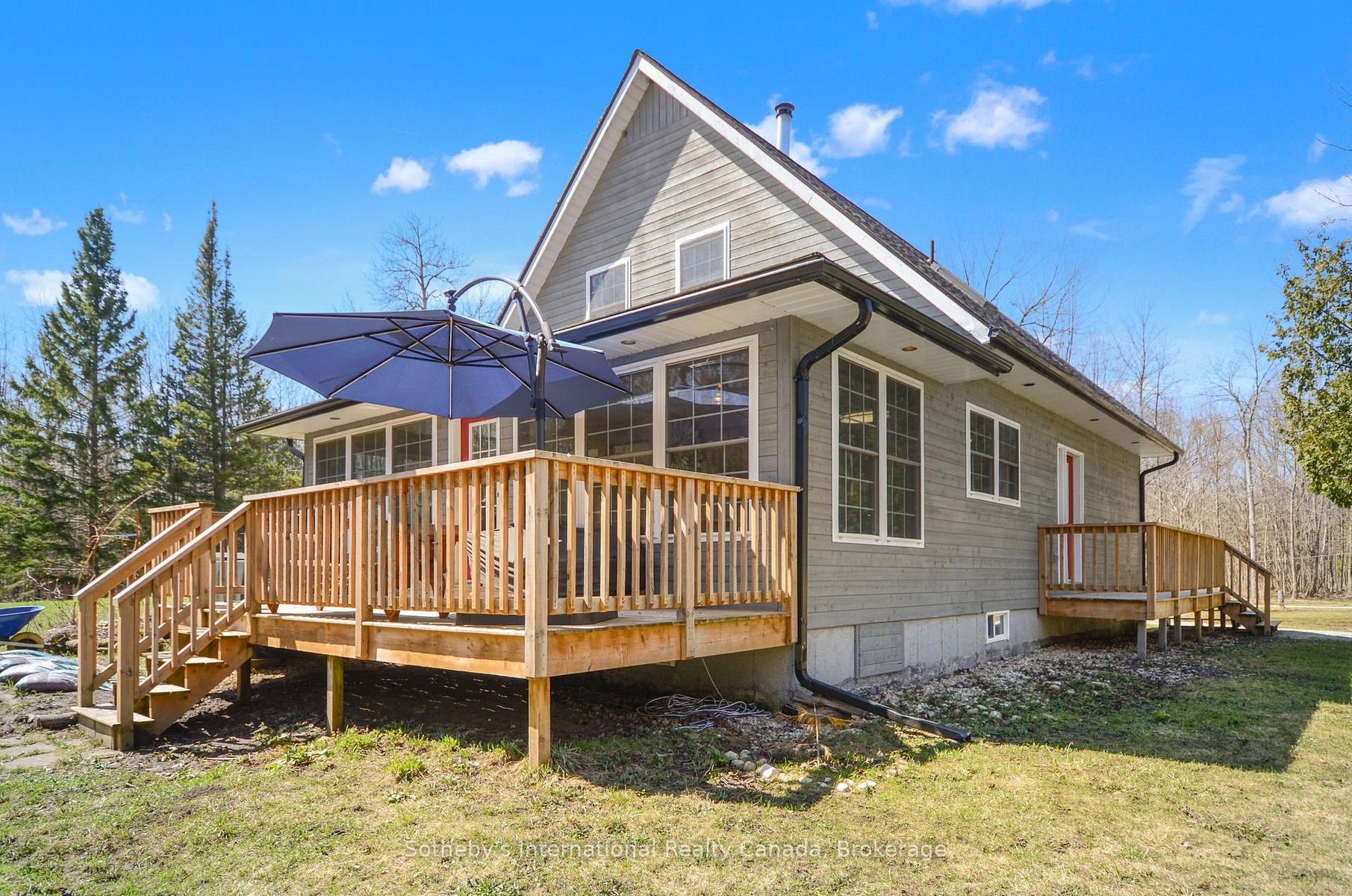 Encompassing 93 pristine acres of absolute privacy, this exceptional country estate offers a rare blend of refined living and natural splendor just minutes from the fairways of Cobble Beach and the conveniences of Owen Sound. A scenic, winding drive through a mature treed canopy leads to a meticulously renovated three-bedroom, two-bathroom residence where modern elegance meets rustic warmth. The heart of the home features a designer kitchen showcased by a stunning live-edge countertop, while the sun-soaked living areas are anchored by a cozy woodstove and offer seamless access to an expansive deck through convenient walk-outs. Additional versatility is found in the substantial heated outbuilding, a multi-purpose space ideal for a studio, workshop, or garage (with EV Tesla Charger), complete with a secondary room offering bunkie potential and its own walk-out. The diverse landscape is a sanctuary for the outdoor enthusiast, featuring an extensive trail network through ancient forests, approximately 18 workable acres for agricultural or equestrian pursuits, and a tranquil spring-fed pond alongside a creek that flows directly into nearby Lake. This is more than just a home; it is a sprawling nature lover's paradise designed for those seeking peace and prestige in one of the region's most sought-after locations. Recent upgrades include 22 solar panels , water heater, water softener, UV filter.