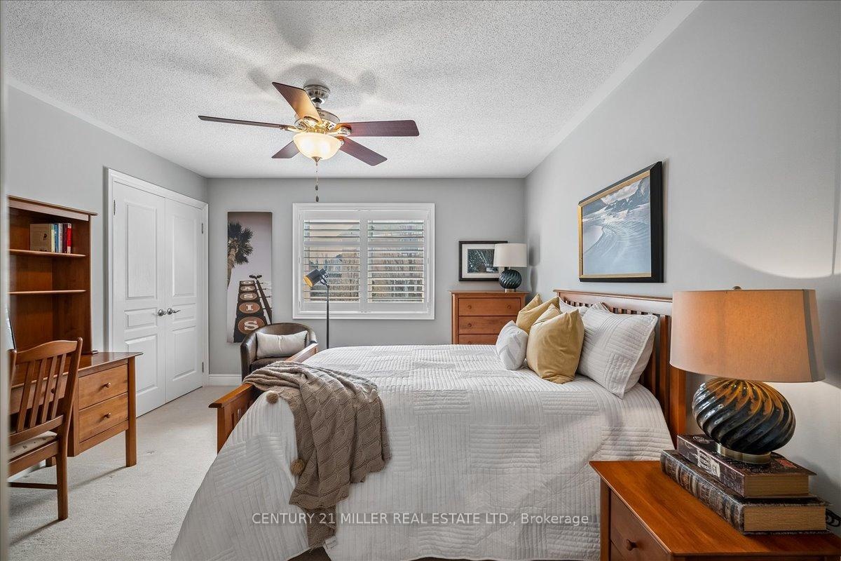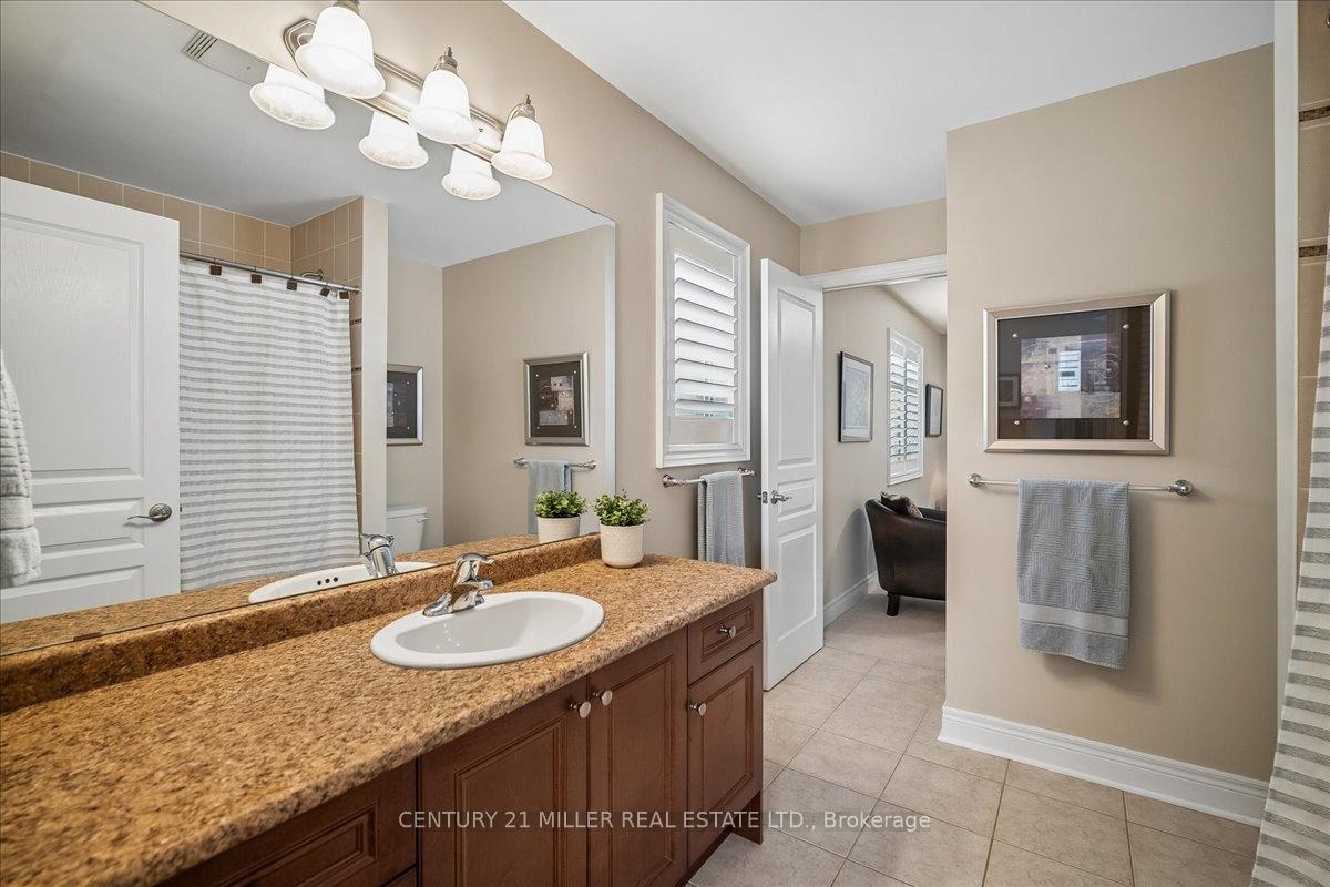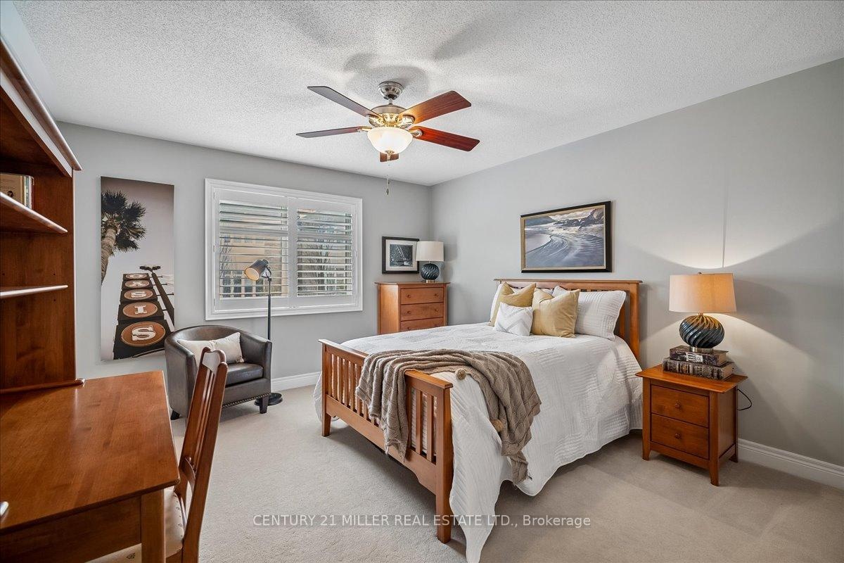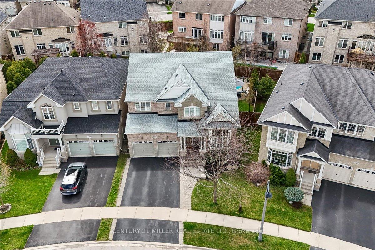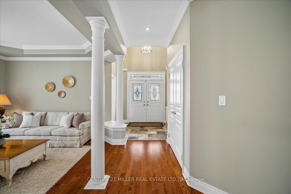Welcome to this well-maintained home in Oakville's sought-after Bronte Creek community, set on a quiet, family-friendly street surrounded by parks and trails. Situated on a premium pie-shaped lot, approximately 70 ft across the rear, the property offers a private backyard setting with a saltwater pool, stone patio, and mature landscaping-ideal for relaxing or entertaining. The main level offers a functional layout with an open-to-above foyer, hardwood flooring throughout the main living areas, crown moulding, and upgraded light fixtures. The bright living and dining room showcases coffered ceilings, while the family room with gas fireplace and pot lights opens to the eat-in kitchen. The kitchen features stainless steel appliances, granite counters, centre island with breakfast bar, tile flooring, backsplash, extended cabinetry with crown and valance lighting, and a sun-filled breakfast area with walk-out to the backyard. A main floor office, laundry with garage access, and powder room complete the level Upstairs features four spacious bedrooms, including a primary retreat with walk-in closet, double-sided fireplace, crown moulding, and a 5-piece ensuite with double sinks, soaker tub, and glass shower. A second bedroom includes its own 4-piece ensuite, while the remaining two bedrooms are served by a 4-piece main bath. Additional highlights include a double car garage with inside entry and double driveway, central vacuum, closet organizers throughout, roof (2018), furnace (2023), and pool pump (2025). Conveniently located within walking distance to top-rated schools, parks, and everyday amenities, and just minutes to Bronte GO Station, Oakville Trafalgar Hospital, the QEW, and Hwy 407.