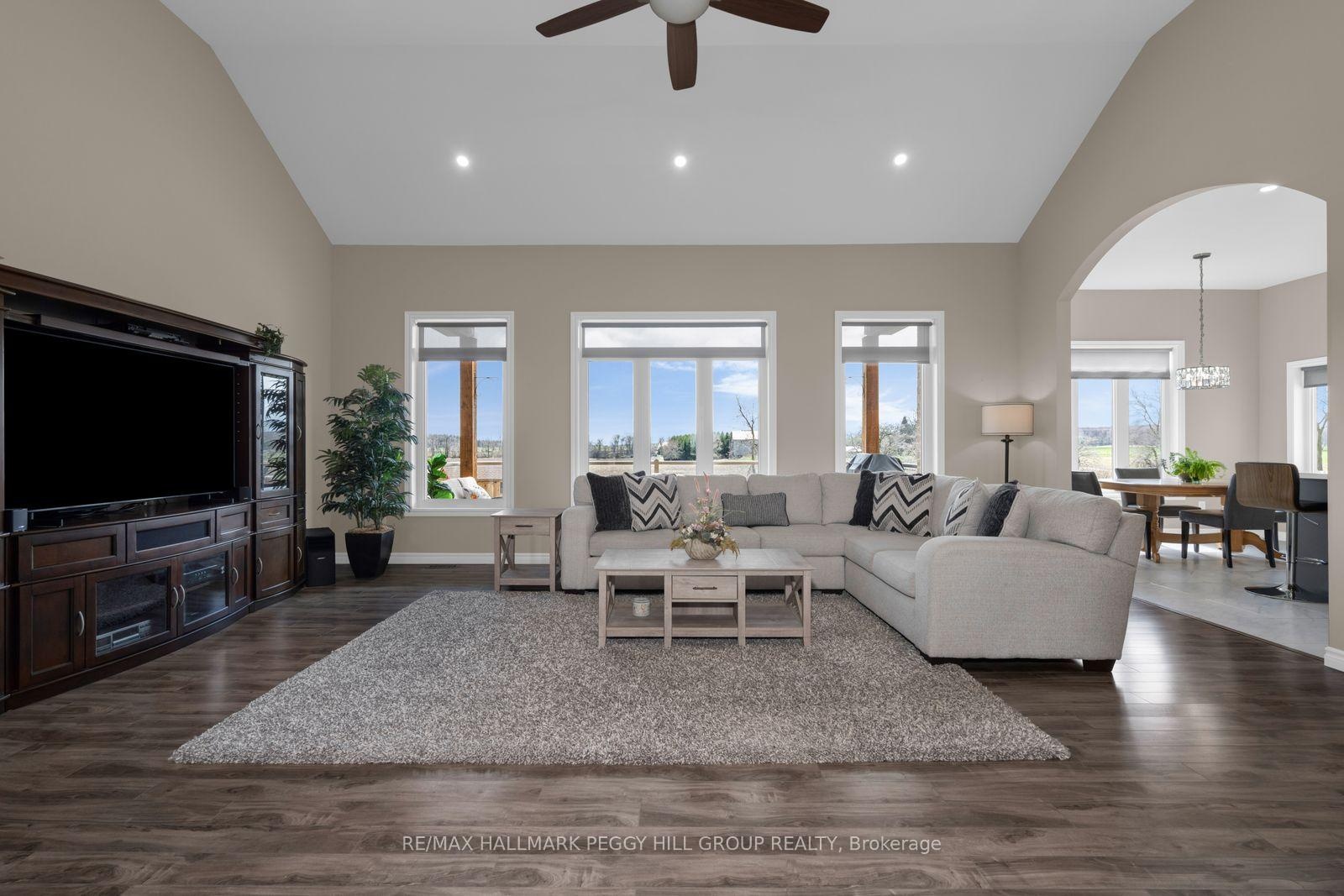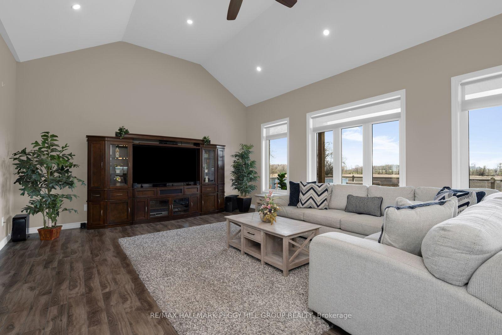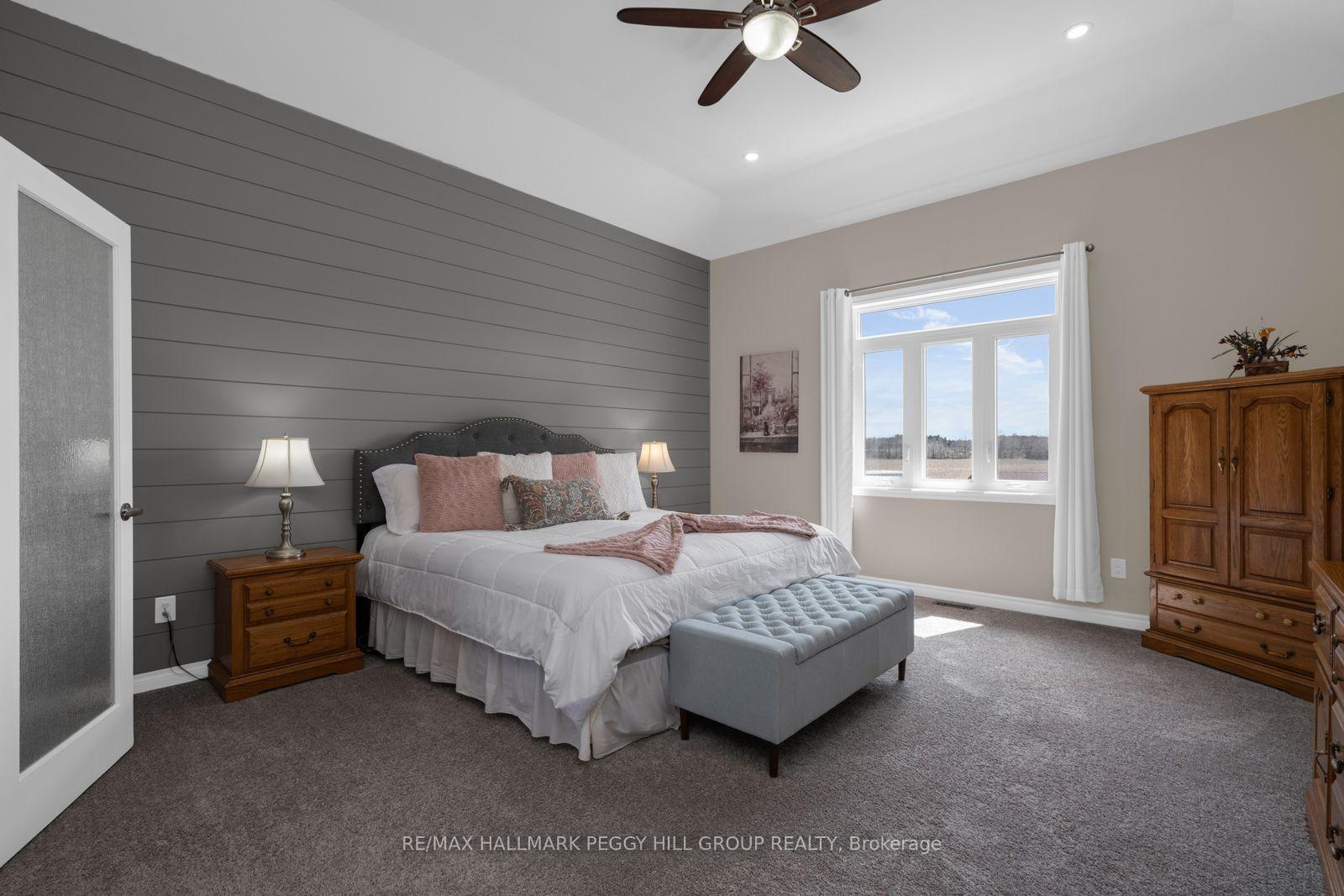 GORGEOUS COUNTRY ESTATE HOME ON NEARLY 19 ACRES WITH 3,300+ SQ FT PLUS AN UNSPOILED WALKOUT BASEMENT, AN ATTACHED DOUBLE CAR GARAGE, A 30 X 40 SHOP, & 15 FARMED ACRES! Possibilities are endless whether it be for hobby farm enthusiasts or those that like their privacy. The journey begins down a sweeping paved drive to a stone and brick bungalow with layered rooflines, timber detailing, an 8 ft front door, an attached garage with 10 ft ceilings, and a 30 x 40 detached shop (2023) with 14 ft ceilings, 200-amp service, and 9 ft x 8 ft doors. More than 3,300 finished square feet unfold across a main level with 10 ft ceilings, a grand foyer with double closets, a formal dining room with tray ceiling detail, and a great room crowned by a 14 ft vaulted ceiling. The culinary space is a triumph of design, centred around an oversized quartz-topped island and finished with white cabinetry topped with crown moulding, pot lights, under-cabinet lighting, black stainless steel appliances, including a gas stove set against a feature tile backdrop, while the breakfast area opens to a covered deck with glass railings and views across the expansive property. The primary suite is generously scaled with a tray ceiling, a walk-in closet plus an additional closet, and a 5-piece ensuite with heated floors, a double vanity, a large glass-walled shower with a bench, and a freestanding tub, while two additional bedrooms are served by a second 5-piece bathroom. Main floor laundry offers garage access, excellent storage, and easy access to the powder room. An upper-level rec room with vaulted ceilings extends the living space, while the partially finished walkout basement already includes a finished 3-piece bathroom, covered patio access, and in-law potential. With approximately 15 acres of farmable land, this is not just a custom bungalow on nearly 19 acres; it is where sophisticated design, substantial utility, and a more elevated standard of living meet.