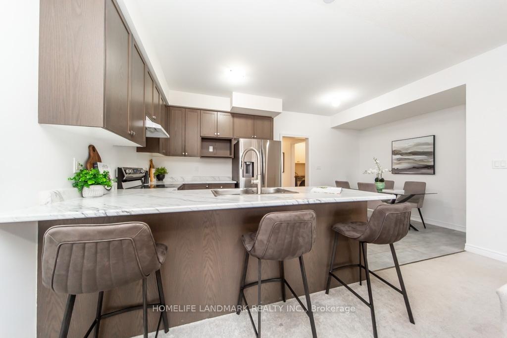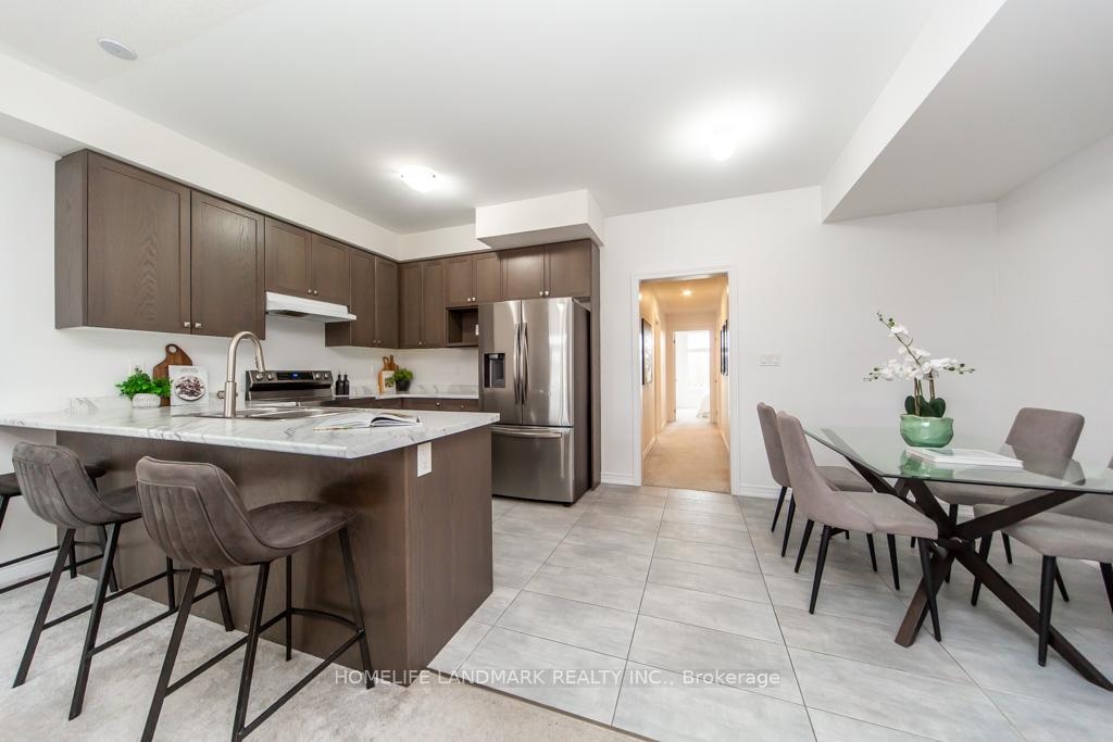 Stunning 4-year-new (2022-built) live-work townhouse in a family-friendly Pickering neighbourhood, featuring a rare ground-floor commercial unit. Offering a total of 2,092 sq. ft., including 1,374 sq. ft. of residential space and 718 sq. ft. of commercial area. Zoned MCC, providing excellent flexibility for a wide range of permitted commercial uses.The residential portion features a separate private entrance and is located on the second level. Bright and open-concept layout with combined living and dining areas and a walkout to a large balcony. Includes an eat-in kitchen, convenient laundry room, 3 spacious bedrooms, a 3-piece ensuite, and a 3-piece main bath. Features include 9-ft ceilings, fireplace, and a combination of broadloom and ceramic/porcelain flooring. The primary and second bedrooms overlook a tranquil ravine.The ground-floor commercial unit offers excellent exposure and visibility and is currently leased to a spa, generating steady rental income. The space includes a powder room and is ideal for retail, office, or medical use.Conveniently located near Hwy 401 & 407, GO Station, public transit, schools, parks, and shopping. Bonus: owned hot water tank-no rental fees.
