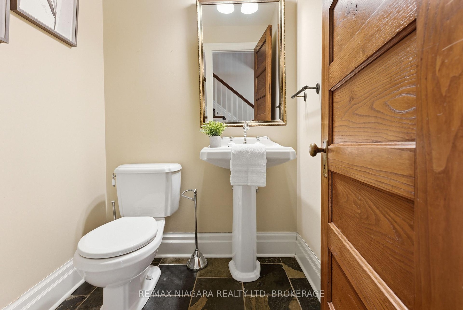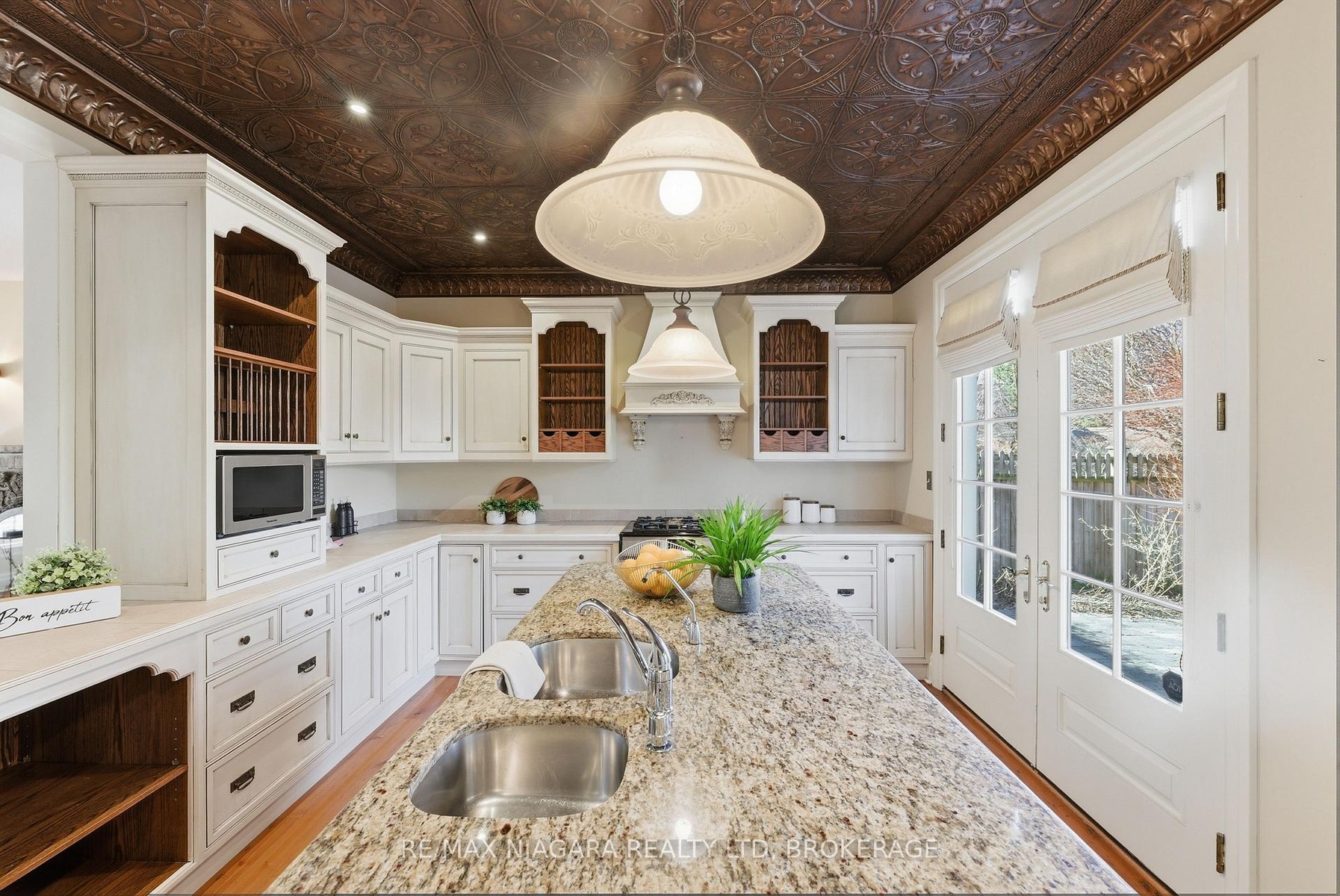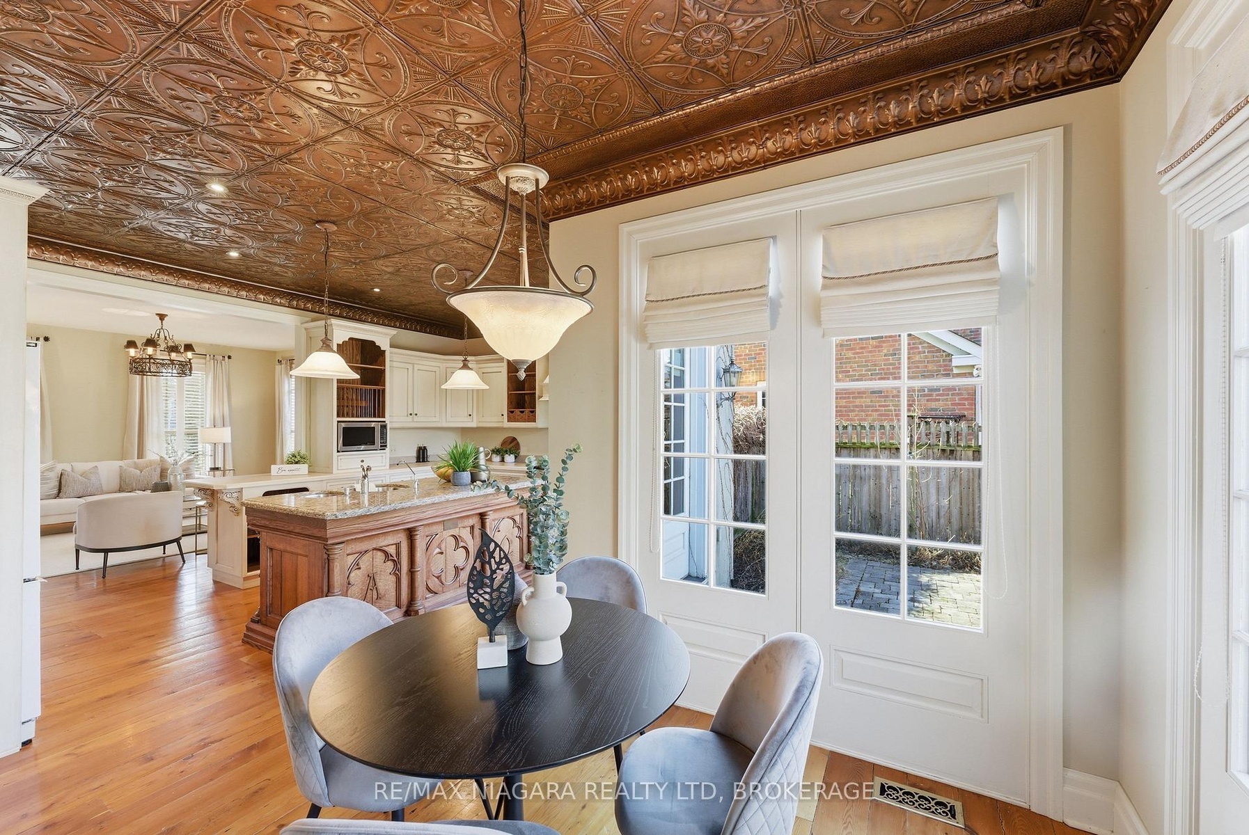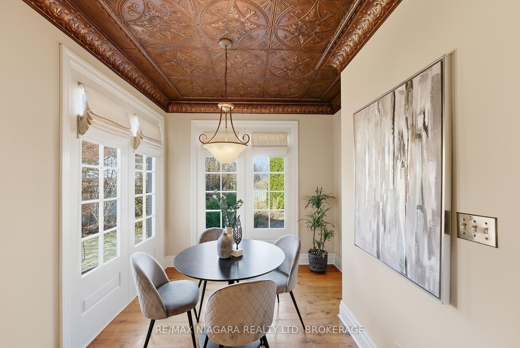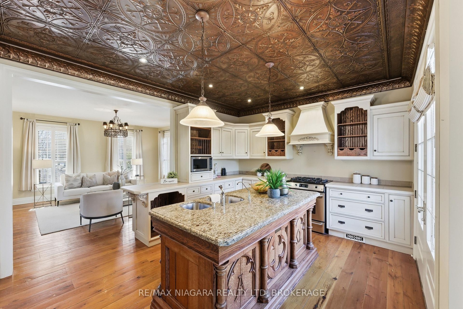 Nestled on a quiet street in the heart of Niagara-on-the-Lake, this stunning 4-bedroom, 3-bath residence offers approximately 2,925 sq. ft. of thoughtfully designed living space, blending timeless character with luxurious finishes. A gorgeous stone wraparound porch welcomes you home.Step inside to a grand foyer featuring an extra-wide staircase and elegant wall sconces. The main floor showcases wide-plank hemlock wood flooring, creating warmth and character. The living room is highlighted by a stone wood-burning fireplace and walkout access to the wraparound porch. The large eat-in dining room offers plenty of room for family gatherings and dinner parties, with additional doors leading directly to the porch. At the heart of the home lies the kitchen. A copper ceiling in the kitchen and breakfast nook creates a dramatic focal point. The breakfast area opens directly onto a stone patio and backyard. Completing the main floor is a convenient 2-piece bath and a versatile bonus room-ideal as a home office, craft room, or potential 5th bedroom. Upstairs, you'll find four generously sized bedrooms, offering large windows and ample closet space. The primary suite serves as a private retreat, featuring a spa-inspired 4-piece ensuite complete with a built-in vanity, soaker tub, and stand-up shower. An additional 4-piece bath provides convenience for family and guests.The finished basement expands the living space with a large recreation room anchored by a second stone fireplace. There is also plenty of additional storage space.Outside, the spacious backyard offers endless possibilities for entertaining, play, or relaxation, with abundant garden space for gardening enthusiasts. A double-wide attached garage and ample driveway. Located in an exceptional Niagara-on-the-Lake location, this home combines luxury, character, and tranquility, all while being close to the town's renowned wineries, dining, and charming amenities.