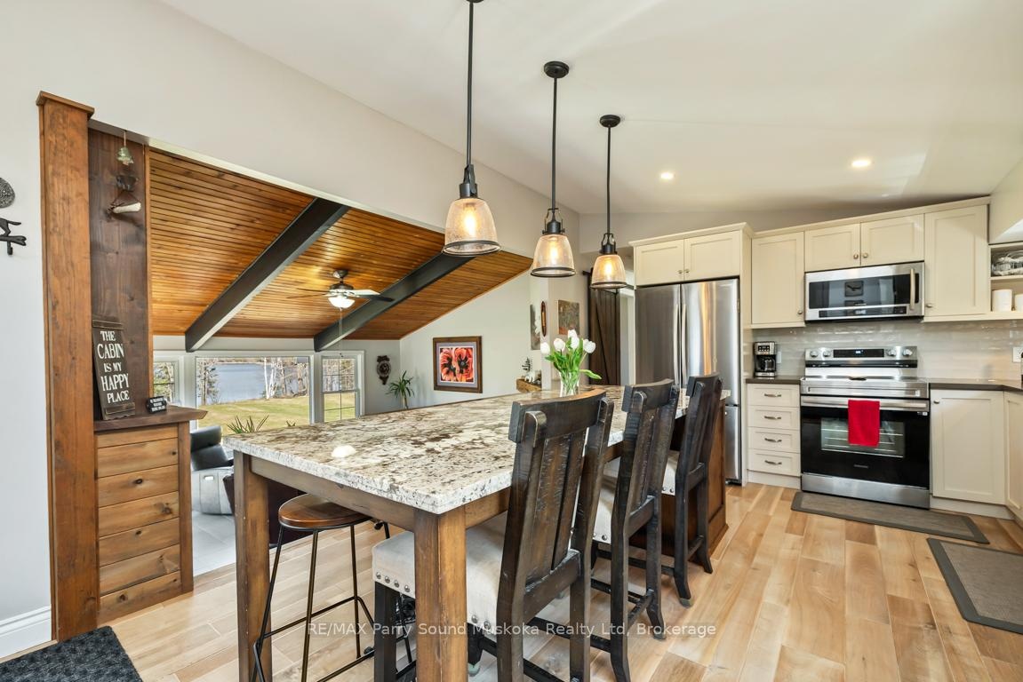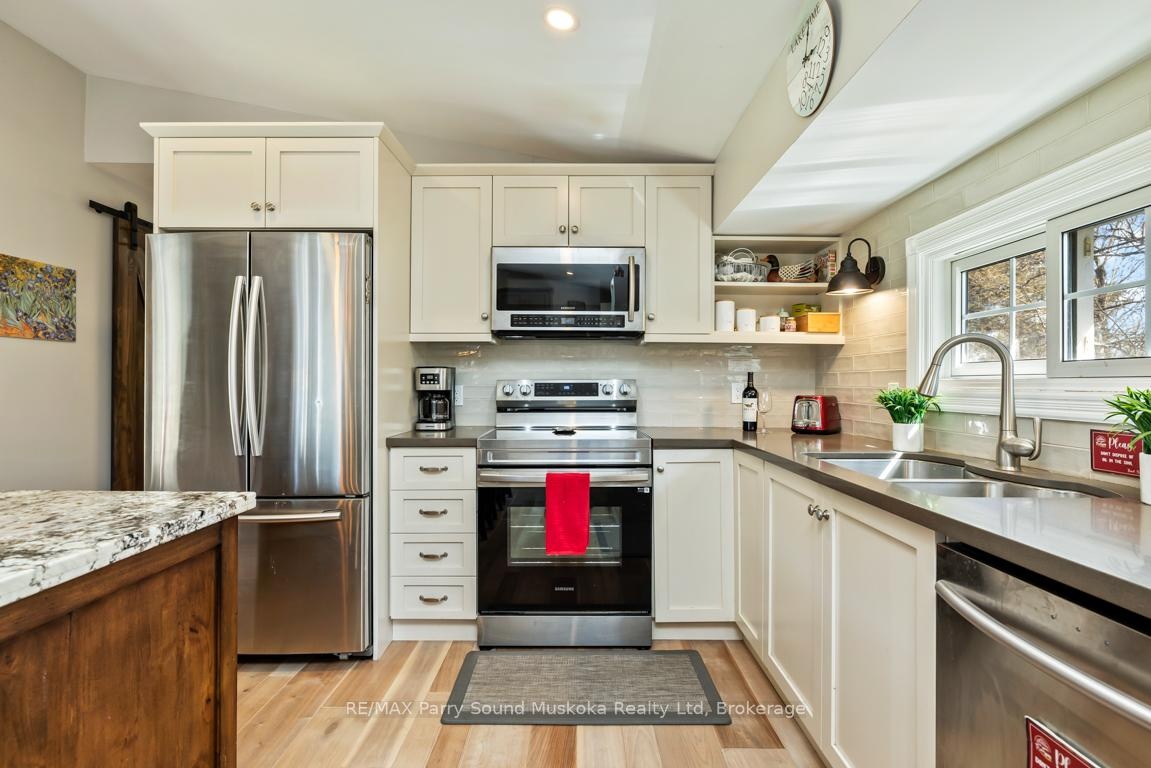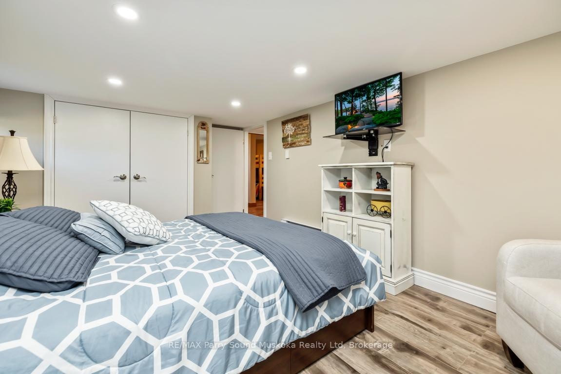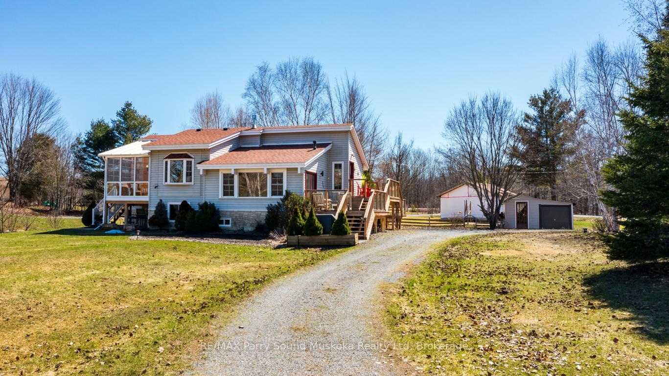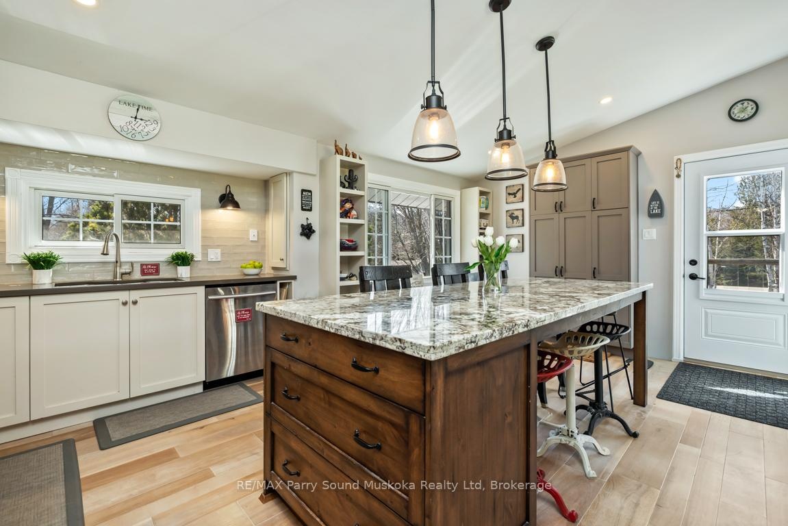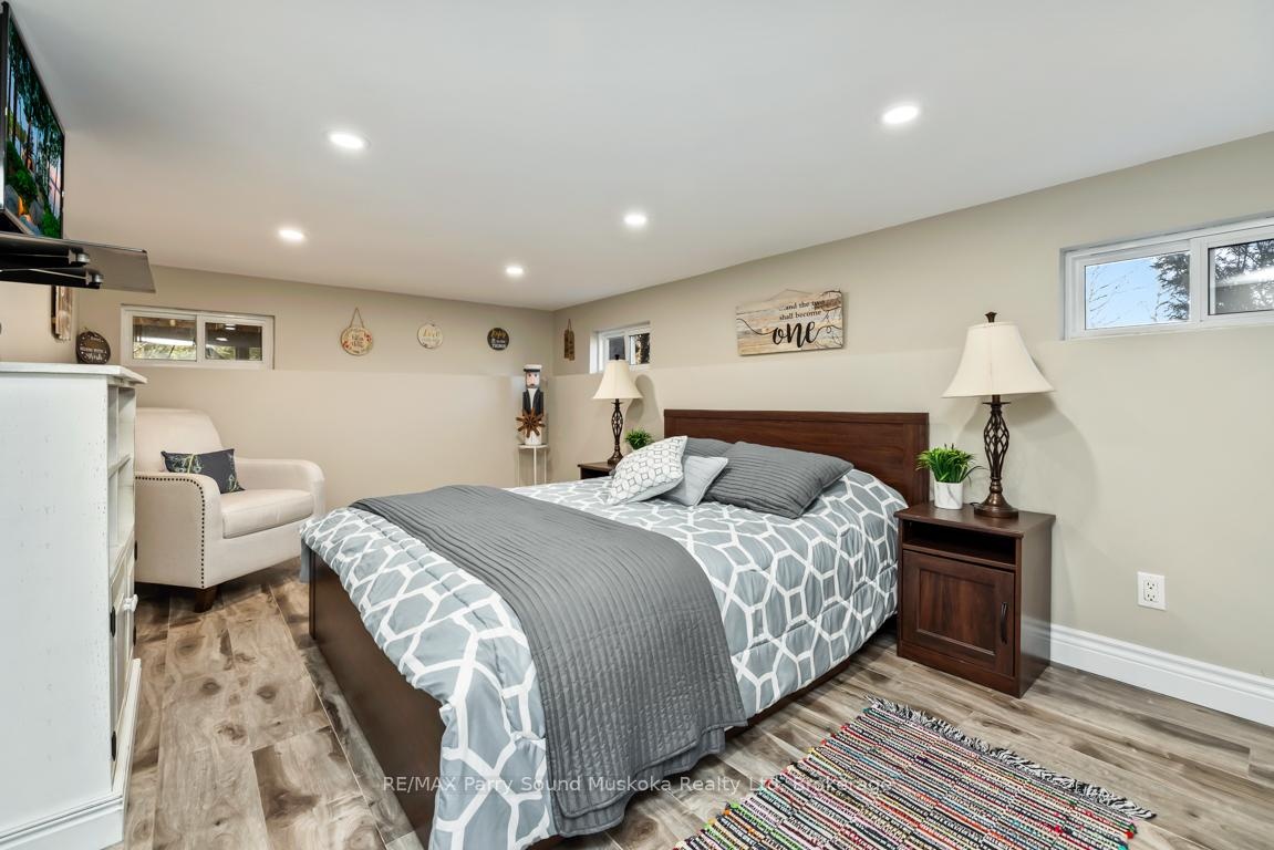 LAKE MANITOUWABING 4 SEASON GEM! 170 ft WATERFRONT! SANDY BEACH to Water's edge, Easy access level lot ideal for all ages, This TURNKEY 4 season cottage or home is made for Family Fun! Enjoy sunny days outside playing on the beach, on the volleyball court, Peaceful protected bay is ideal to paddleboard, kayak & canoe, Explore Boating on Lake Manitouwabing for hours filled with Great swimming, fishing enjoyment, The fully winterized 3 bedroom, 2 bathroom gem boasts Custom Kitchen w granite counters, Large island, Stainless appliances, Sunken Great Room enhanced with vaulted ceilings, Cozy up to the gas fireplace, Built in cabinetry, Multiple walkouts to sundecks, Work from the cottage in the den w high speed internet, Relax in the Muskoka/Sunroom Room or downstairs in the finished Lower level featuring guest rooms, 2nd bath, Outdoor relaxation is yours with multiple walkouts to sundecks, Covered patio, Extended family & kids will love the Charming bunkie (sleeps 4), DETACHED DOUBLE GARAGE 2021, New shingles 2022, Drilled well w filtration system, New shingles 2022, Extensive renovations done in '05 & '14, This Lake House is move in ready & includes everything you need to begin your COTTAGE LIFE!