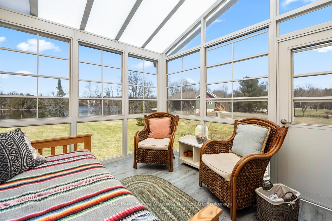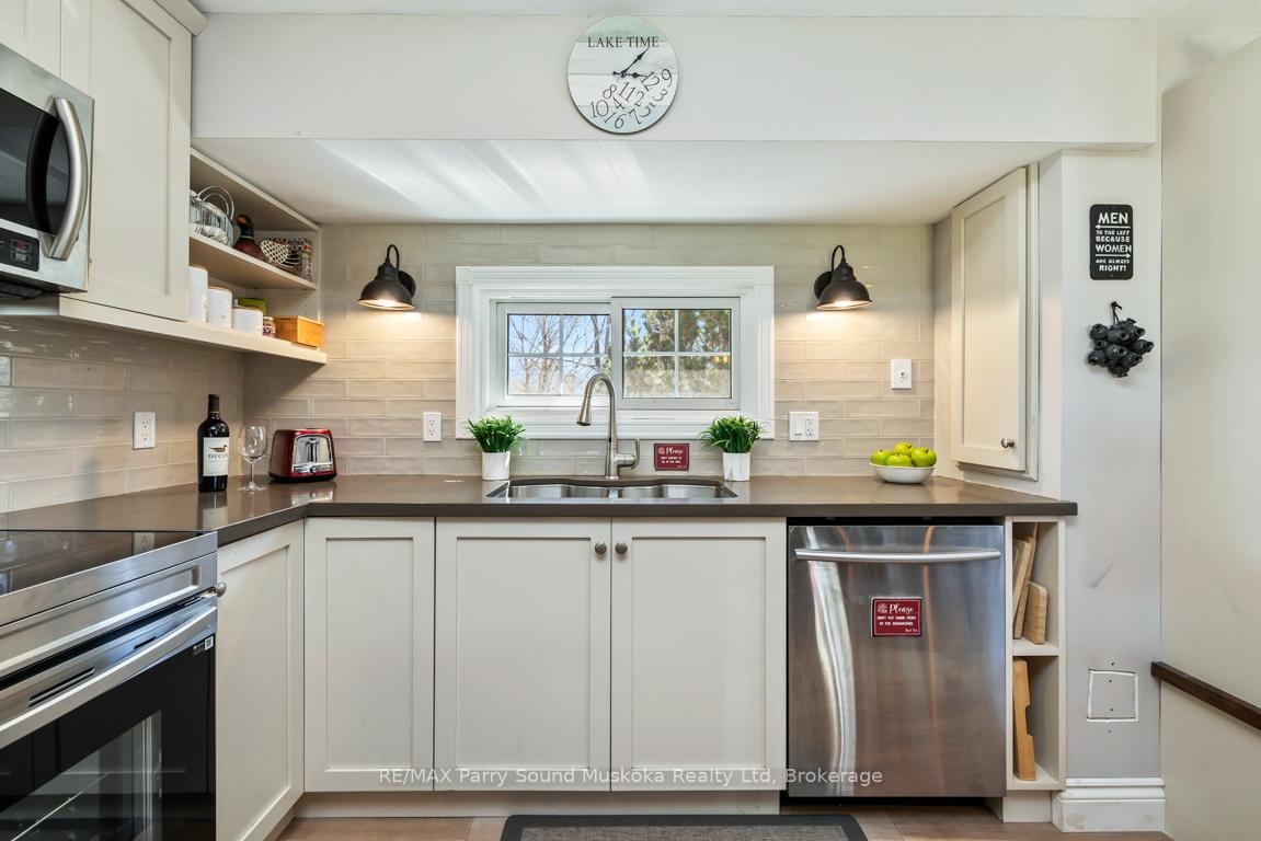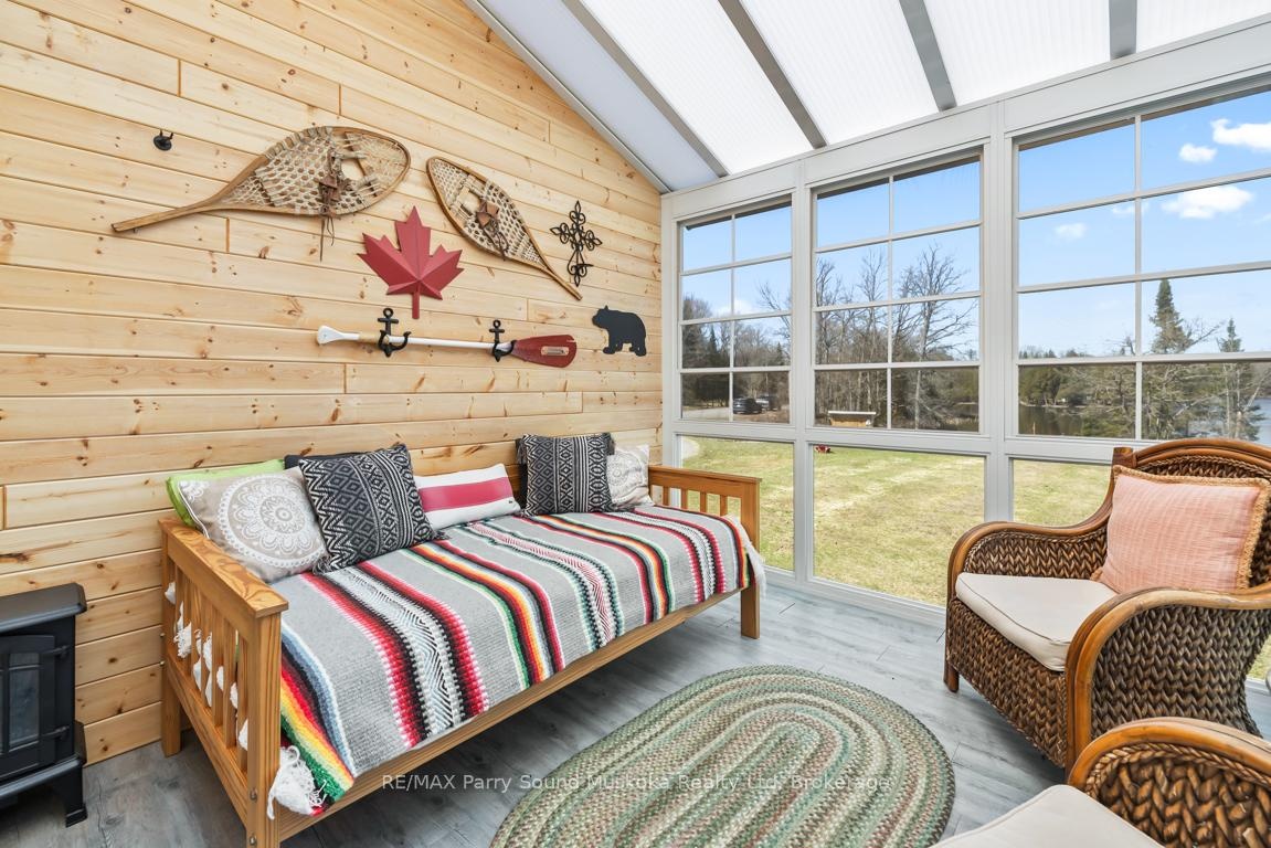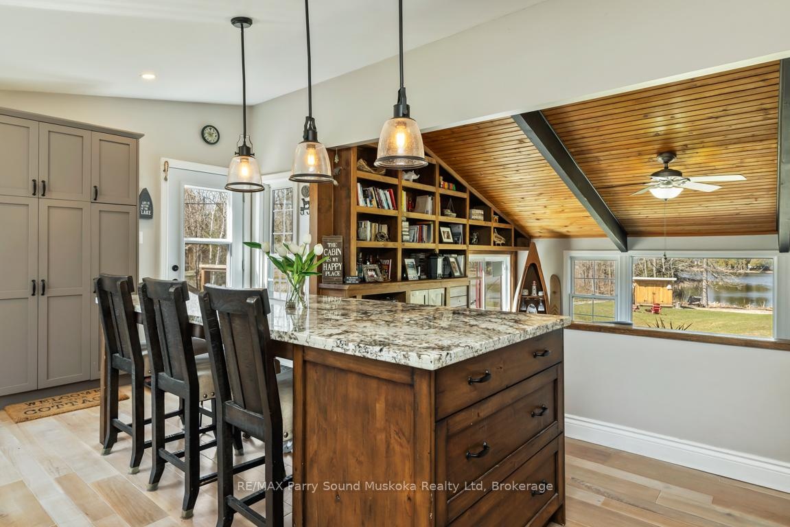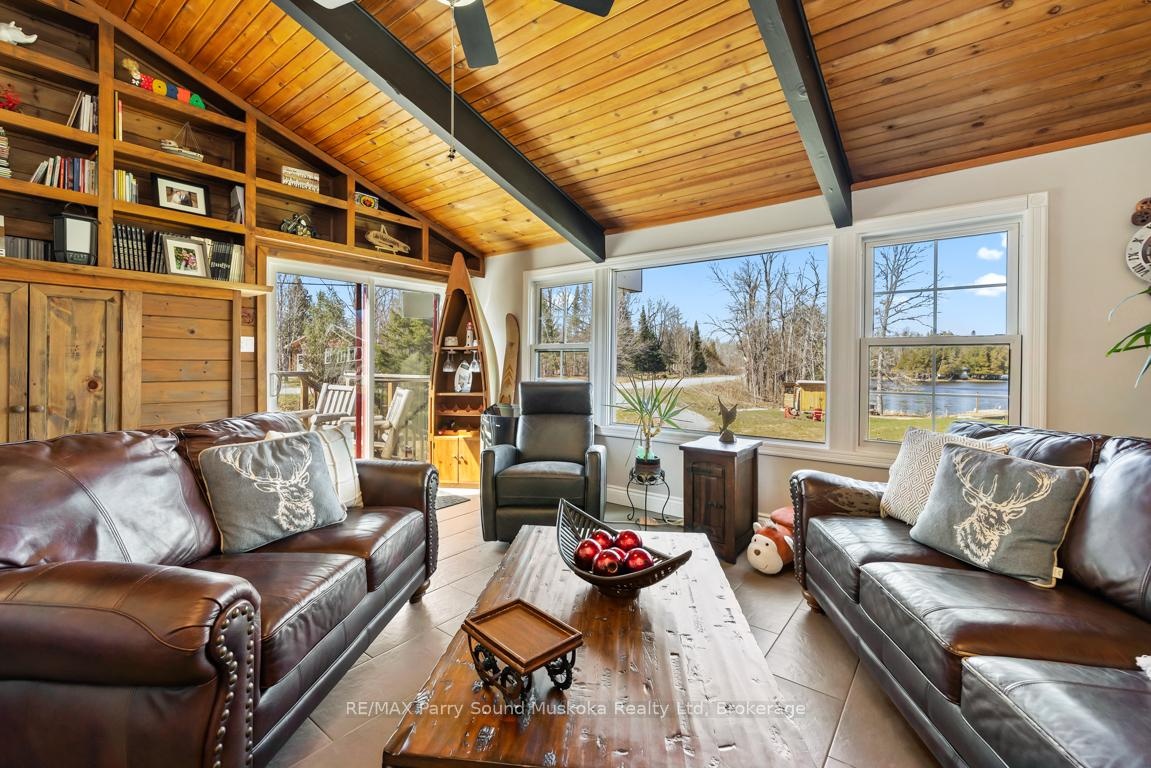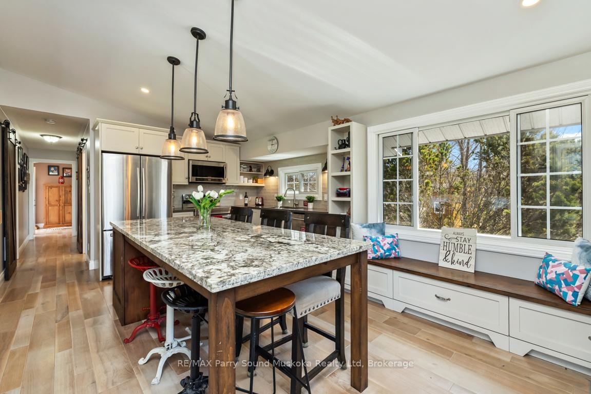 LAKE MANITOUWABING 4 SEASON GEM! 170 ft WATERFRONT! SANDY BEACH to Water's edge, Easy access level lot ideal for all ages, This TURNKEY 4 season cottage or home is made for Family Fun! Enjoy sunny days outside playing on the beach, on the volleyball court, Peaceful protected bay is ideal to paddleboard, kayak & canoe, Explore Boating on Lake Manitouwabing for hours filled with Great swimming, fishing enjoyment, The fully winterized 3 bedroom, 2 bathroom gem boasts Custom Kitchen w granite counters, Large island, Stainless appliances, Sunken Great Room enhanced with vaulted ceilings, Cozy up to the gas fireplace, Built in cabinetry, Multiple walkouts to sundecks, Work from the cottage in the den w high speed internet, Relax in the Muskoka/Sunroom Room or downstairs in the finished Lower level featuring guest rooms, 2nd bath, Outdoor relaxation is yours with multiple walkouts to sundecks, Covered patio, Extended family & kids will love the Charming bunkie (sleeps 4), DETACHED DOUBLE GARAGE 2021, New shingles 2022, Drilled well w filtration system, New shingles 2022, Extensive renovations done in '05 & '14, This Lake House is move in ready & includes everything you need to begin your COTTAGE LIFE!
