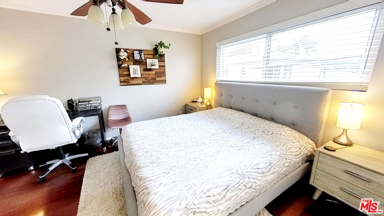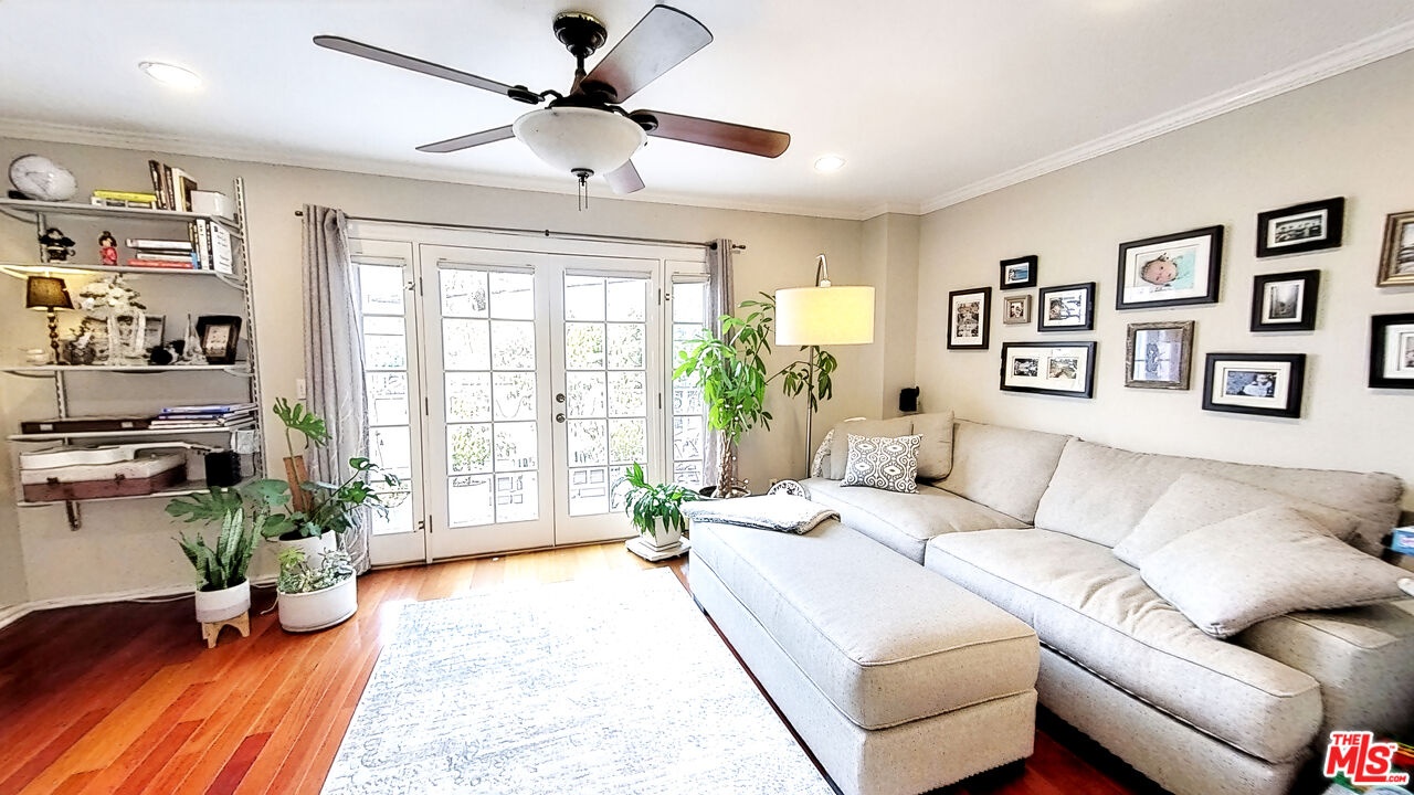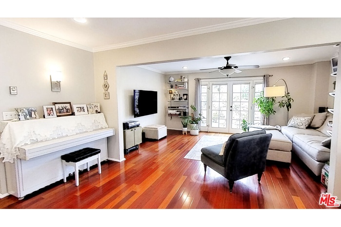 Bright and beautifully appointed upper-floor unit in the heart of Santa Monica's coveted Ocean Park neighborhood. Stunning French doors flood the north-facing living space with natural light, complementing the rich hardwood floors throughout. Both bedrooms feature new carpet, with the primary suite offering a private en suite bath. The kitchen and bathrooms have been tastefully upgraded, and new baseboard heaters add year-round comfort. With only one shared common wall and a private balcony, this unit lives more like a home than an apartment. Steps from the neighborhood's newest cafes and restaurants, this is Ocean Park living at its best!