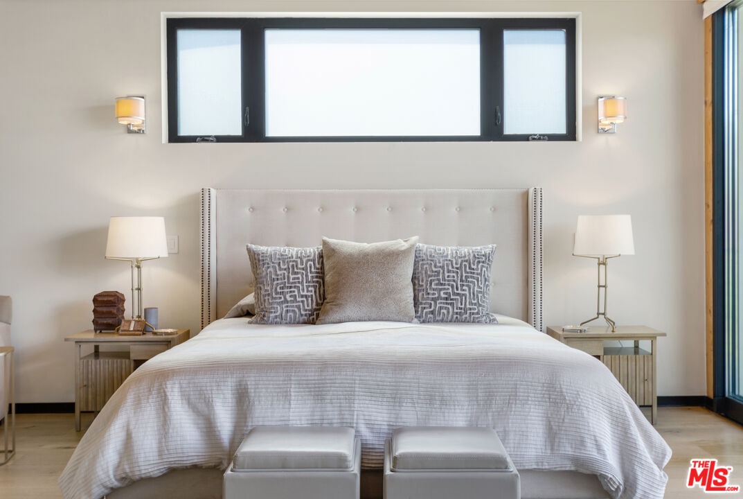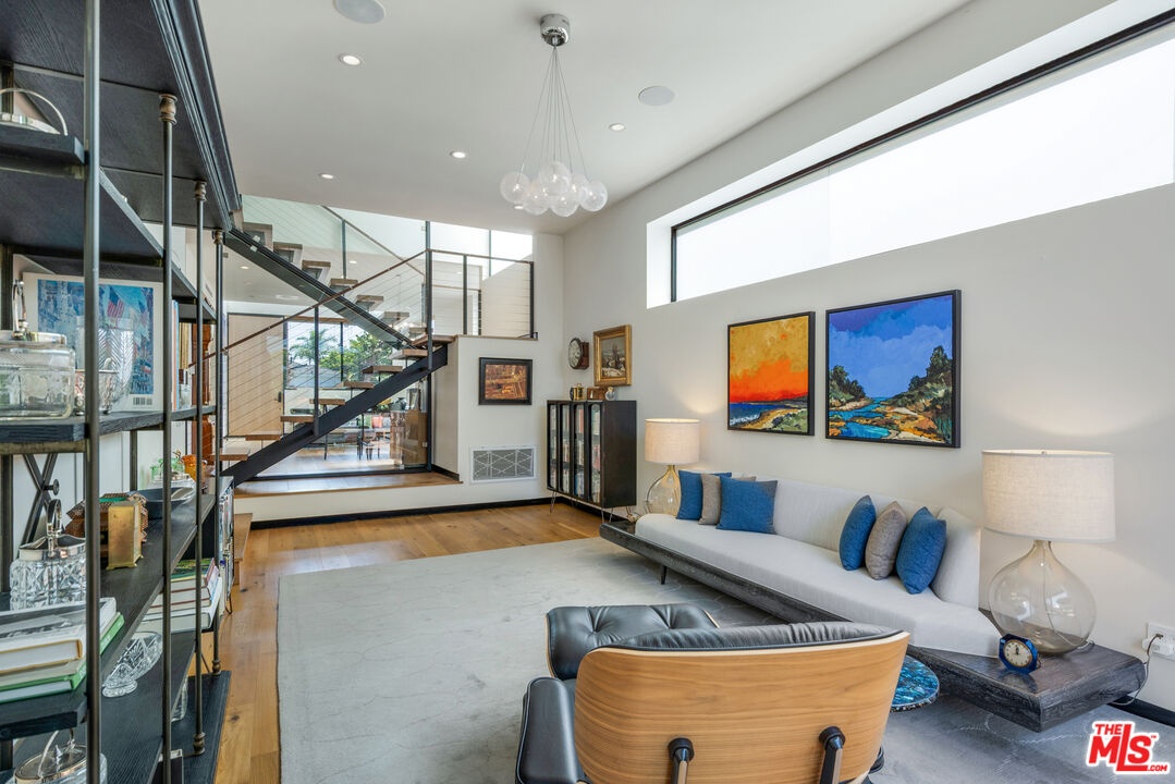Embodying the very essence of refined luxury both inside and out, this stunning residence stands as a true architectural masterpiece in the heart of the coveted Silver Triangle. Featuring a sensuous palette of flawless materials and masterful attention to detail, this 4-bedroom, 5-bathroom home is a rare offering of timeless beauty. The property is securely enclosed with gated front and rear access, welcoming you through a sweet, manicured front yard that provides an immediate sense of privacy and serene charm. Upon entering, an impressive two-story volume establishes an incredible sense of scale, revealing a brilliant open floor plan flooded with light by monumental architectural glass panels and soaring sliding doors.The heart of the home is a world-class gourmet kitchen designed for the ultimate gourmande, anchored by a dazzling center island crafted from a singular, breathtaking piece of statuary Carrara marble. This culinary haven is a chef's dream, featuring a premier Wolf range with high-performance vent hood, integrated steamer and grill, and a massive Sub-Zero refrigerator to keep ingredients at their peak. Transitioning effortlessly from the main living areas, the step-down family room offers a sophisticated space for relaxation, flowing out to the lush and private backyard oasis.An industrial staircase leads to the second level, where you will find the incredible primary suitea true sanctuary featuring a large private balcony, a dream-come-true walk-in closet, and a seductive spa-like bath with a massive soaking tub. The luxury experience is elevated by an 8-component Sonos system serving built-in ceiling speakers in every room, the back patio, and the roof deck, allowing you to set the perfect mood throughout. Gated rear access leads to your private garage, while a Rain Bird programmable watering system ensures worry-free maintenance of the lush, drought-resistant landscaping. The journey culminates on the spectacular third-story roof deck, offering exceptional 360-degree panoramic views of the city & mountains. Quietly sophisticated, smart, and undeniably elegant, this trophy home offers an unparalleled lifestyle where there is no need to get in your car. You are just moments from the surf and sand of the beach and all the fine dining, coffee houses, and boutiques on the world's hippest street, Abbot Kinney.