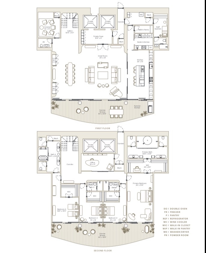 Two Story Designer Brickell Penthouse with Direct Sunrise and Sunset | Open Ocean Views, Private Theater & 600 Bottle Wine Cellar | 4 Beds | 4+ Baths | 6,686 SF