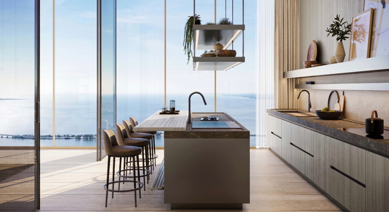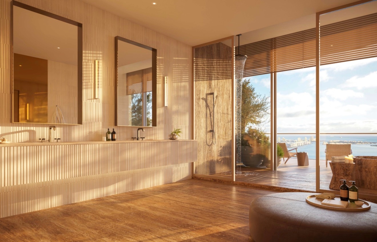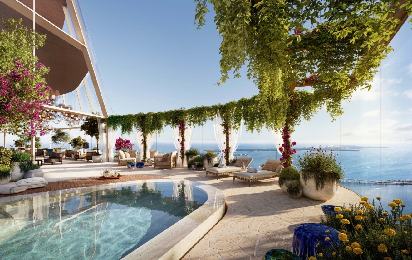 The tower itself stands as a landmark of architectural refinement and contemporary elegance, envisioned by internationally acclaimed designer Antonio Citterio, whose work is synonymous with understated luxury and meticulous attention to detail. Every element of the building has been thoughtfully curated to deliver a fully serviced, private residential experience that rivals the world’s finest five-star hotels, while maintaining an intimate and exclusive atmosphere. Residents are welcomed into a sophisticated environment where design, service, and lifestyle converge, highlighted by a breathtaking rooftop oasis that offers panoramic views across the Miami skyline and Biscayne Bay. This elevated setting is complemented by an extensive collection of resort-style amenities, including wellness spaces, social lounges, and serene outdoor environments, all designed to create a seamless blend of relaxation, entertainment, and everyday indulgence within a single address.