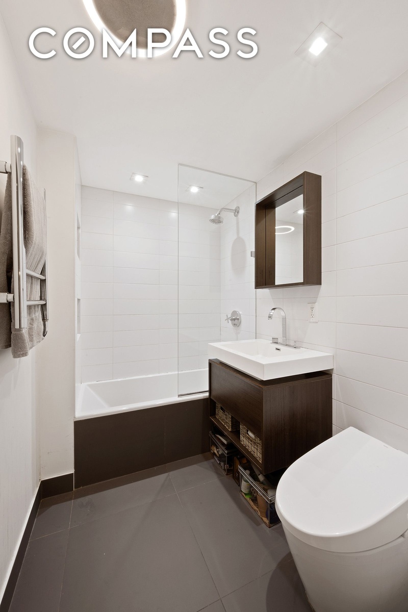 The spa-like bathroom is a true retreat, outfitted with a luxurious, fully automated Toto Neorest toilet (with heating, washing, massage, and drying features), a deep Kohler soaking tub, premium fixtures, and an oversized heated towel rack.