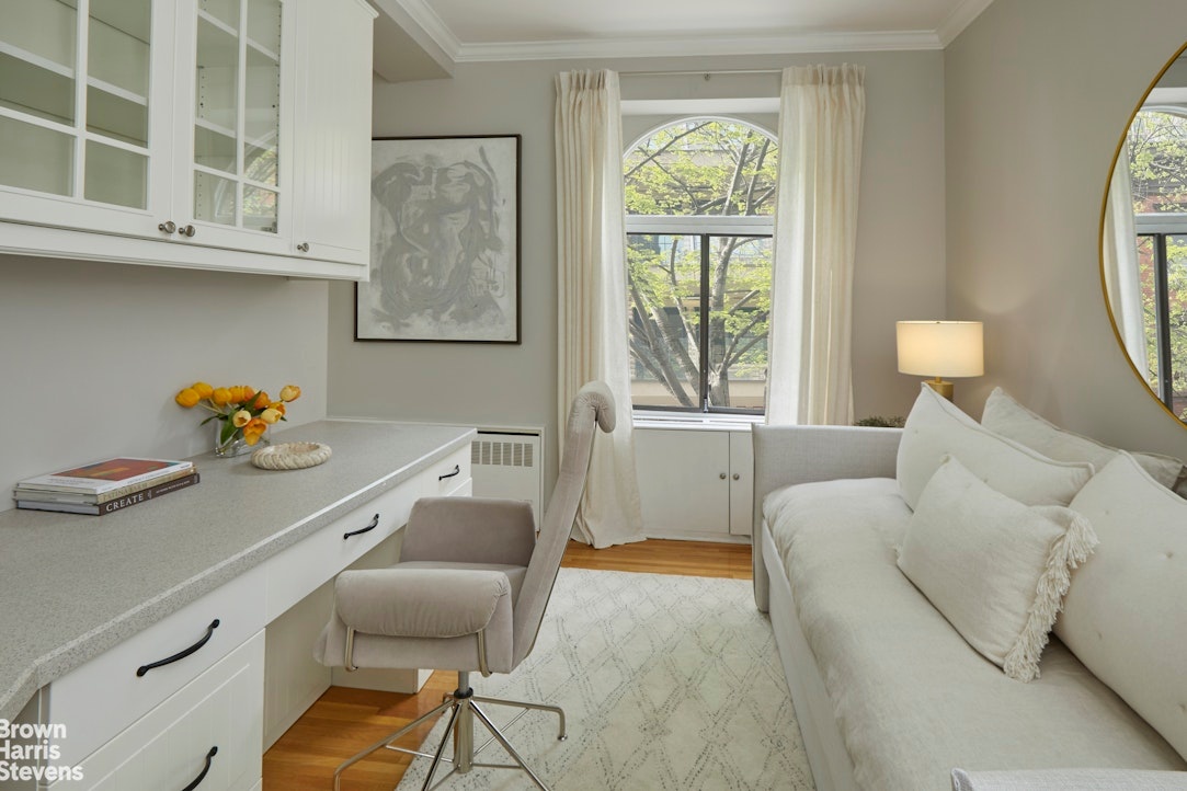 Fall in love with this expansive 3-bedroom, 3-bath pre-war loft-like home at Beekman Townhouse. This second-floor unit features nearly 10-foot ceilings and tranquil tree-line views along 52nd Street. The open entertaining space is bathed in light through large arched windows along the southern exposure, complete with a working fireplace and three central columns that accentuate both its pre-war elegance and industrial-chic aesthetic. There is thoughtful attention to separate entertaining, living and dining space. The large chef's kitchen boasts top of the line stainless steel appliances including Viking stove and Subzero refrigerator.